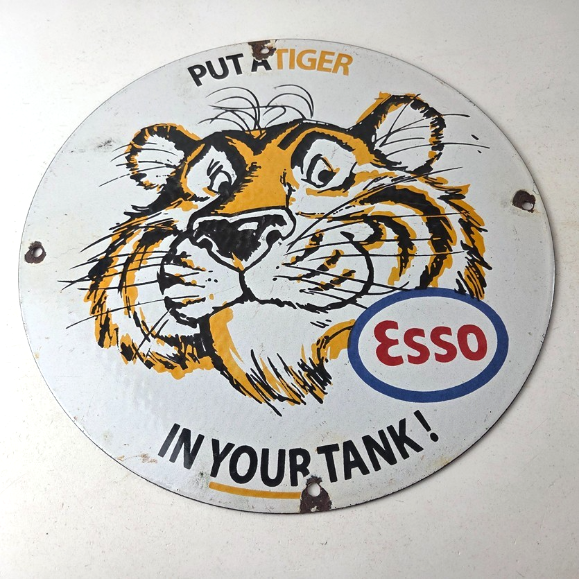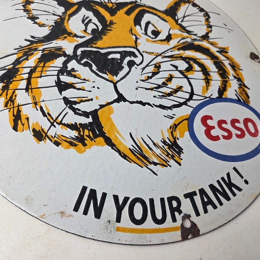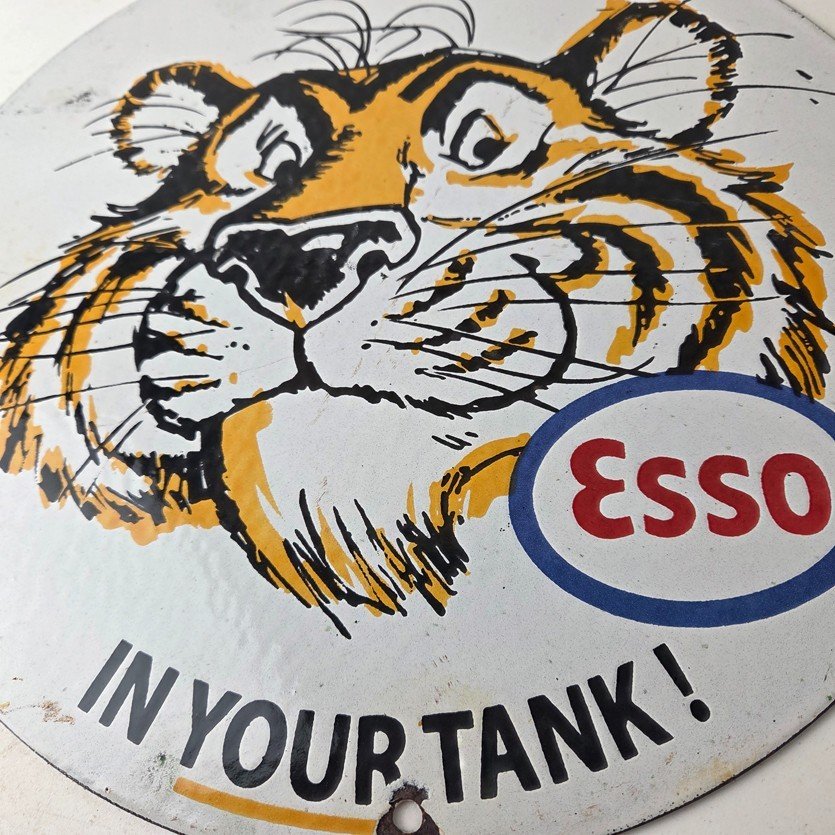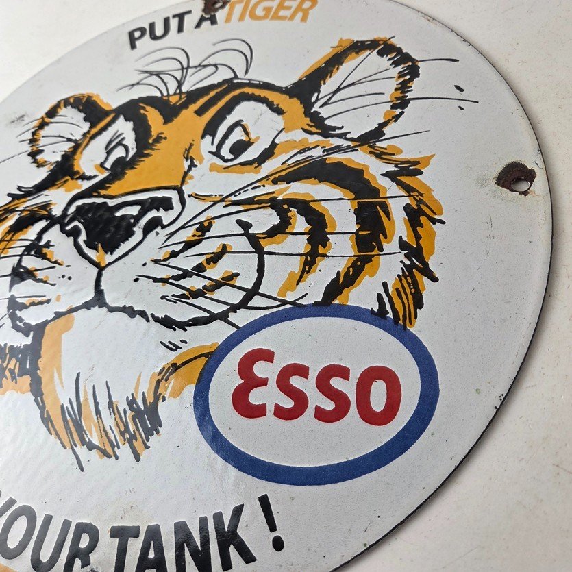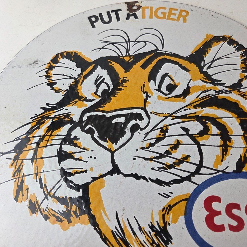 Vintage Esso Gasoline Sign – Tiger Auto Tank Gas Station Porcelain Sign