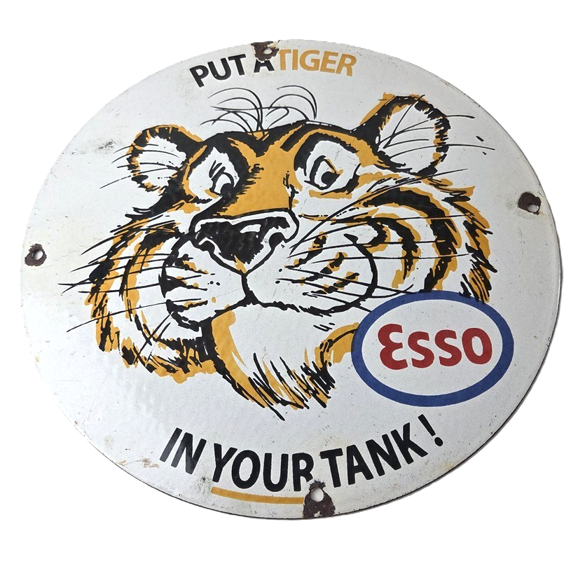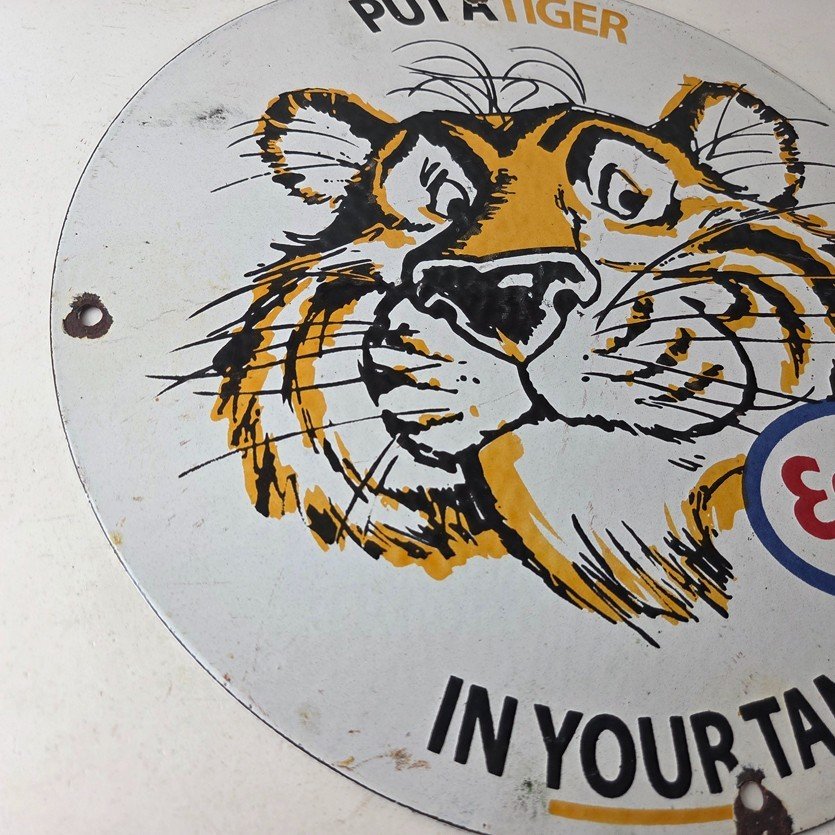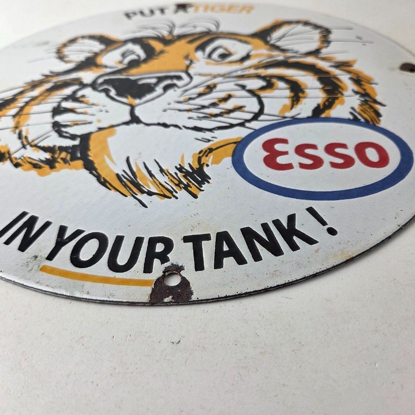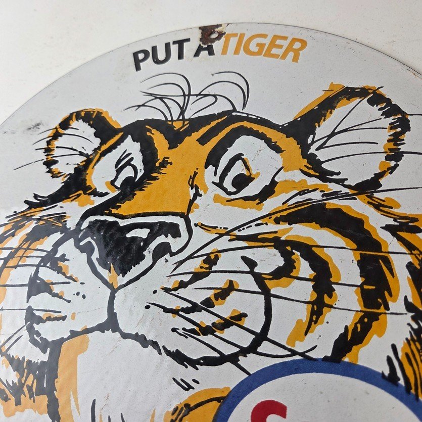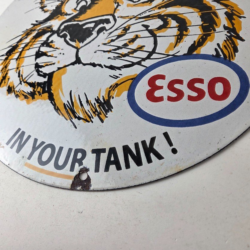 Vintage Esso Gasoline Sign – Tiger Auto Tank Gas Station Porcelain Sign
