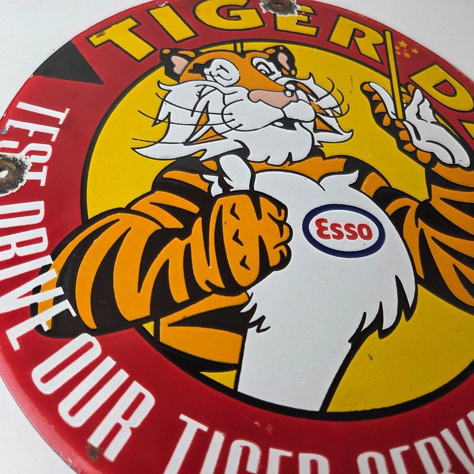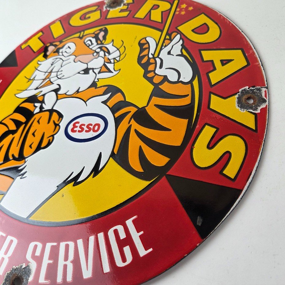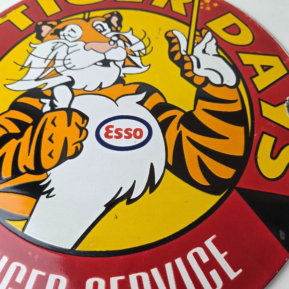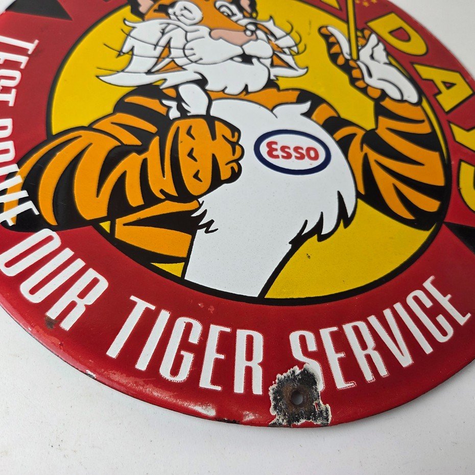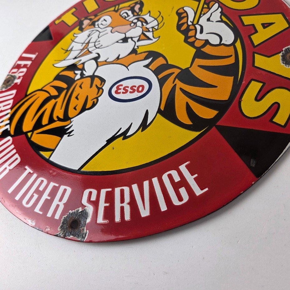 Vintage Esso Gasoline Sign – Tiger Days Test Drive Porcelain Gas Station Sign