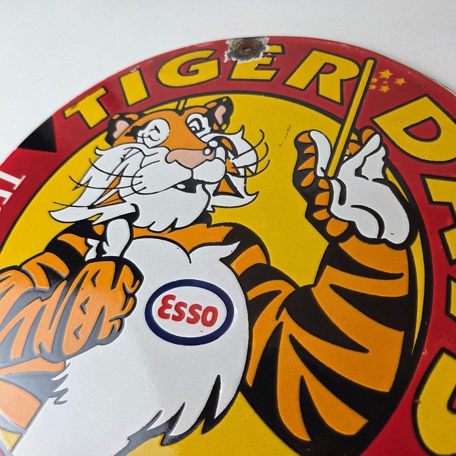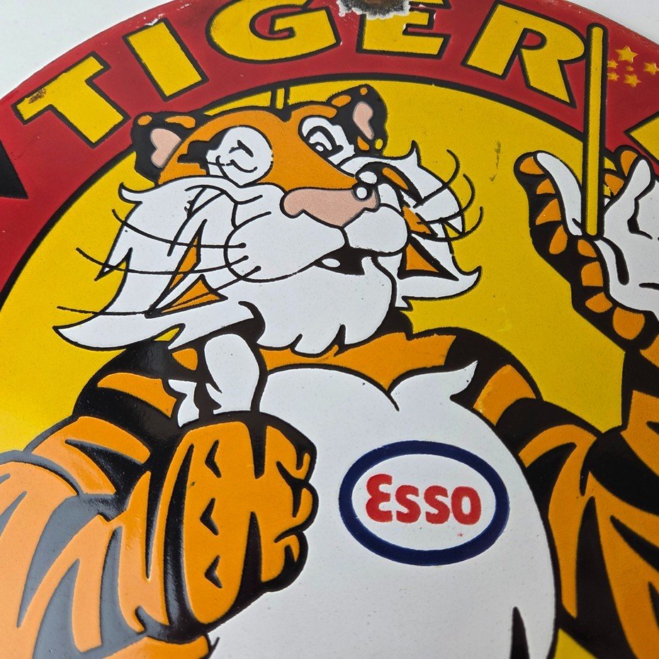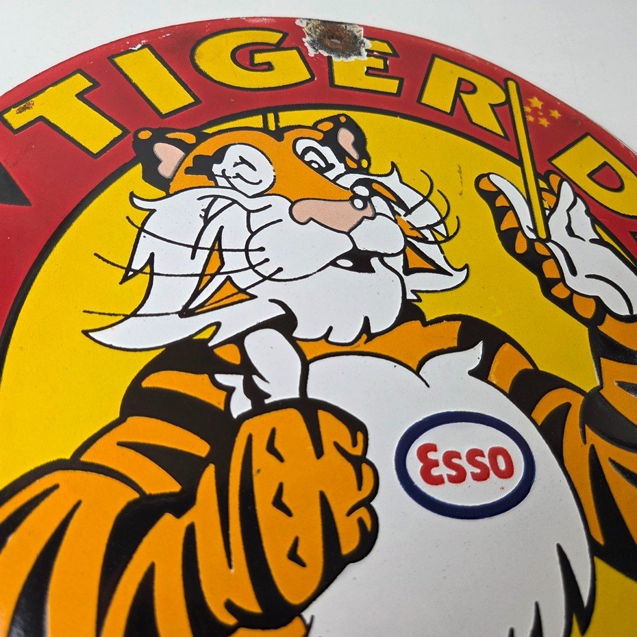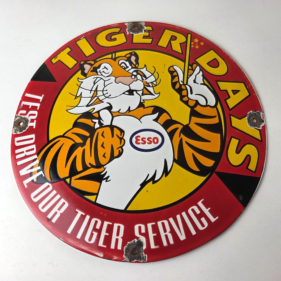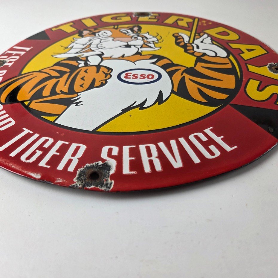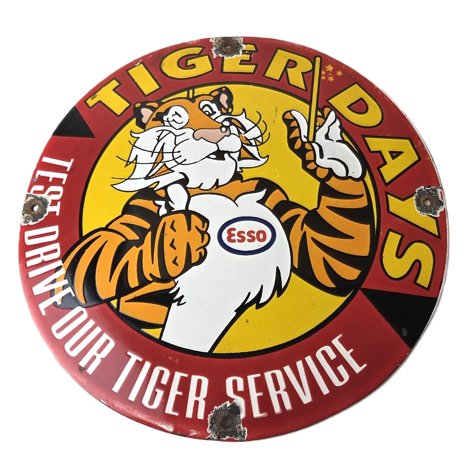 Vintage Esso Gasoline Sign – Tiger Days Test Drive Porcelain Gas Station Sign