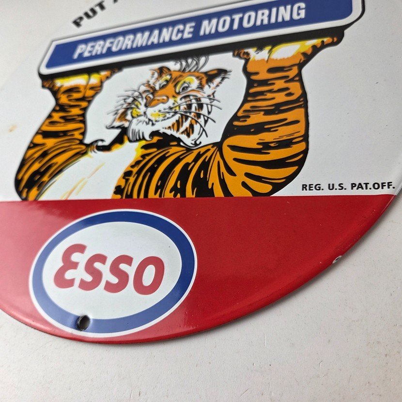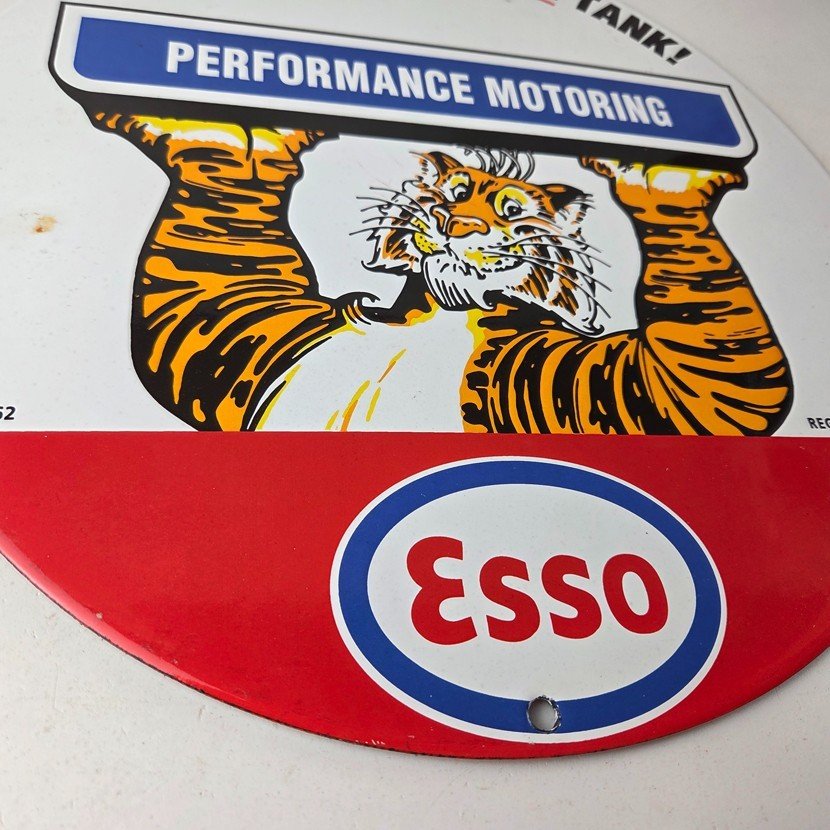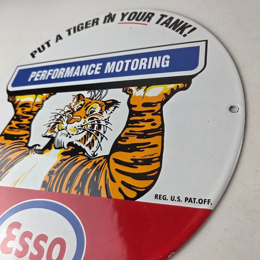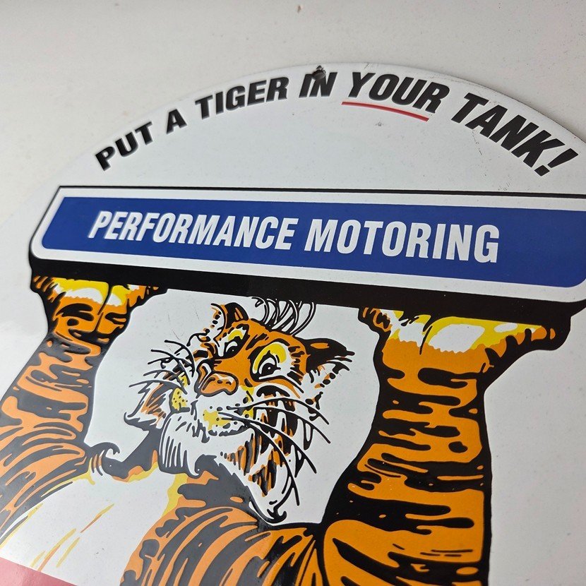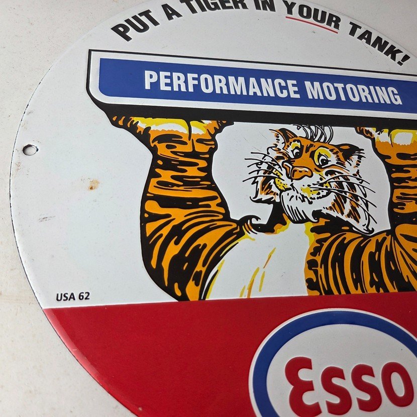Vintage Esso Gasoline Sign – Tiger Gas Service Station Auto Tank Porcelain Sign