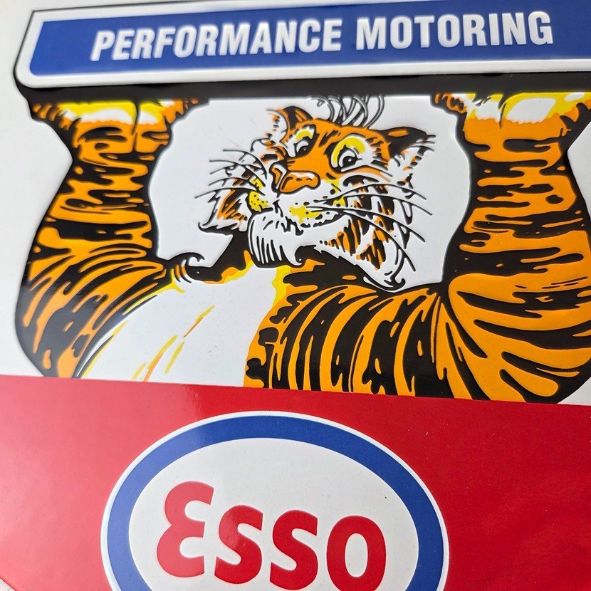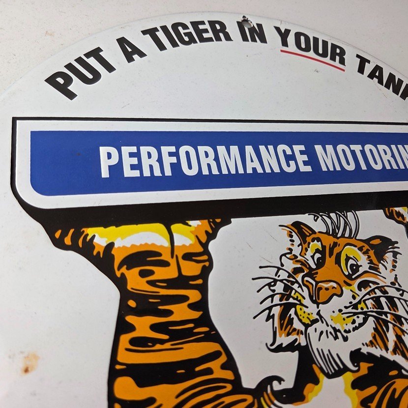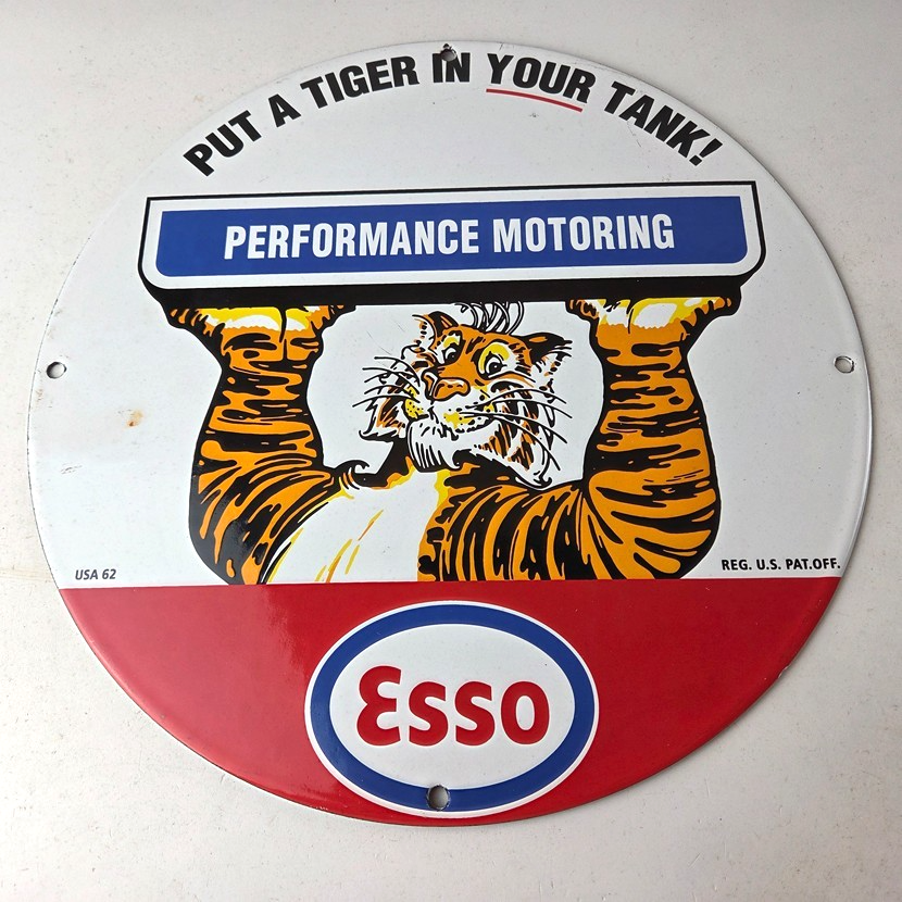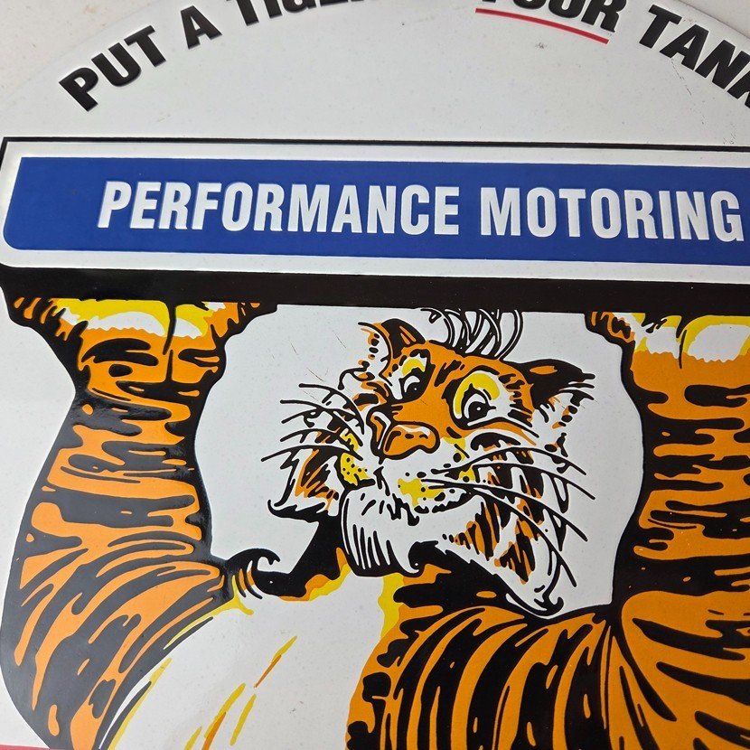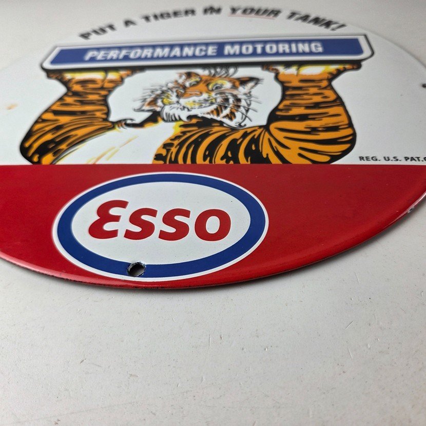 Vintage Esso Gasoline Sign – Tiger Gas Service Station Auto Tank Porcelain Sign