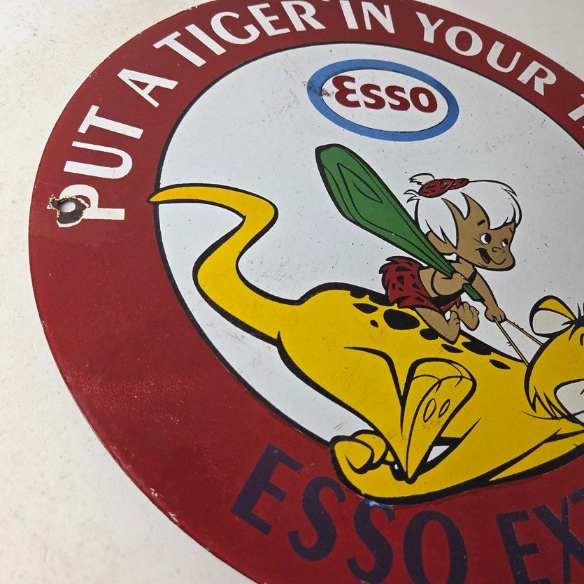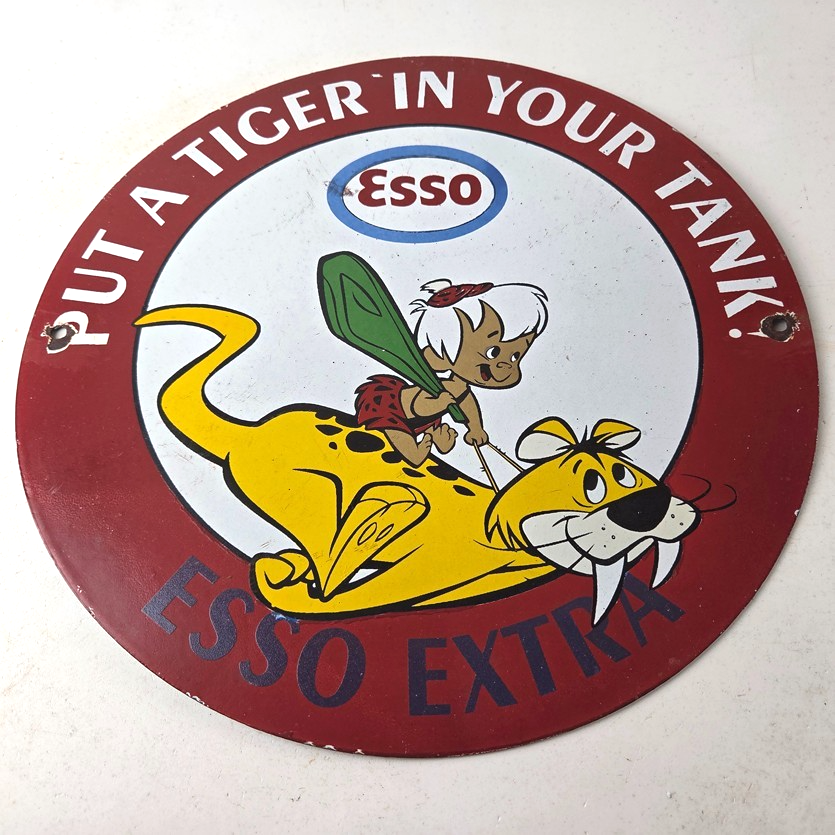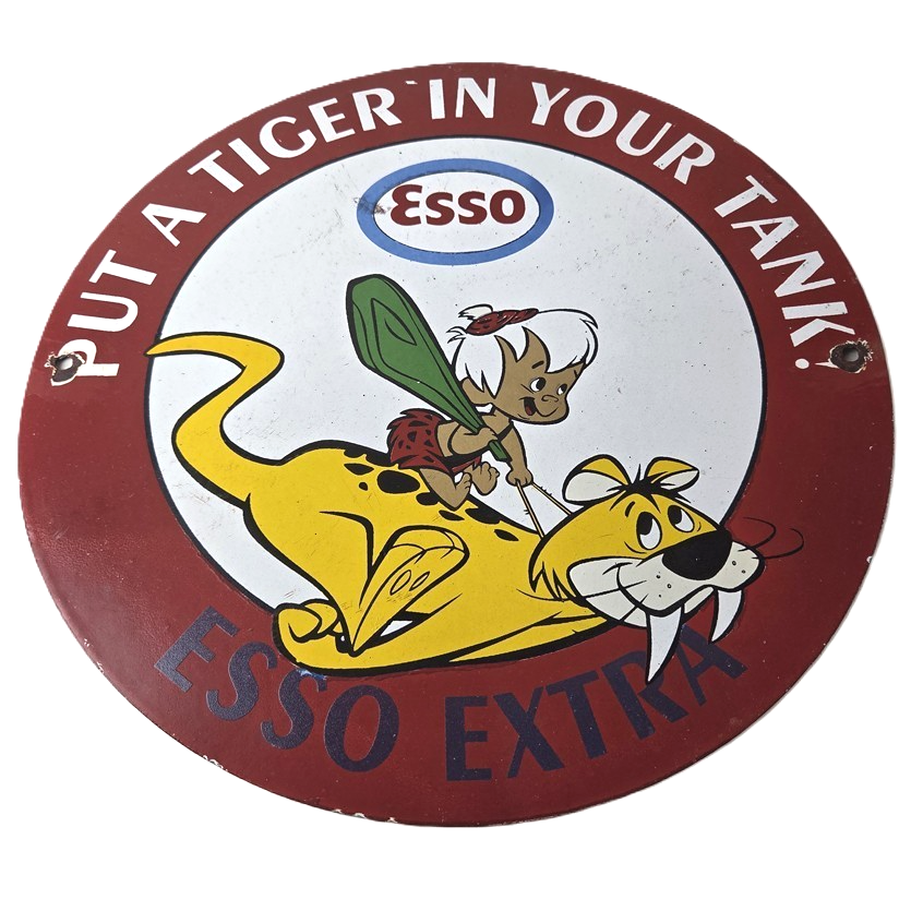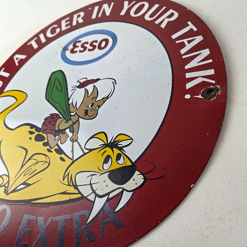 Vintage Esso Gasoline Sign – Tiger Tank Gas Service Station Porcelain Sign