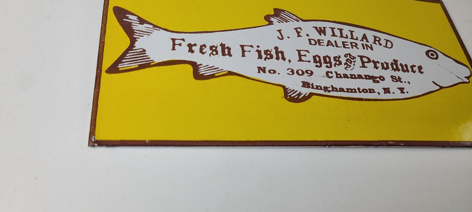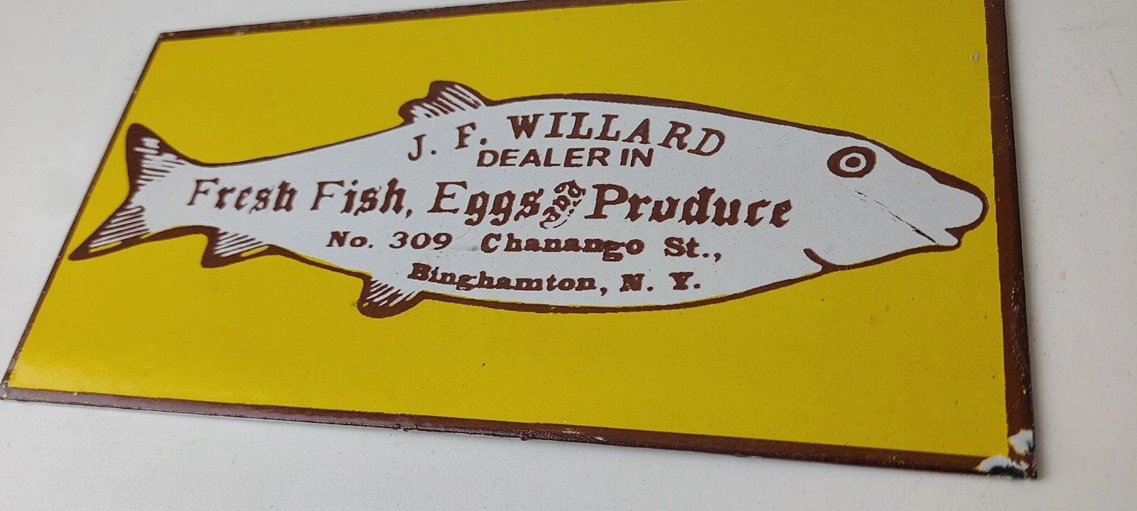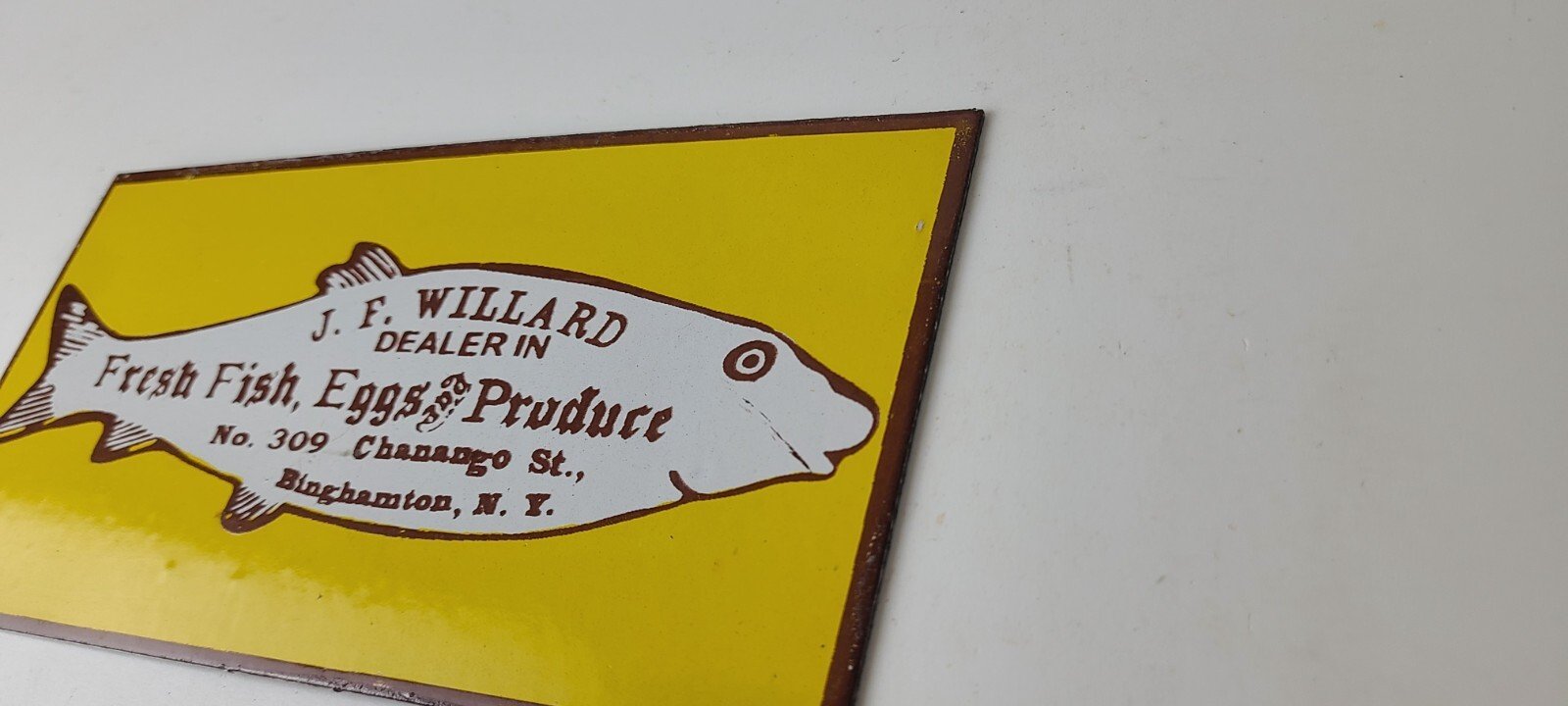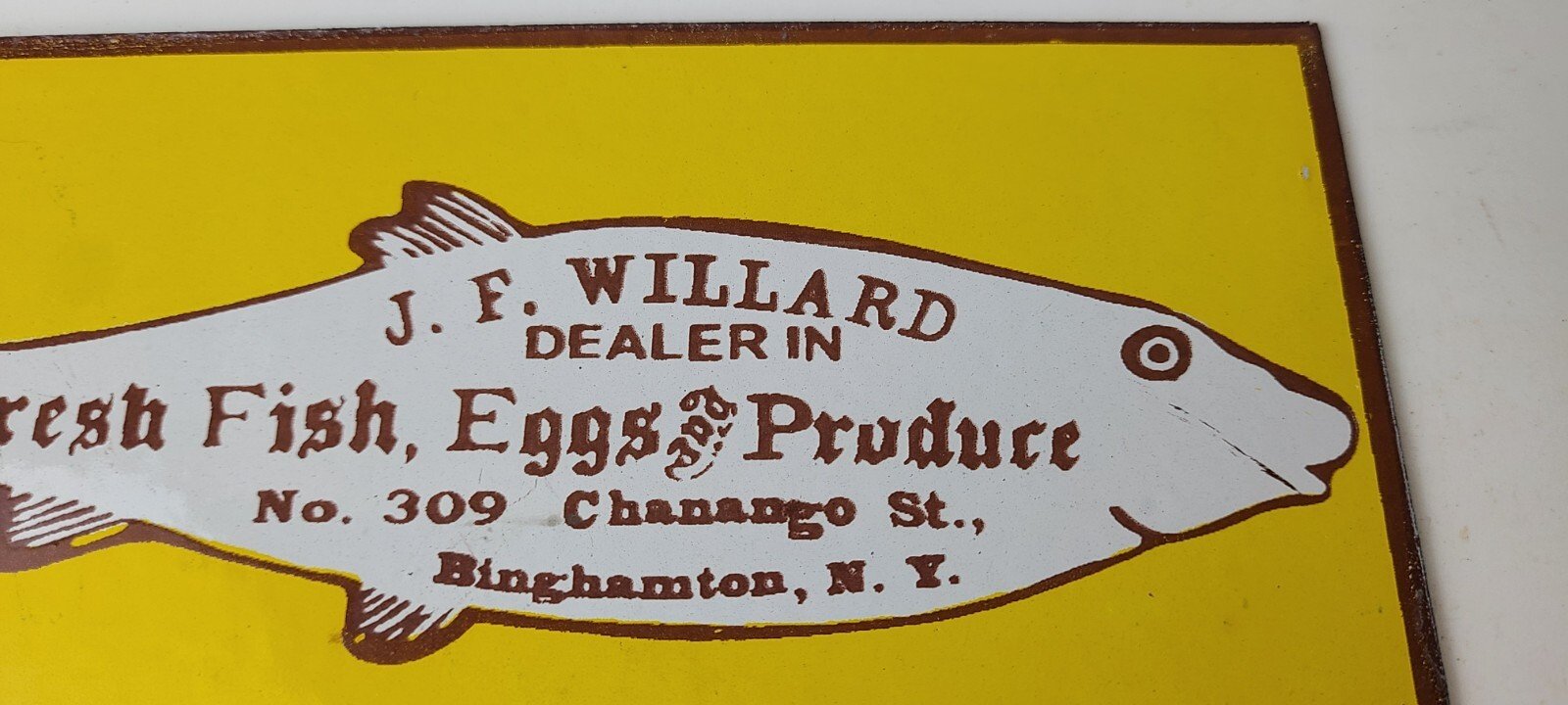 Vintage Fish Eggs Produce Sign – Willard Dealer Porcelain Advertising Sign