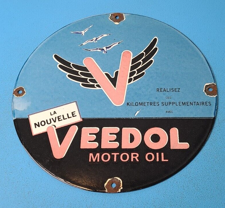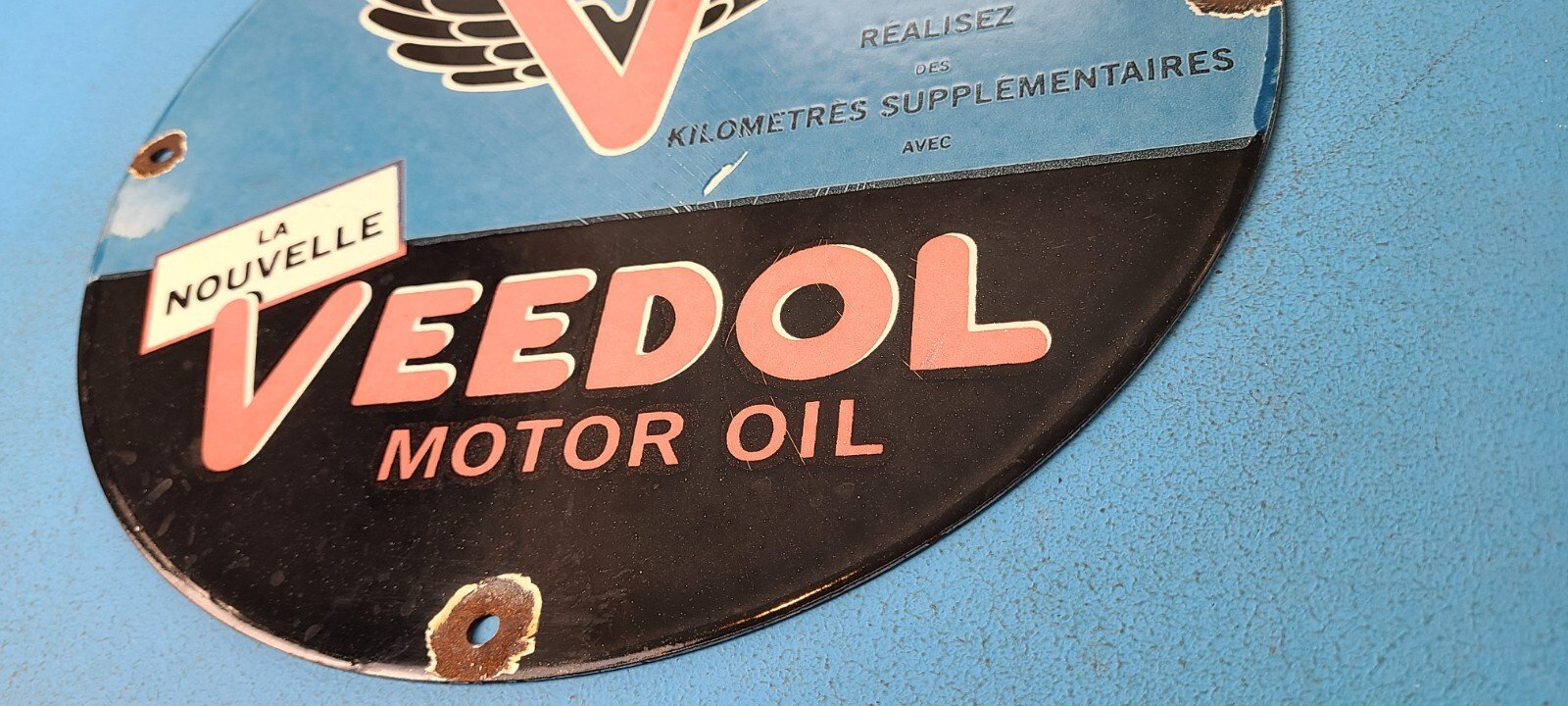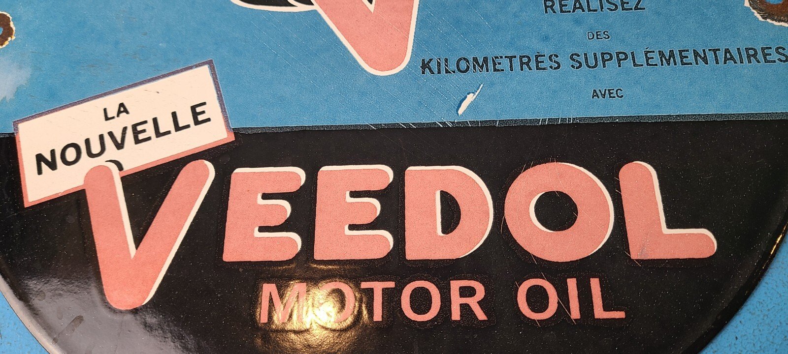 For sale is a vintage Veedol Motor Oil, porcelain gas service station & pump plate sign. Please view the pictures as they are part of the description (a picture is worth a thousand words)! I try my best to take pictures of all the angles of this sign. This sign has excellent colors and gloss. Sign measures 12″. Check out my other auctions, and feel free to ask questions. Perfect for gas collectors, automobile enthusiasts, sign collection, man cave, restaurant, bar, garage, displays anywhere. See my other gas & motor oil, aviation, automotive, soda & beverage signs. $10 for shipping anywhere in the U.S. with Priority Mail. Shipping will be $5.00 for each additional item! Thank you!