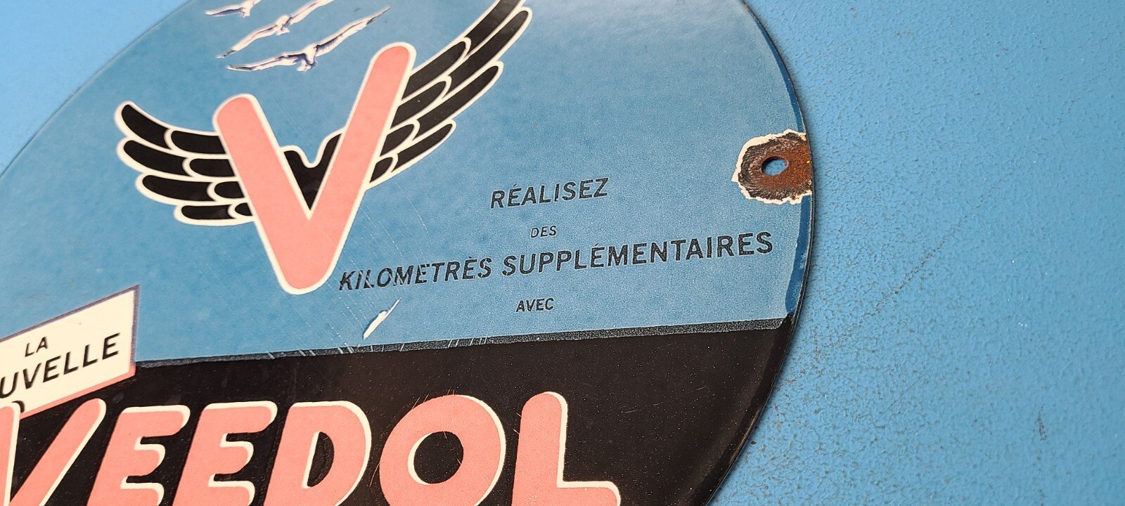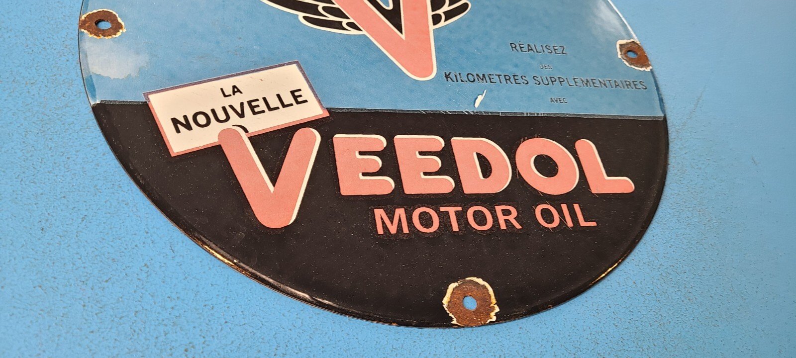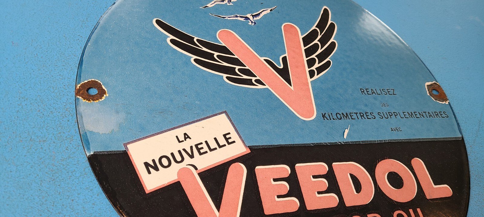 For sale is a vintage Veedol Motor Oil, porcelain gas service station & pump plate sign. Please view the pictures as they are part of the description (a picture is worth a thousand words)! I try my best to take pictures of all the angles of this sign. This sign has excellent colors and gloss. Sign measures 12″. Check out my other auctions, and feel free to ask questions. Perfect for gas collectors, automobile enthusiasts, sign collection, man cave, restaurant, bar, garage, displays anywhere. See my other gas & motor oil, aviation, automotive, soda & beverage signs. $10 for shipping anywhere in the U.S. with Priority Mail. Shipping will be $5.00 for each additional item! Thank you!
