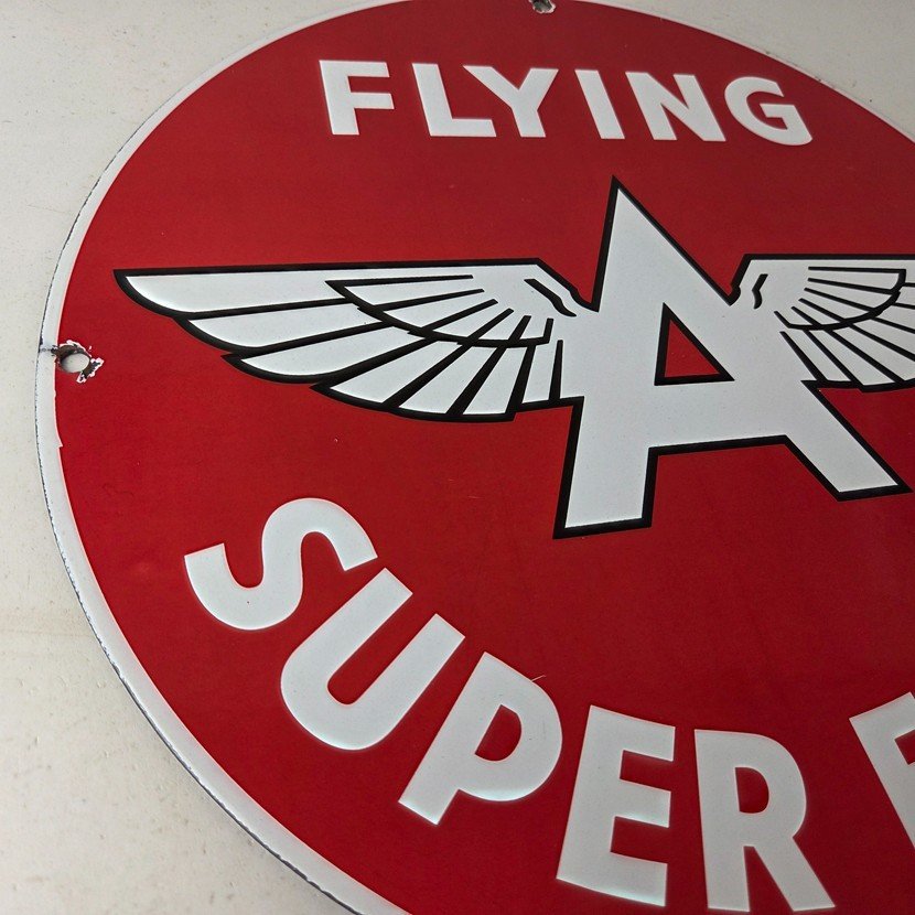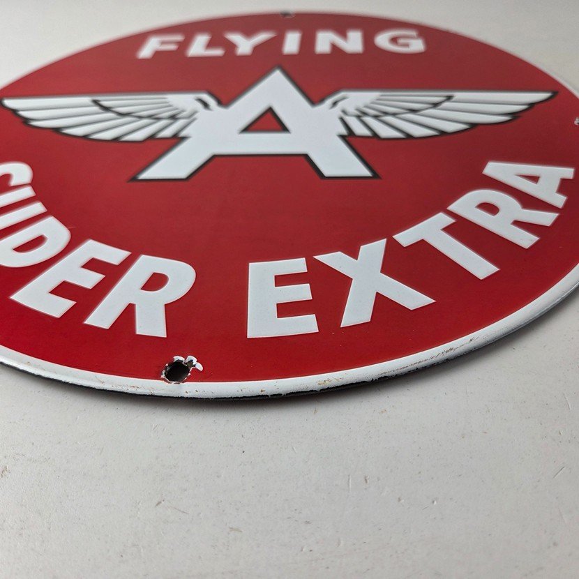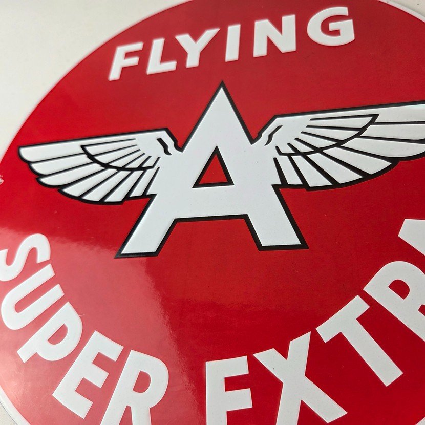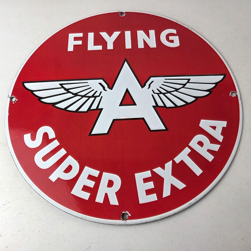 Vintage Flying A Gasoline Sign – Super Extra Aviation Gas Pump Porcelain Sign