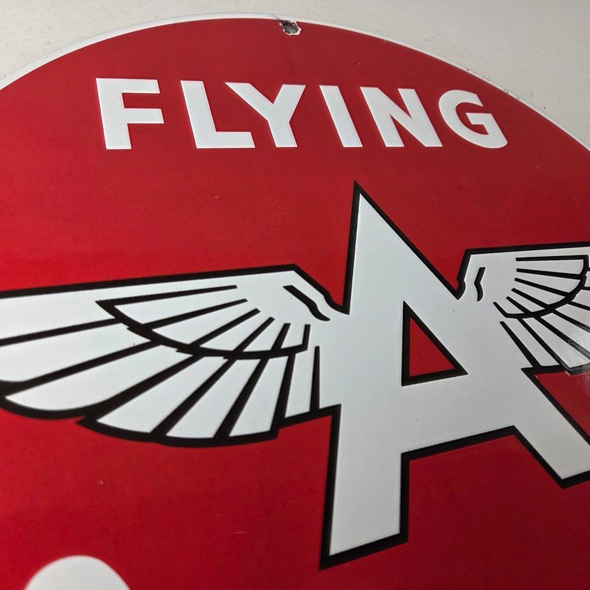 • Vintage Flying A Gasoline porcelain sign.
