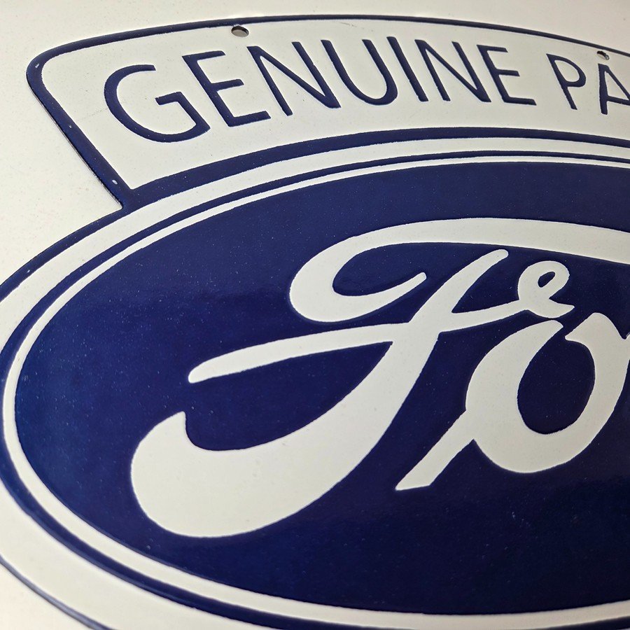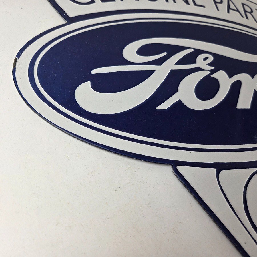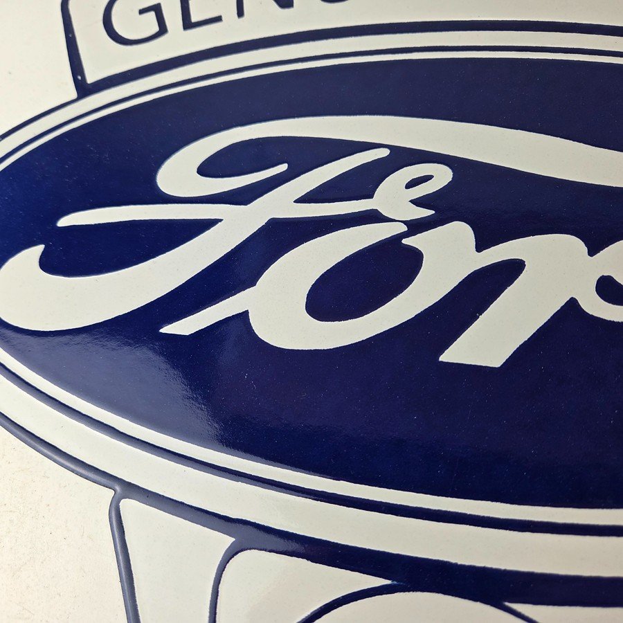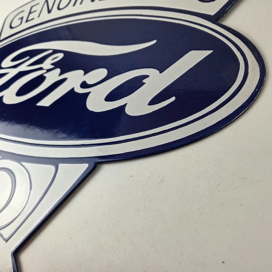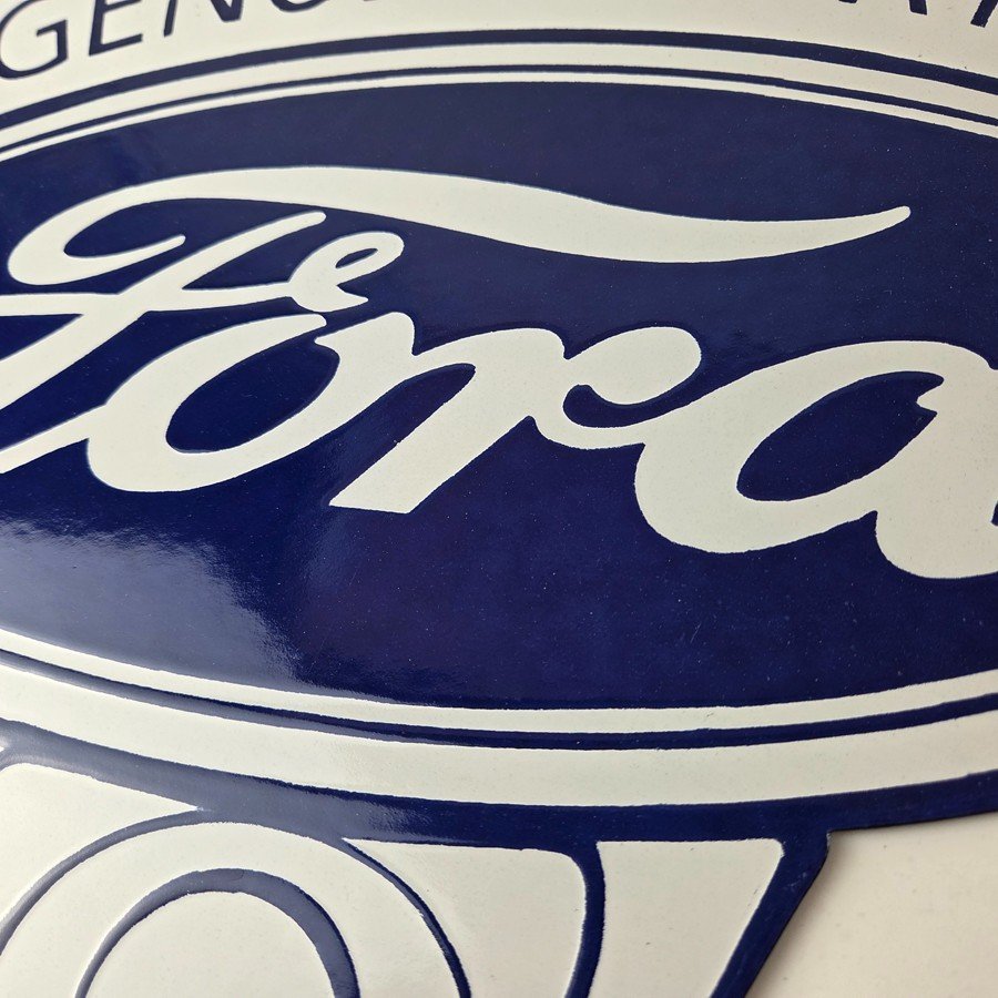 This vintage Ford porcelain sign features the large V8 lettering. This automobile sign measures 18″ across by 16″ and has excellent porcelain on each side.