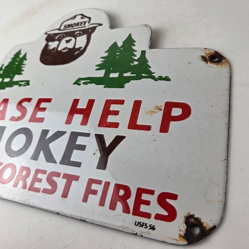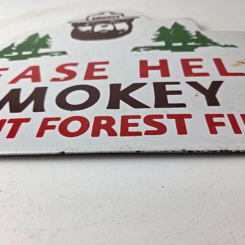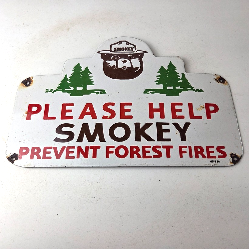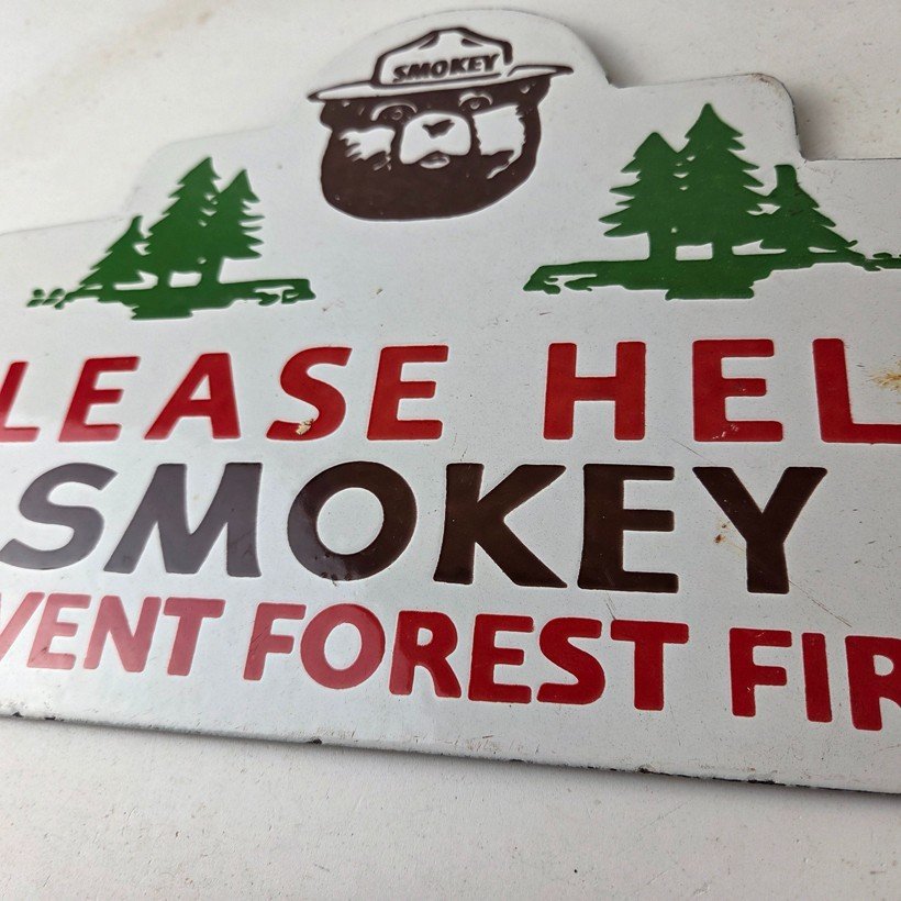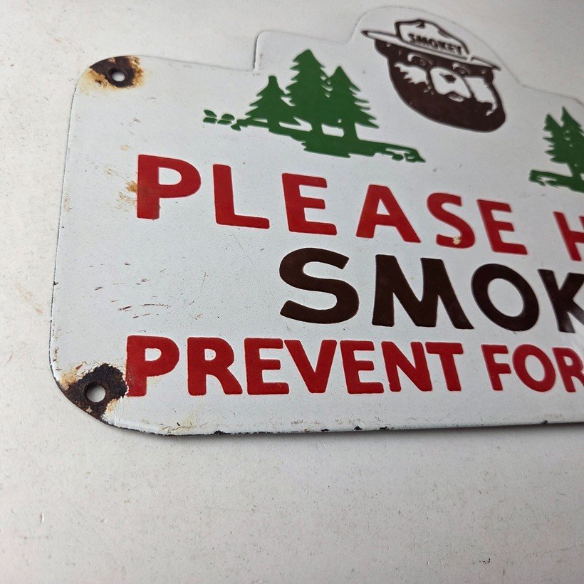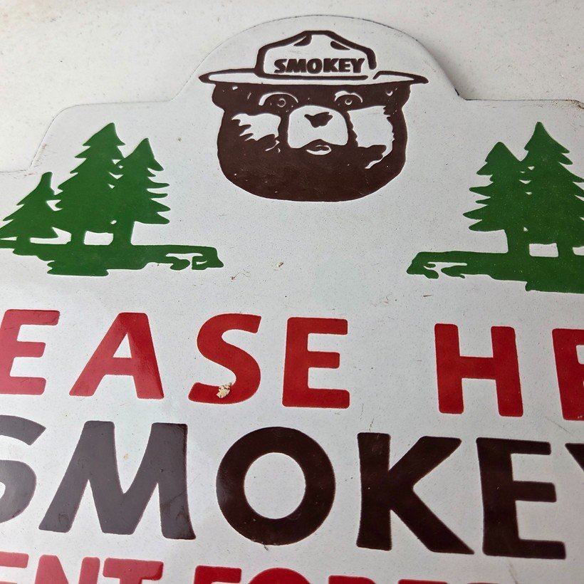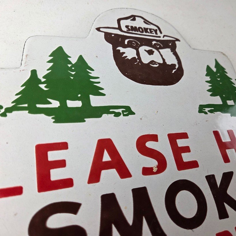 Vintage Forest Service Sign – Smokey Bear Hiking Wilderness Gas Porcelain Sign