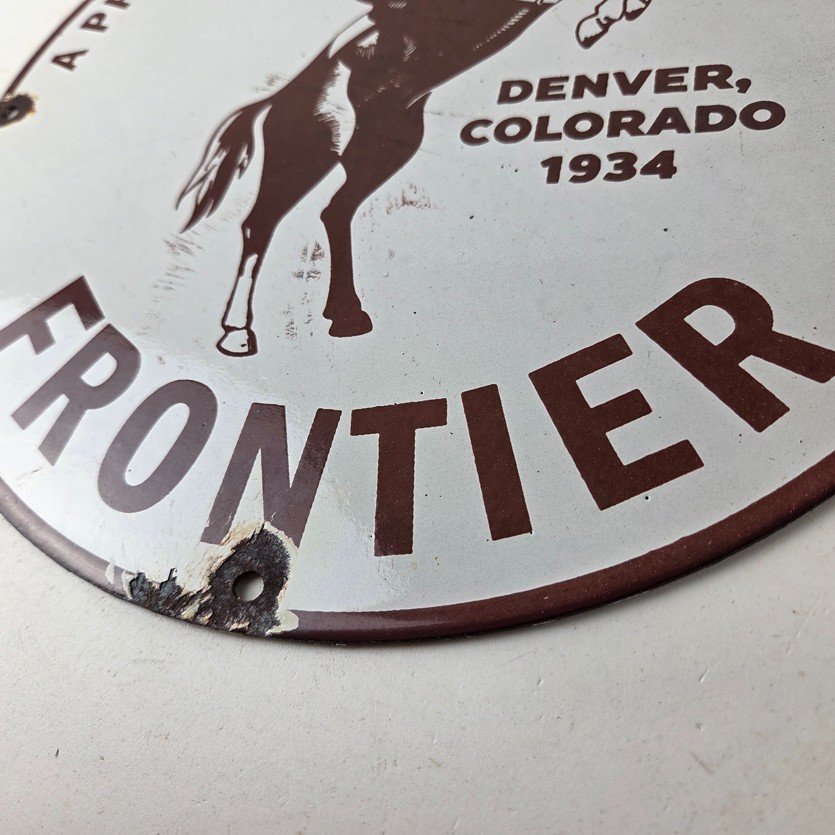 - Vintage Frontier cowgirl porcelain sign.