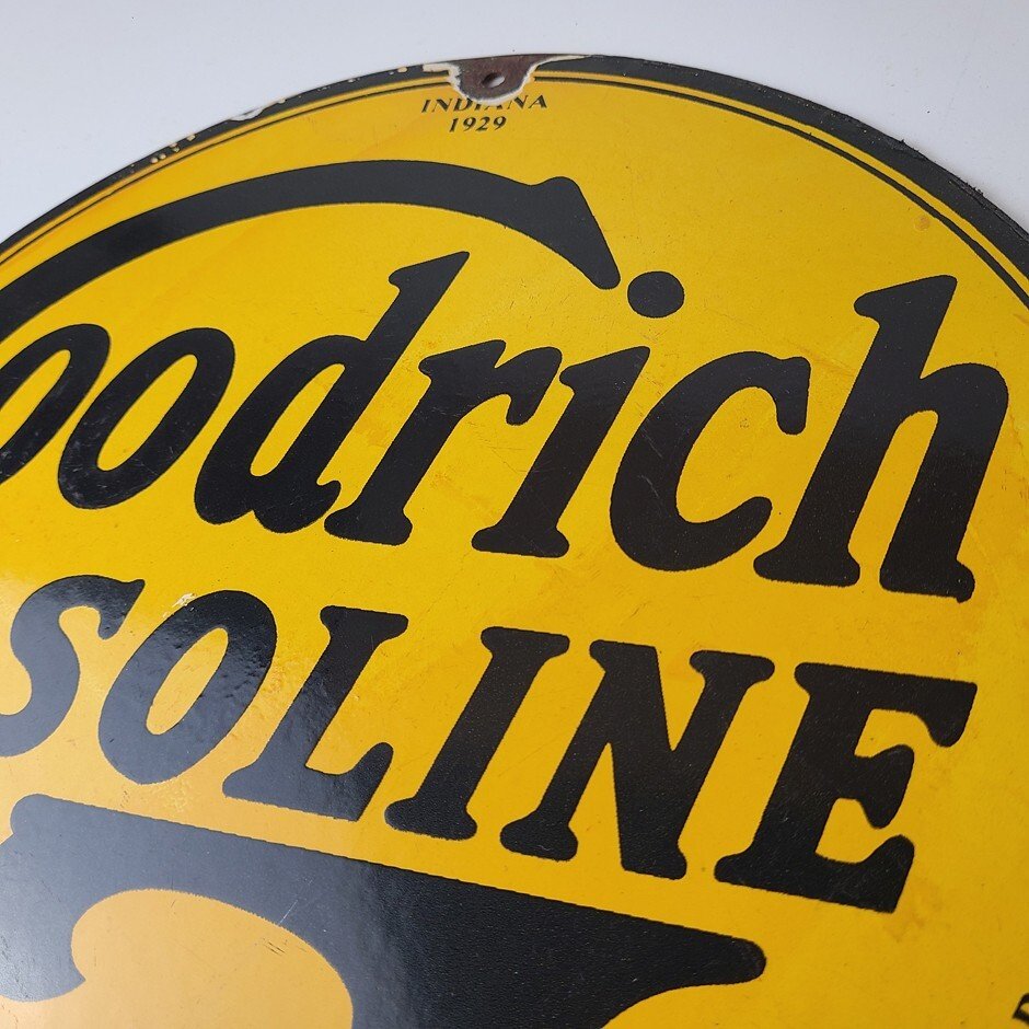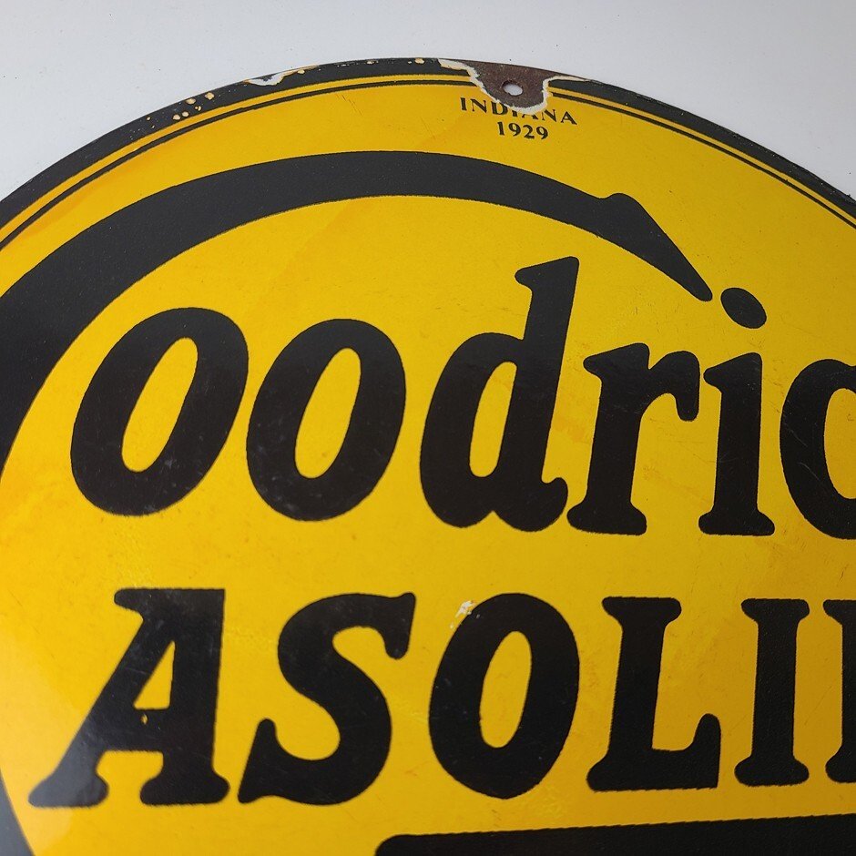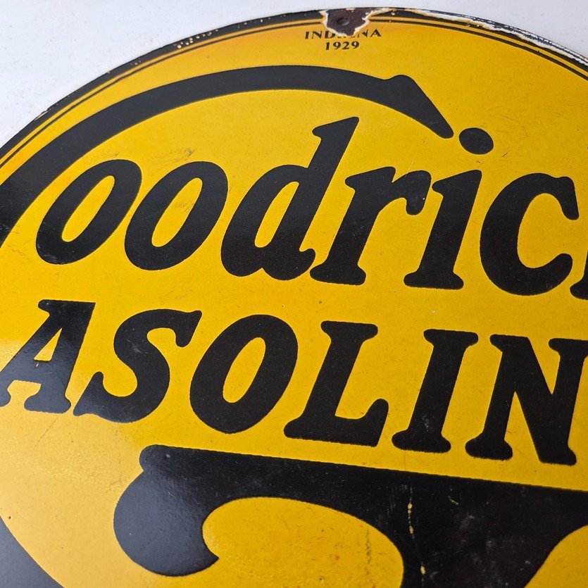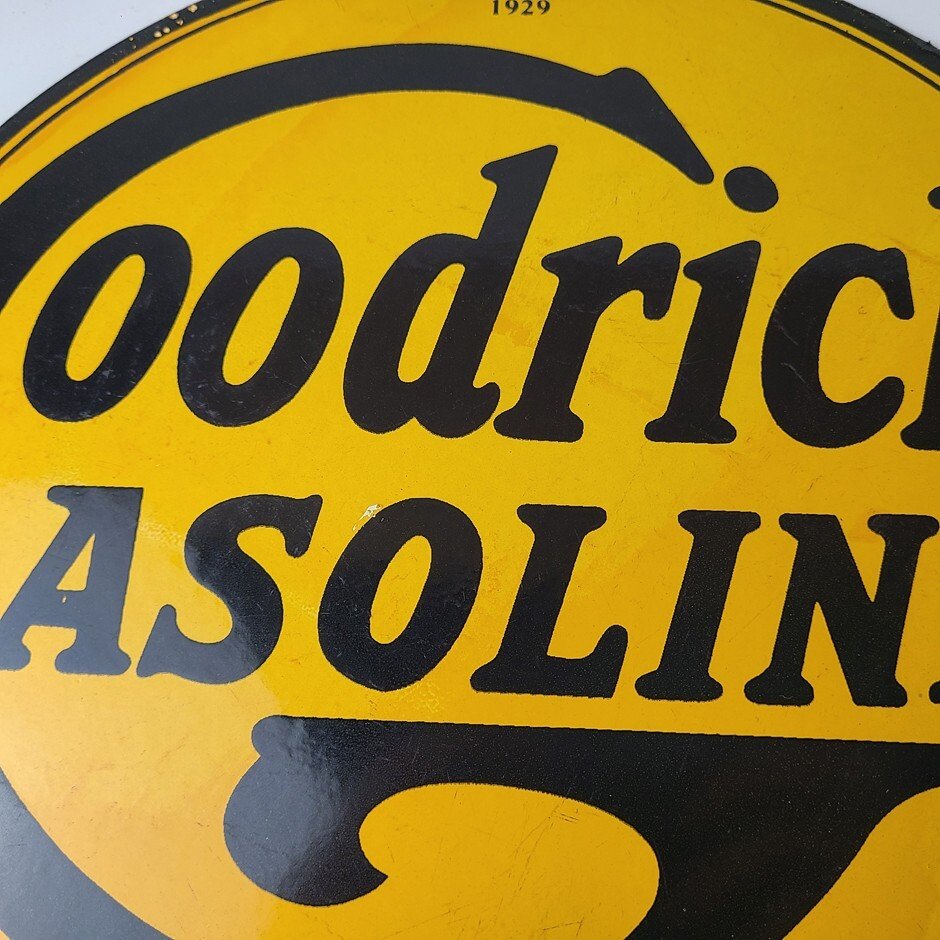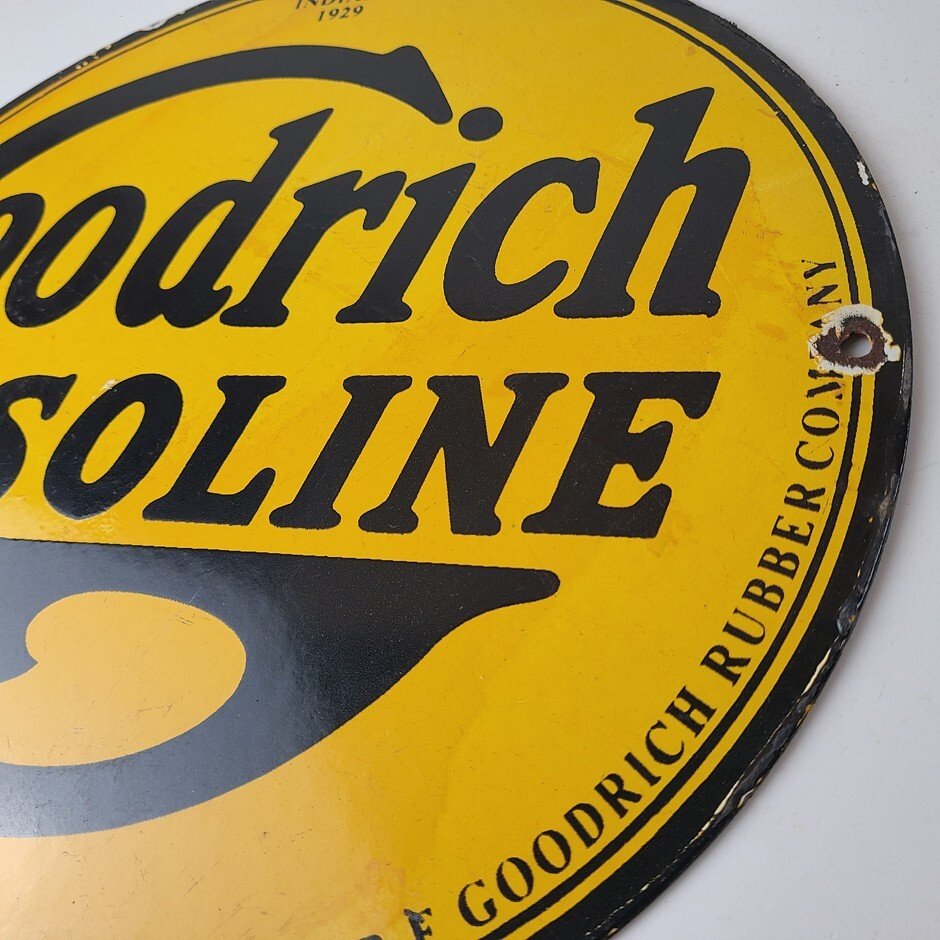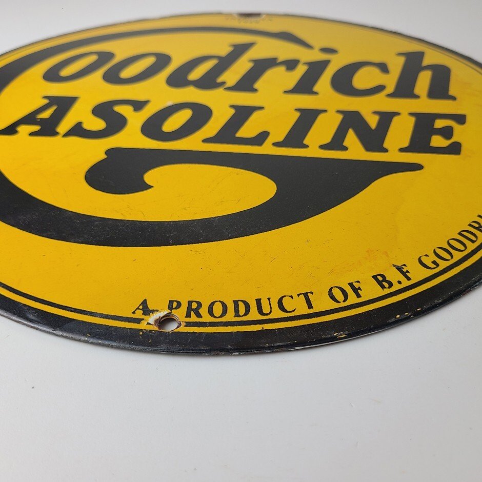 Vintage porcelain sign featuring Goodrich Gasoline.