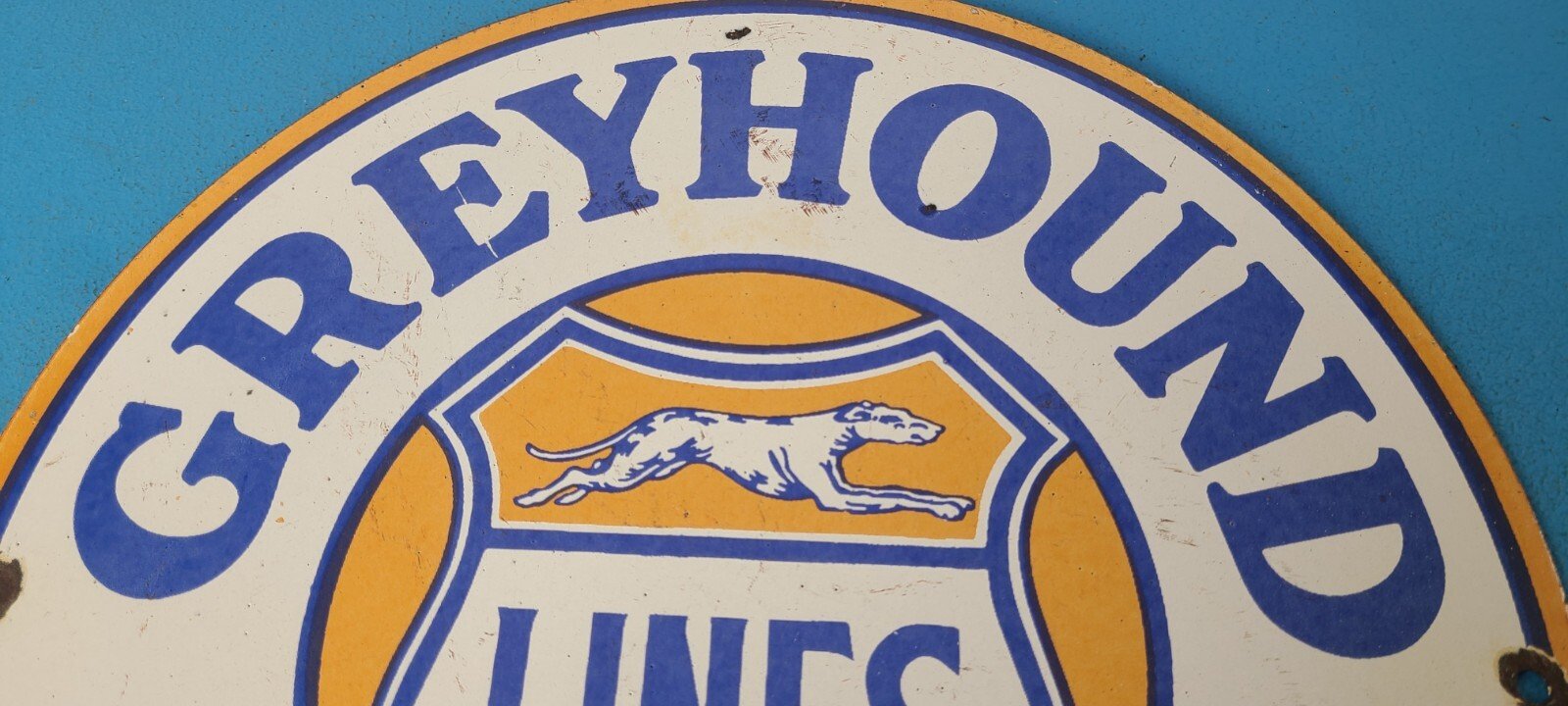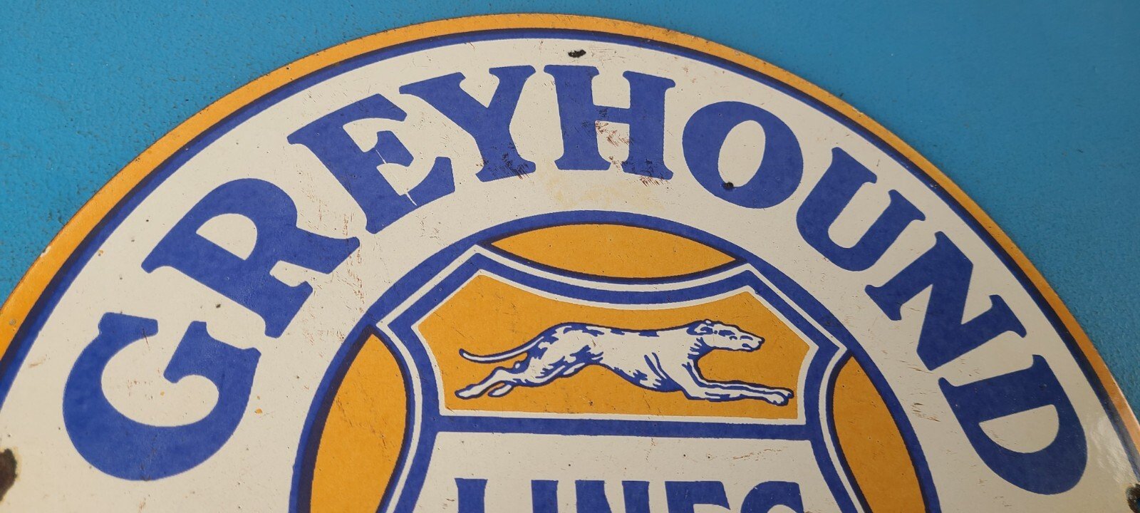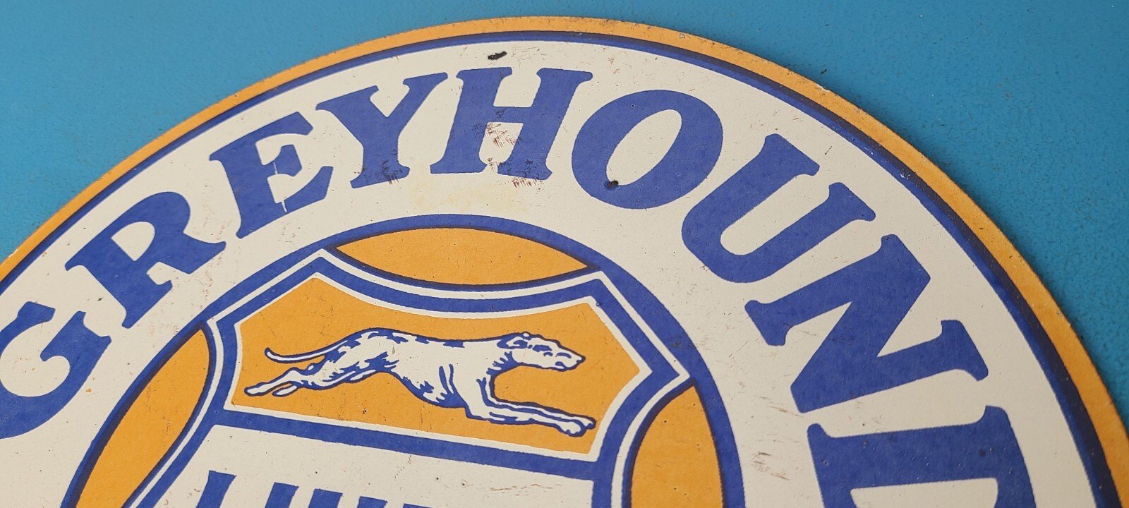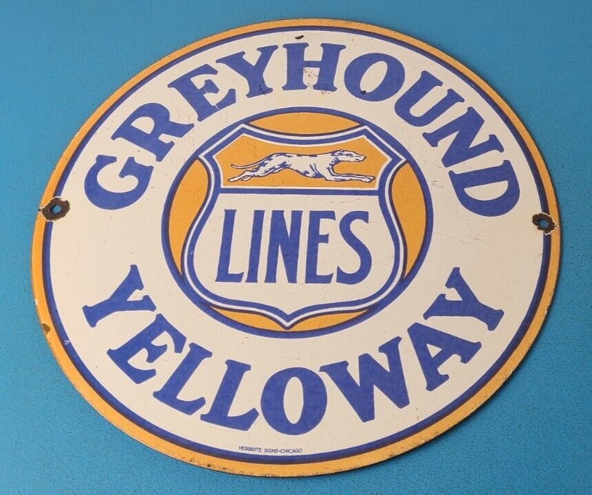 - Vintage Greyhound porcelain sign.