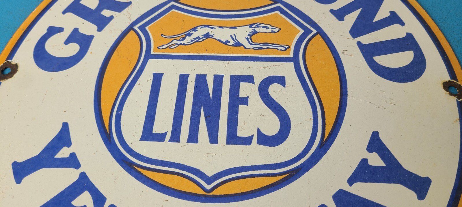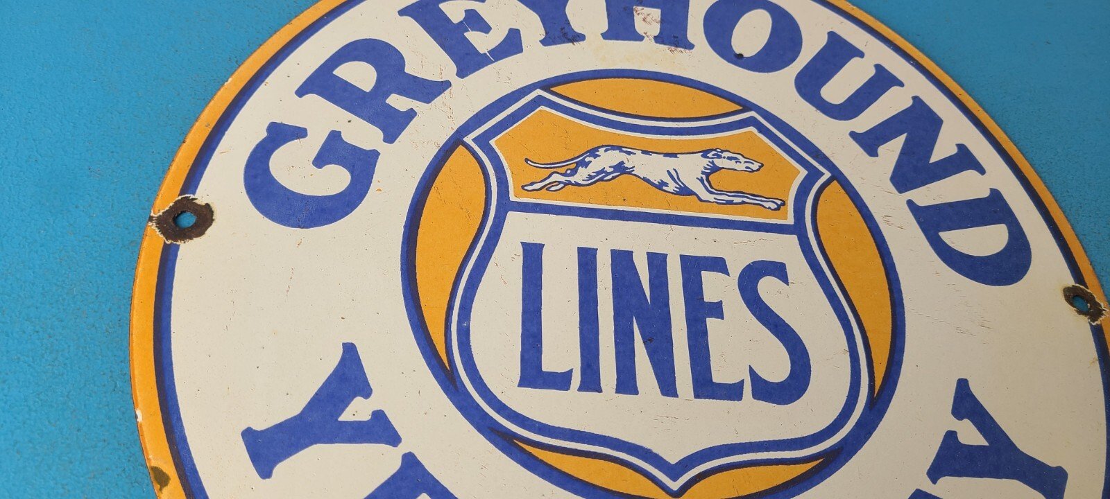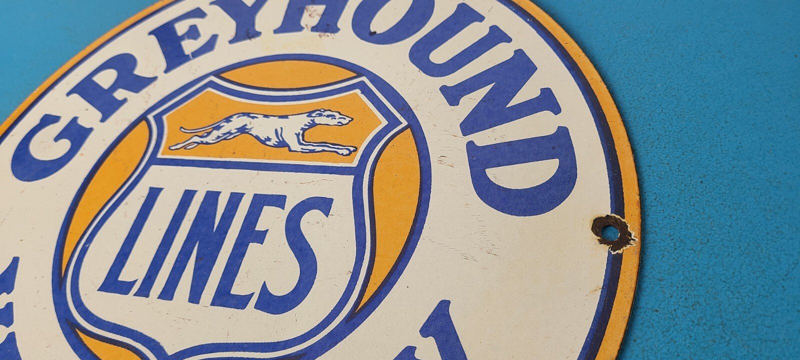 Vintage Greyhound Bus Lines Porcelain Sign.