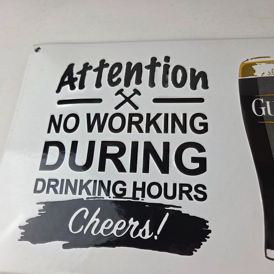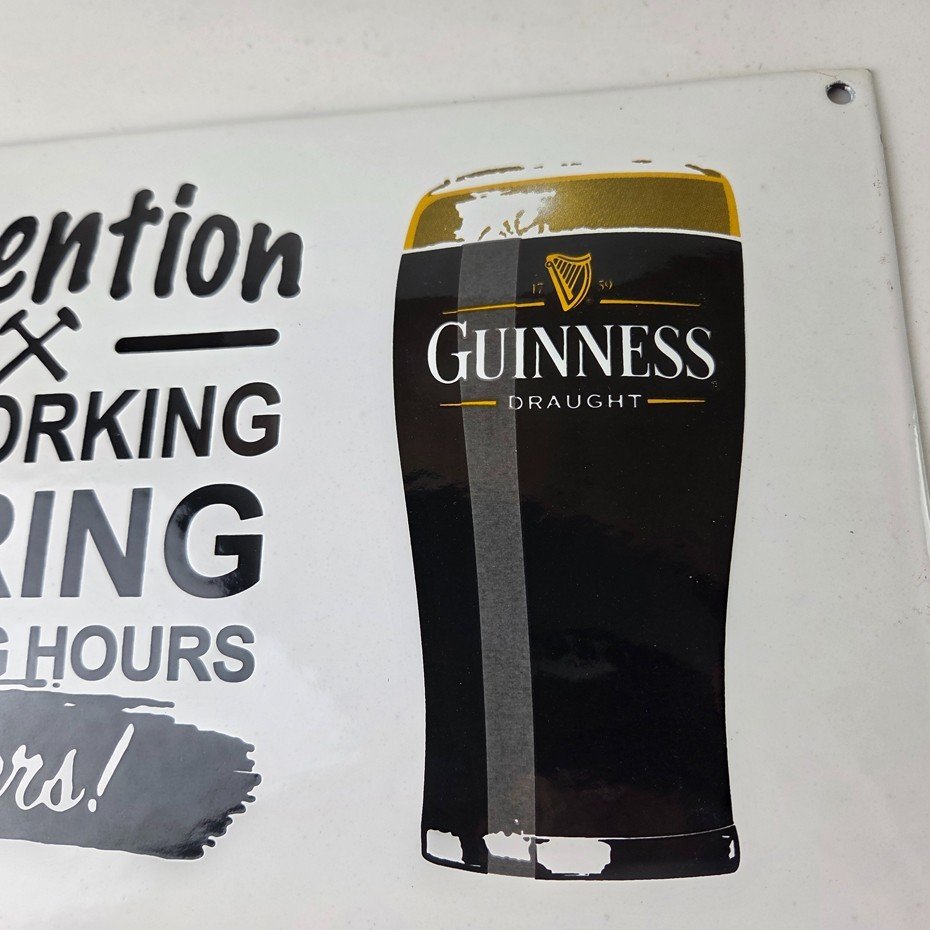 This vintage Guinness Beer porcelain sign features the iconic glass of Guinness with the large lettering on the left side of the sign. Add a vintage touch to your gas station or soda beverage collection with this alcohol beer sign. Measuring 11 3/4 inches by 7 3/4 inches, this sign has excellent colors and porcelain.