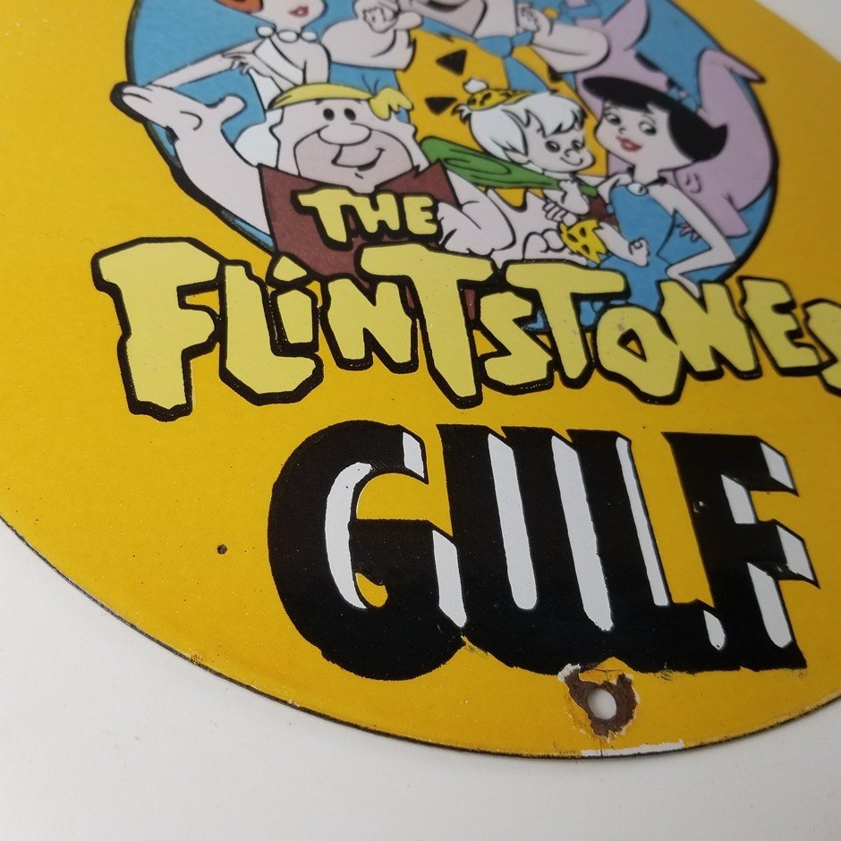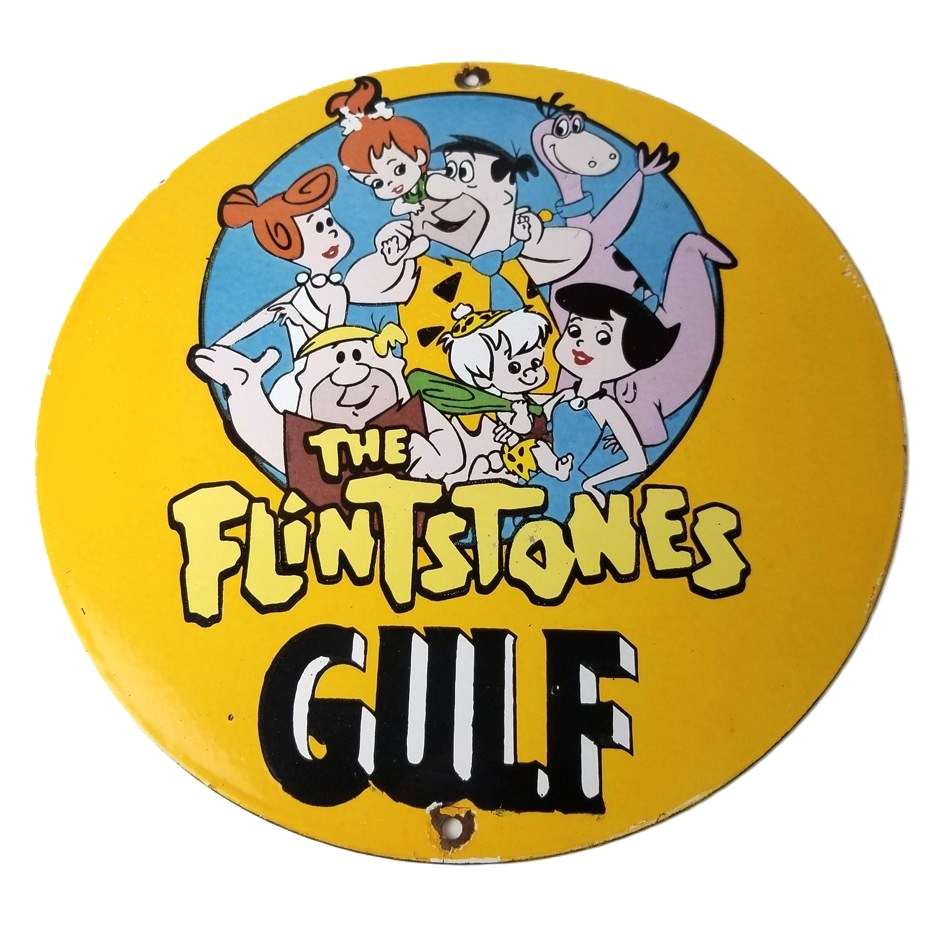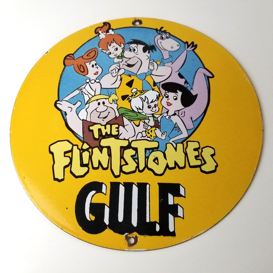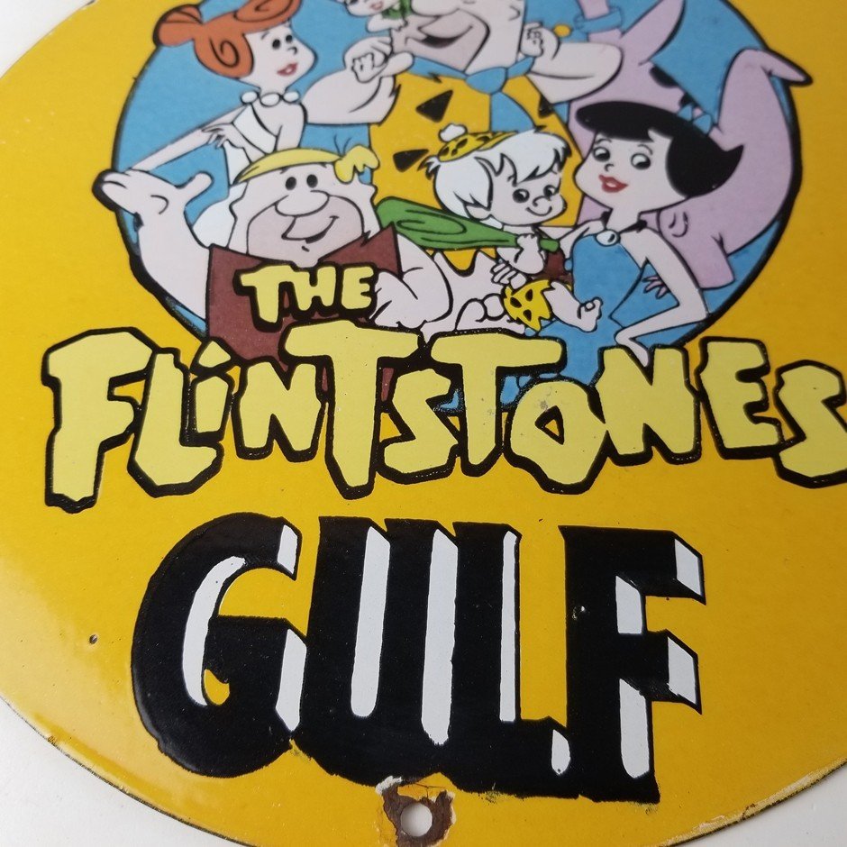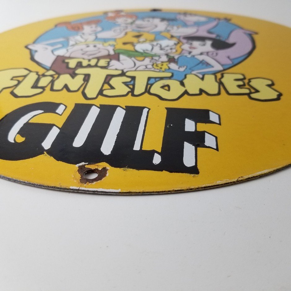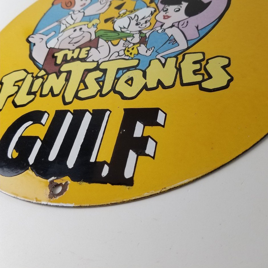 Vintage Gulf Gasoline Sign – Flintstones Porcelain Advertising Gas Pump Sign