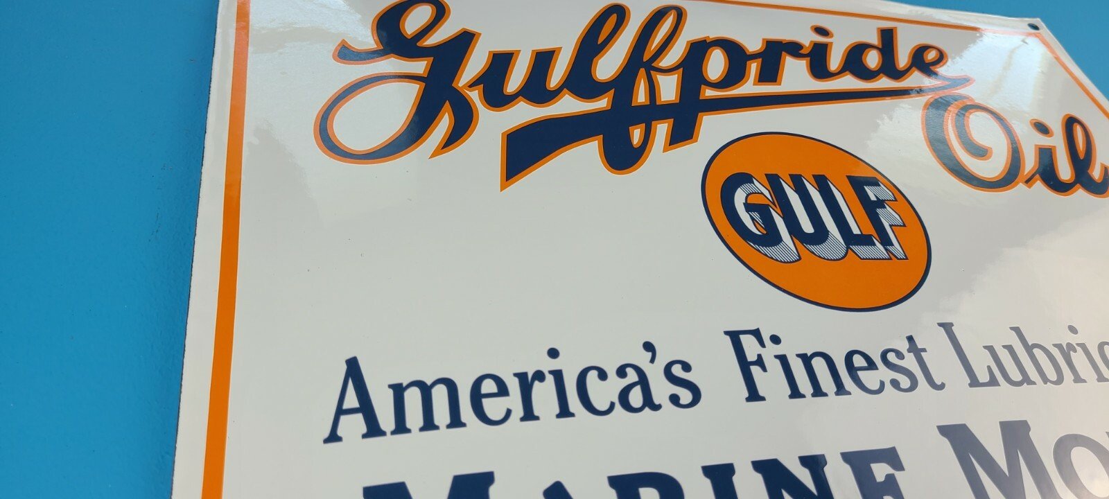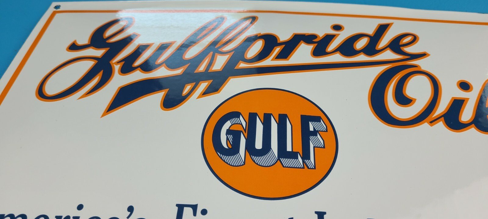 VINTAGE GULFPRIDE GASOLINE PORCELAIN GAS OIL 16" SERVICE STATION PUMP PLATE SIGN