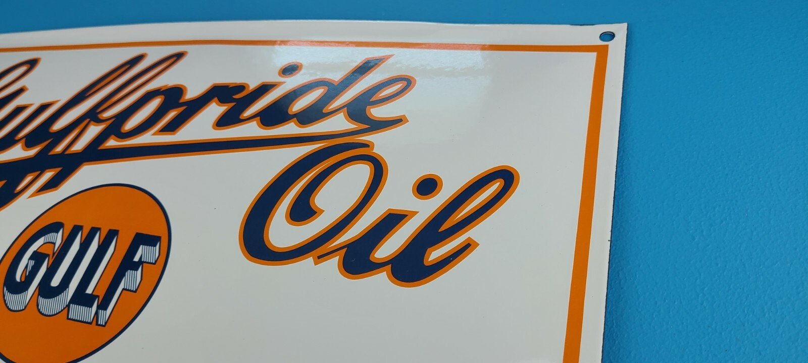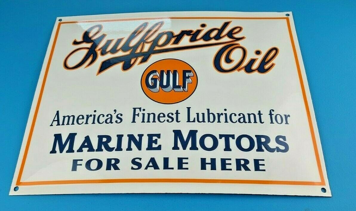 For sale is a vintage Gulf Gasoline porcelain gas service station & pump plate sign. Please view the pictures as they are part of the description (a picture is worth a thousand words)! I try my best to take pictures of all the angles of this sign. This sign has excellent colors and gloss. Sign measures 12 3/4″ x 16 1/4″. Check out my other auctions, and feel free to ask questions. Perfect for gas collectors, automobile enthusiasts, sign collection, man cave, restaurant, bar, garage, displays anywhere. See my other gas & motor oil, aviation, automotive, soda & beverage signs. $10 for shipping anywhere in the U.S. with Priority Mail. Shipping will be $5.00 for each additional item! Thank you!