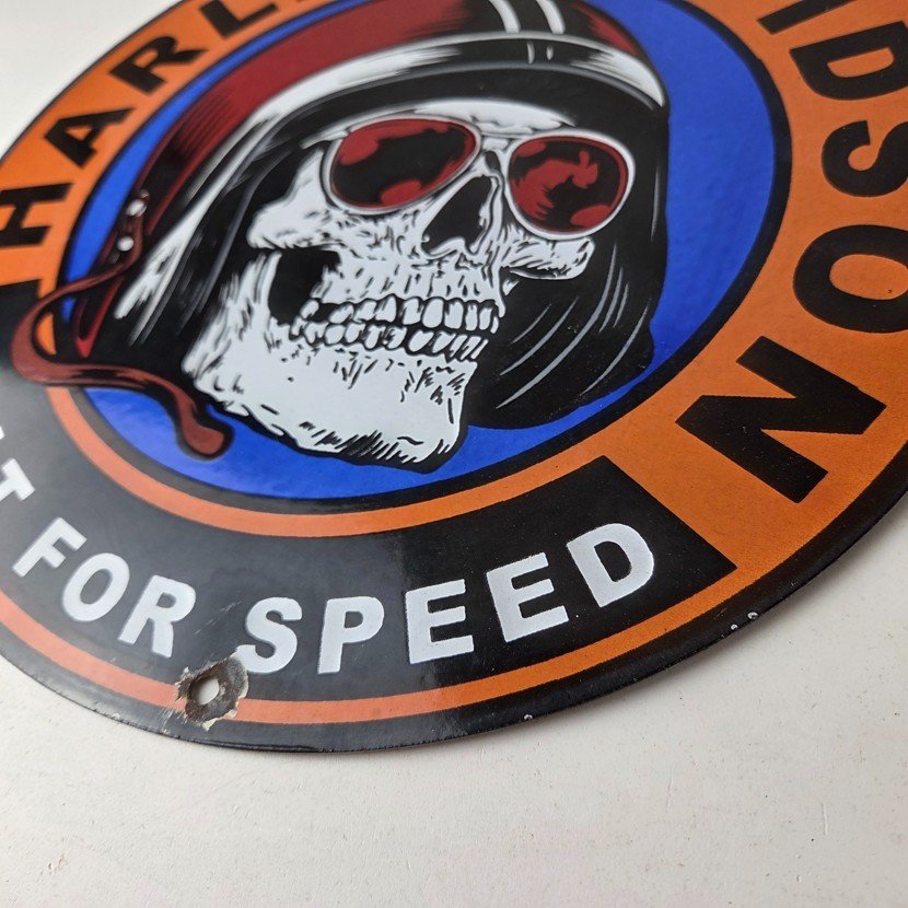 Measuring at 12 inches, this Porcelain sign is a perfect addition to any Gas & Oil themed memorabilia collection. It’s a type of advertising that showcases the brand’s unique aesthetic and is sure to catch the eye of any Harley Davidson enthusiast. The sign is in excellent condition and can be mounted on your wall / man cave / garage easily without much effort.