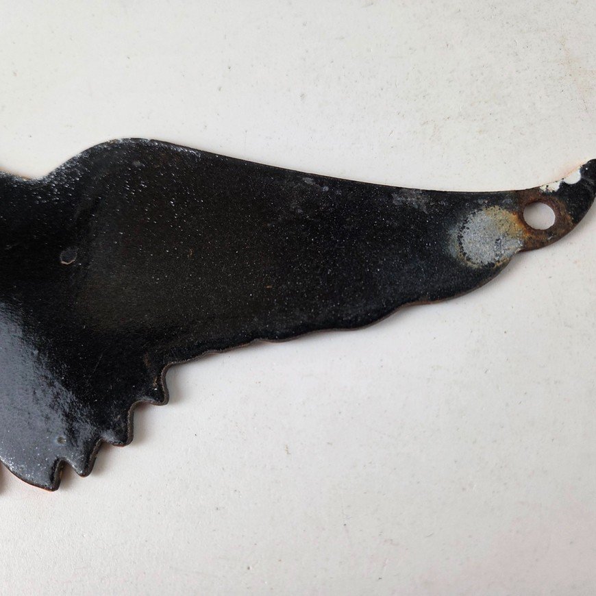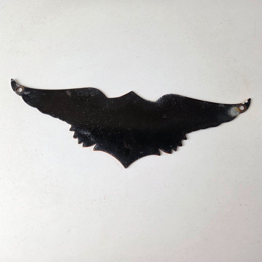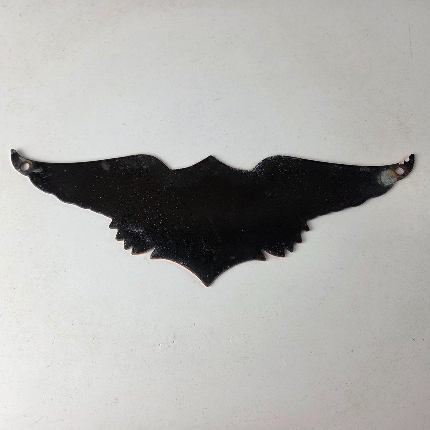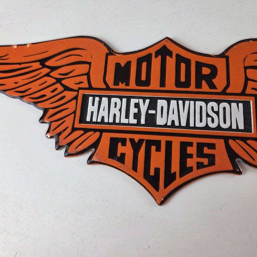 This vintage porcelain sign showcases the iconic Harley Davidson Motorcycles company with the Harley chicken wings. Measuring at 12″ by 4″, this Harley sign is a must-have for any gas & oil or collectibles enthusiast. The bold orange & black colors make this sign a standout piece of advertising for any man cave, collector, motorcycle shop, or garage.