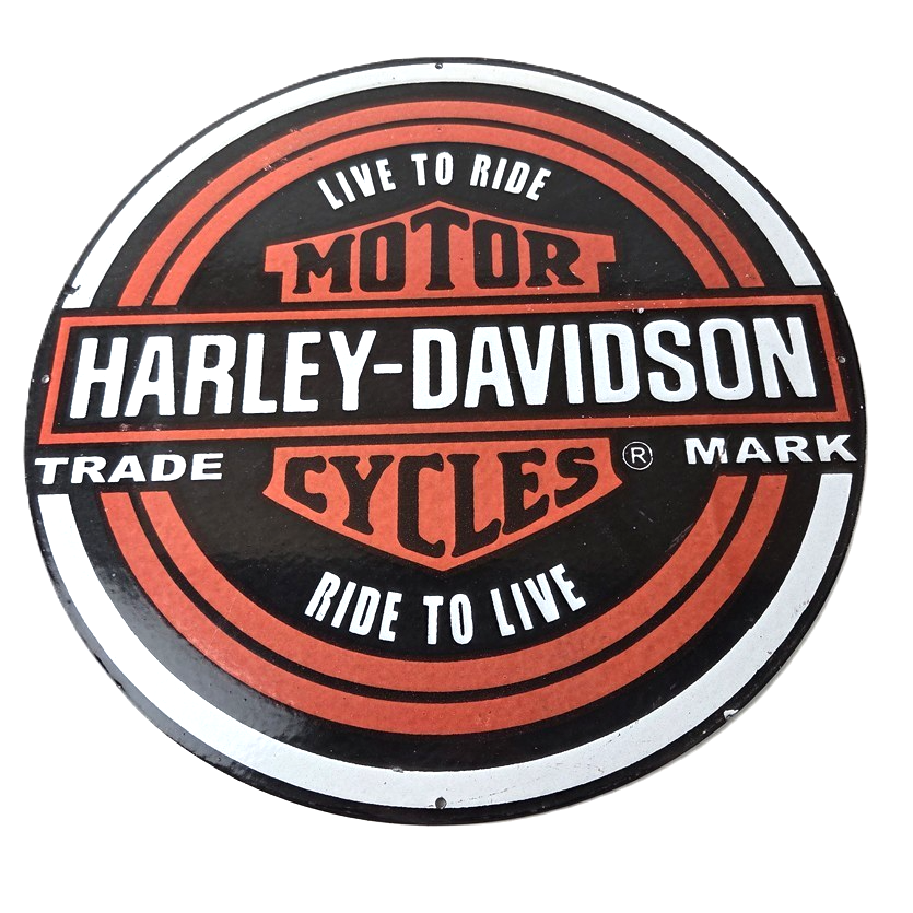 This vintage porcelain sign showcases the iconic Harley Davidson Motorcycles company with the Bar and Shield logo. Measuring at 12″, this Harley sign is a must-have for any gas & oil or collectibles enthusiast. The bold orange & black colors make this sign a standout piece of advertising for any man cave, collector, motorcycle shop, or garage.