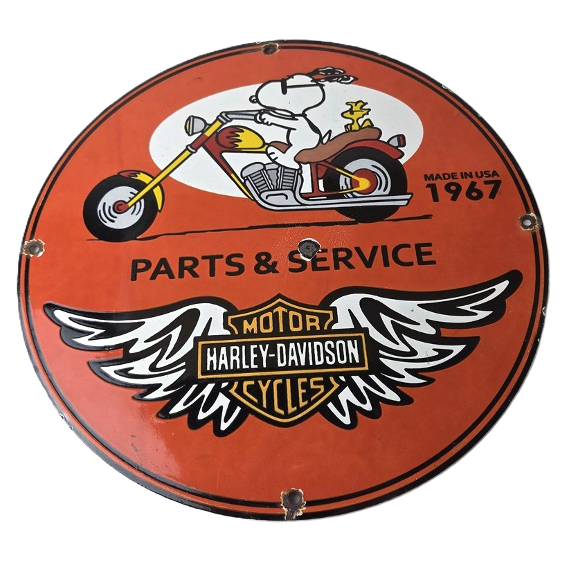 Vintage Harley Davidson Motorcycles Sign – Snoopy Porcelain Gas Pump Sign