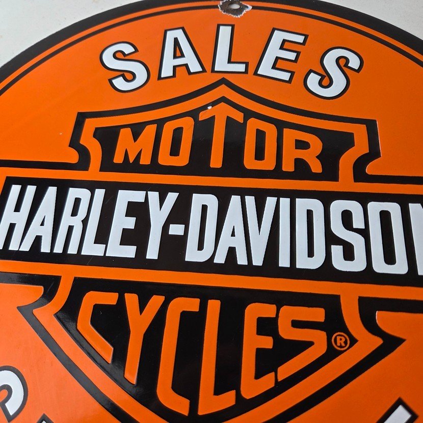 - Vintage Harley Davidson Motorcycles porcelain sign.