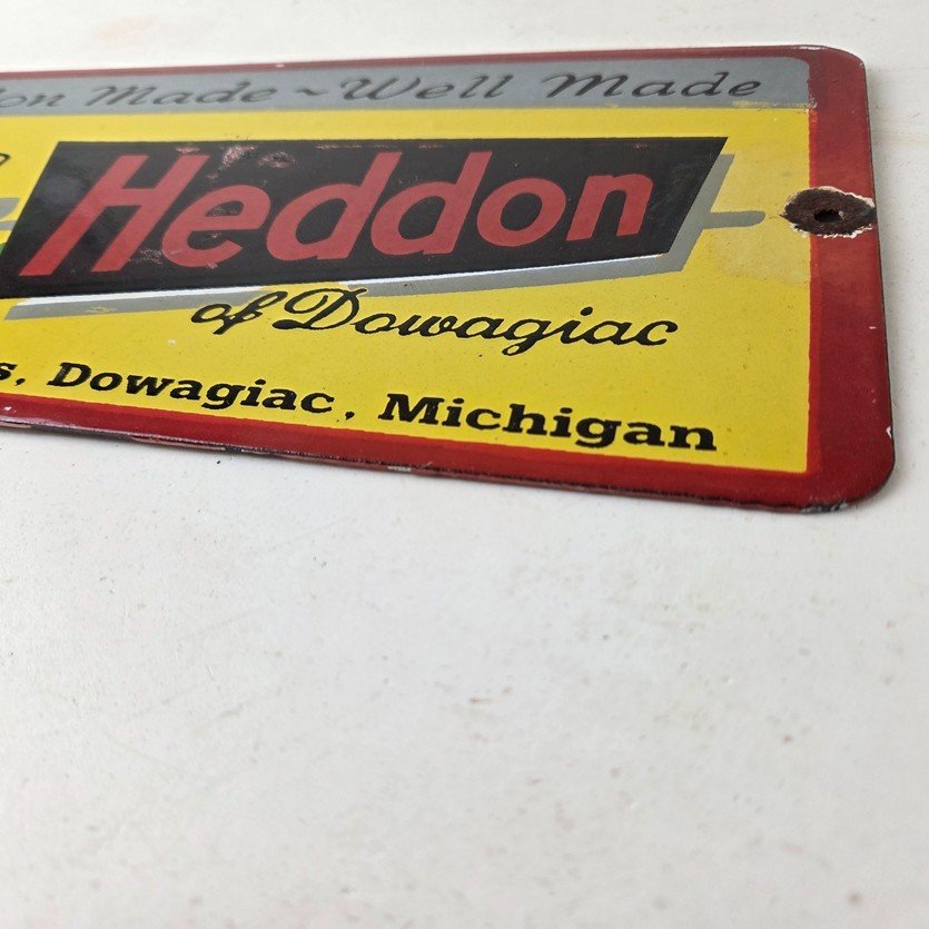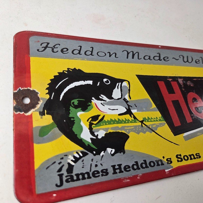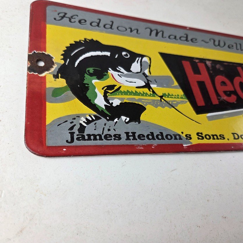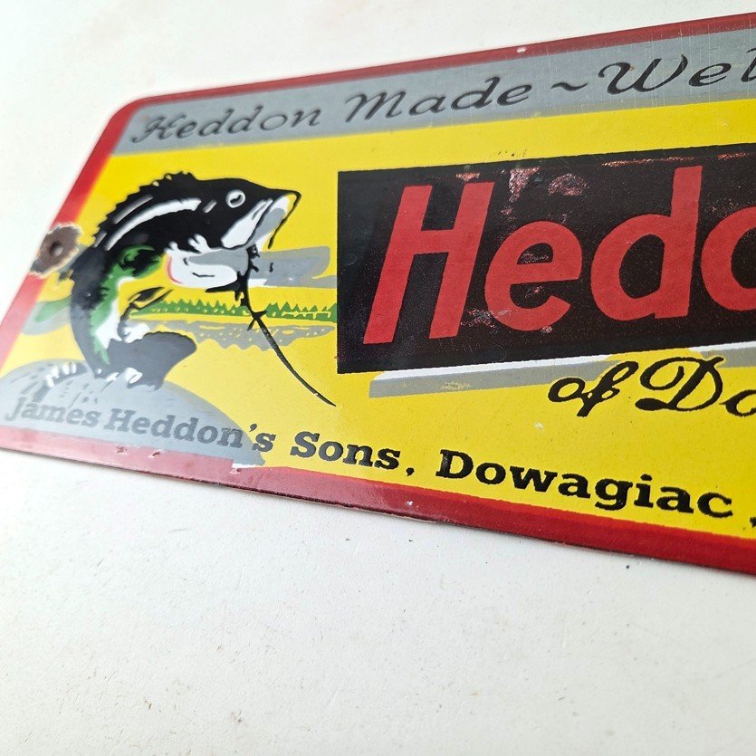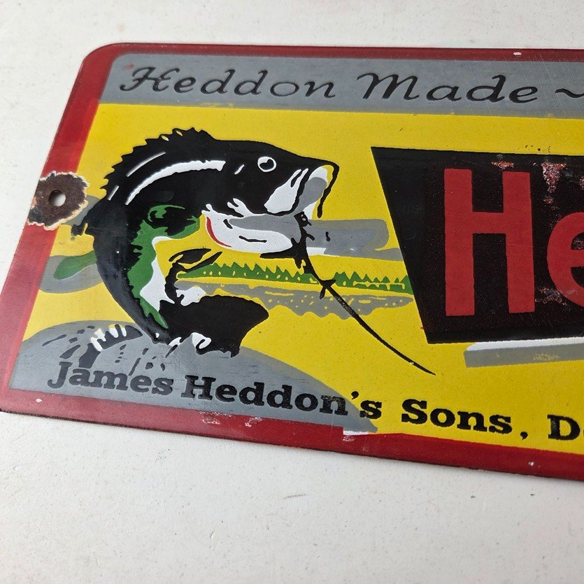 Vintage Heddon Fishing Lures Sign – Fish Tackle Lures Gas Pump Porcelain Ad Sign