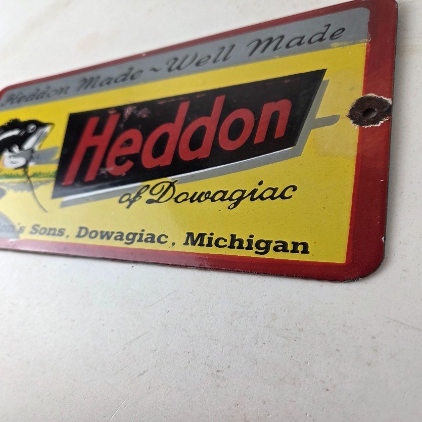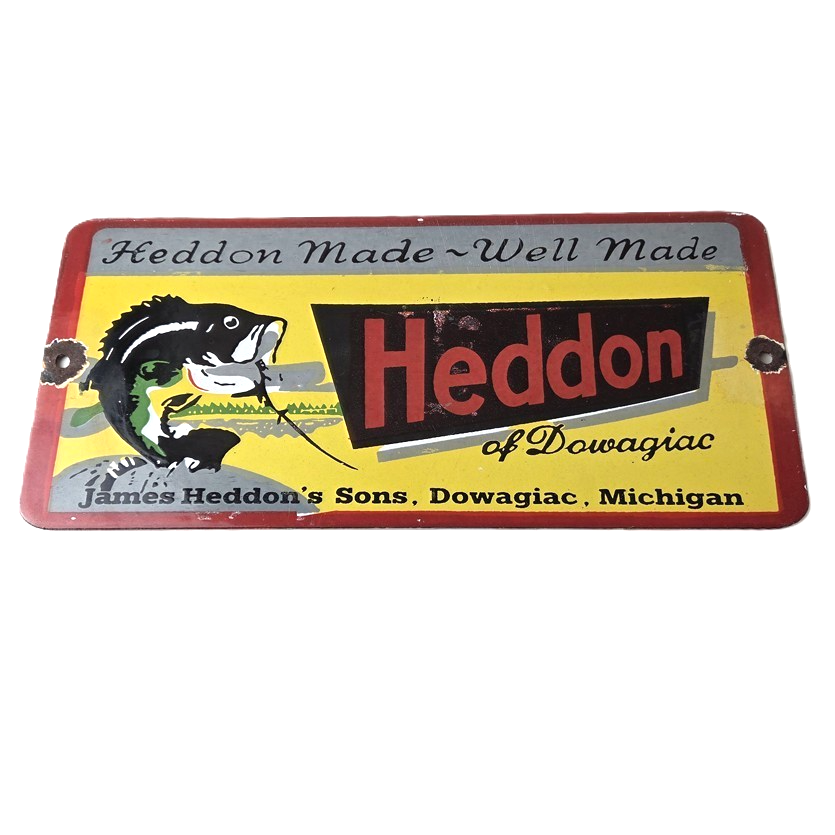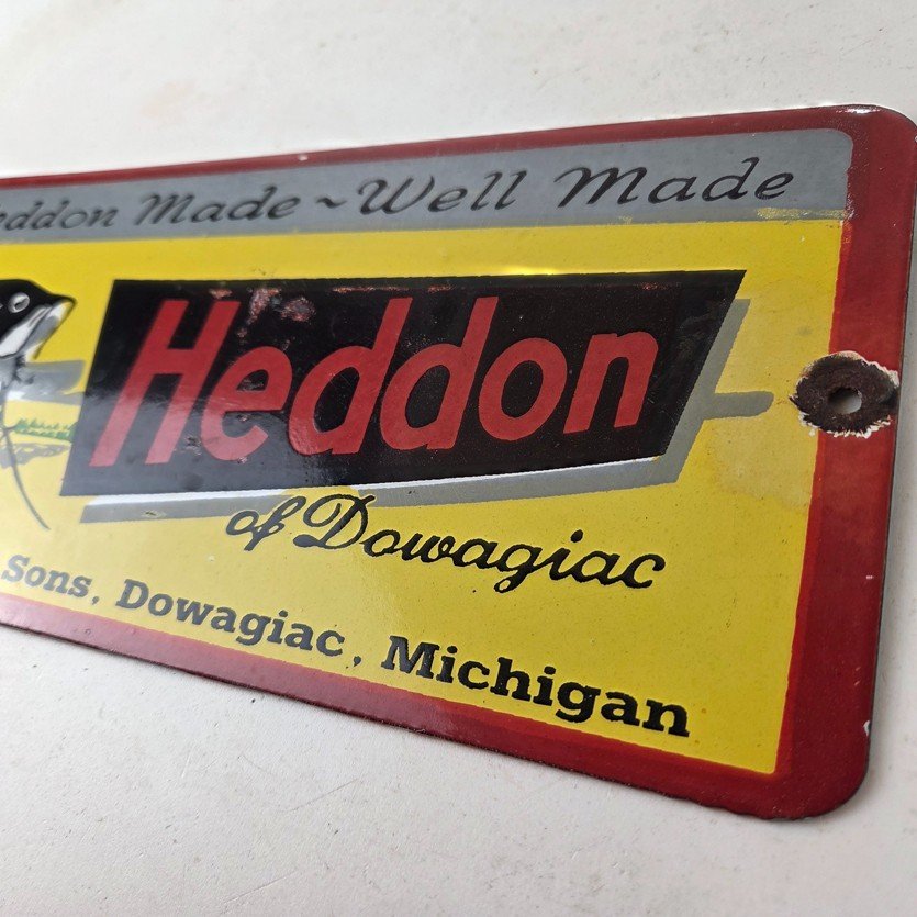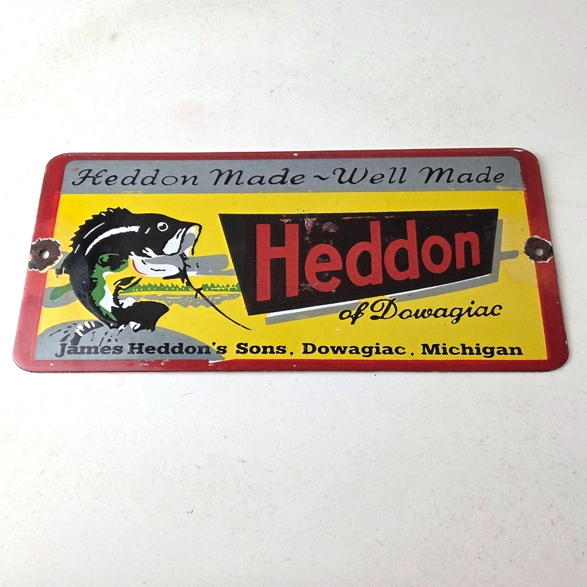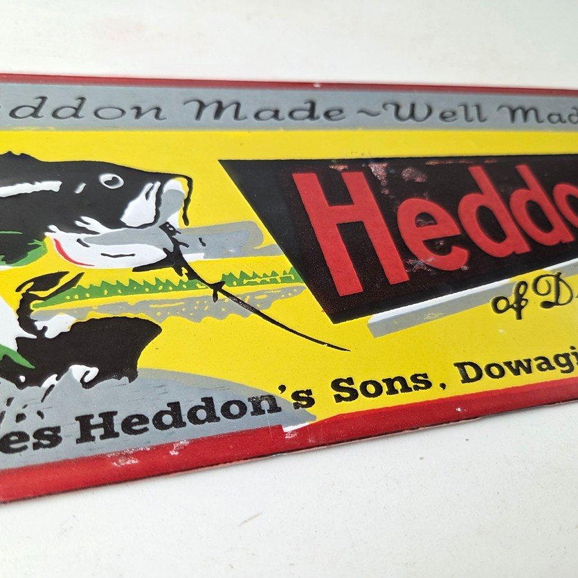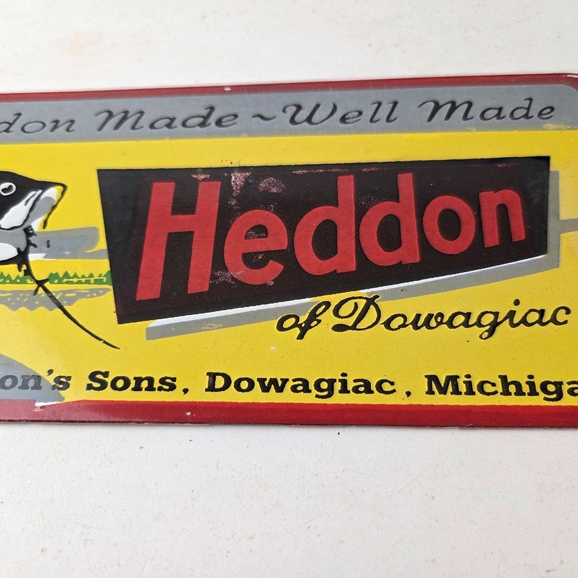 Vintage Heddon Fishing Lures Sign – Fish Tackle Lures Gas Pump Porcelain Ad Sign