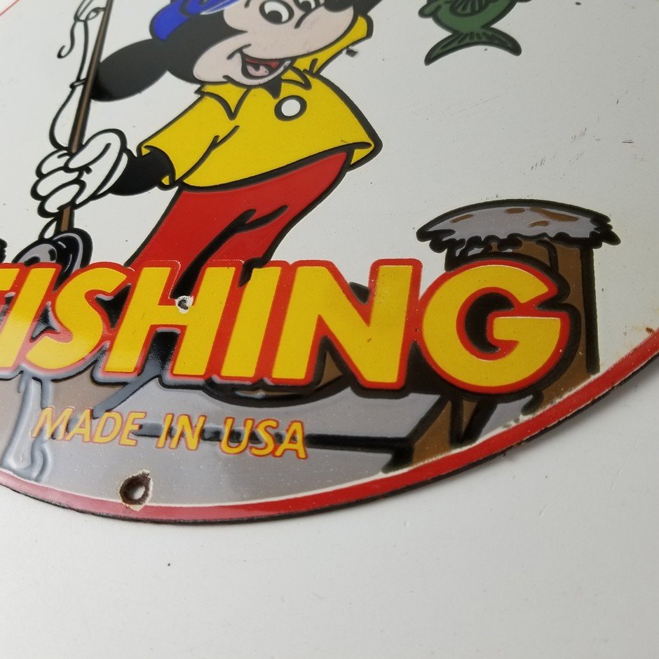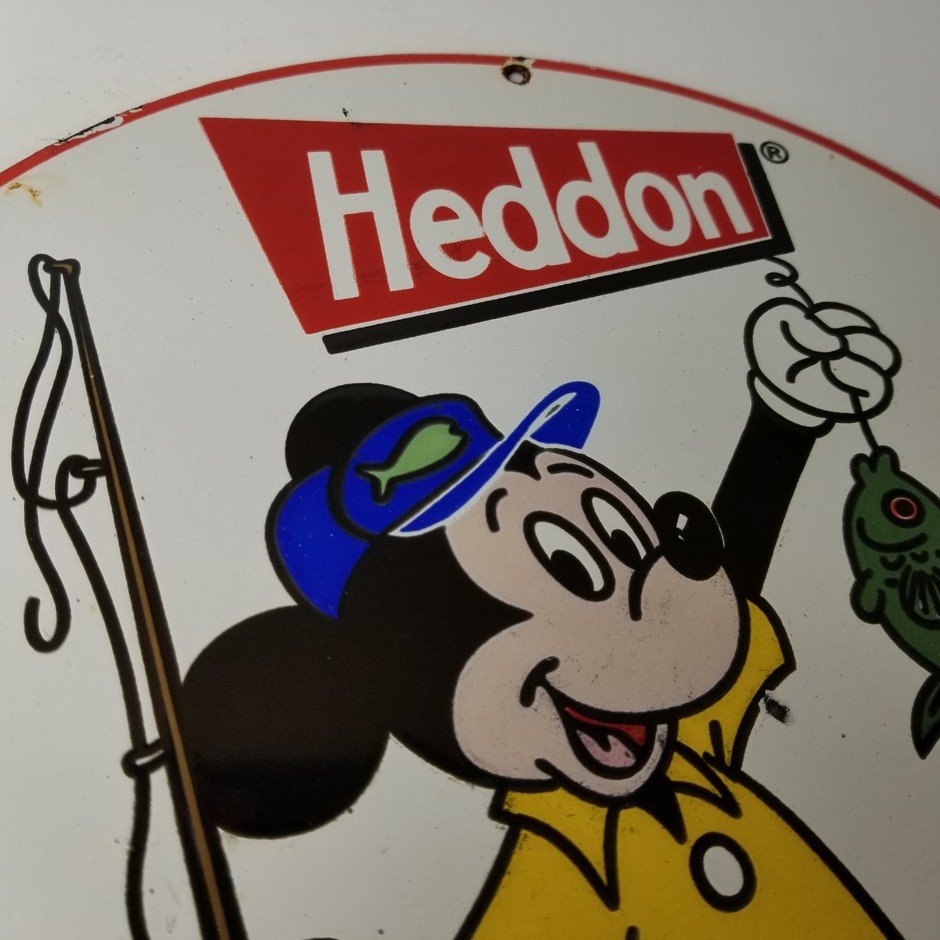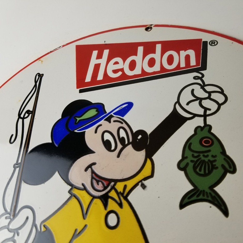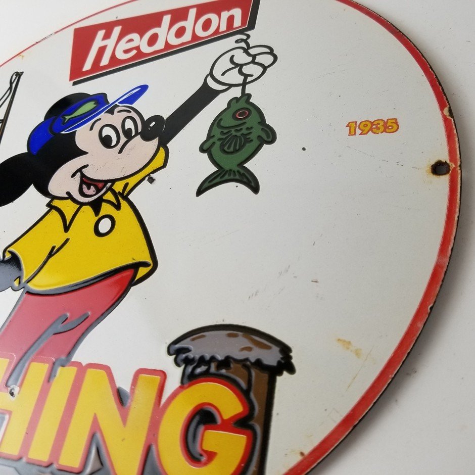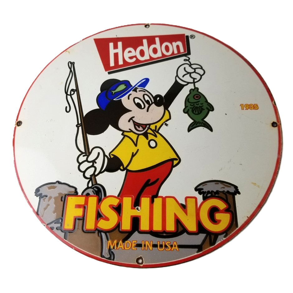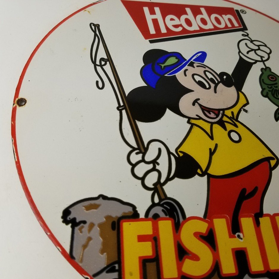 Vintage Heddon Fishing Tackle Sign – Mickey Mouse Gas Pump Porcelain Sign