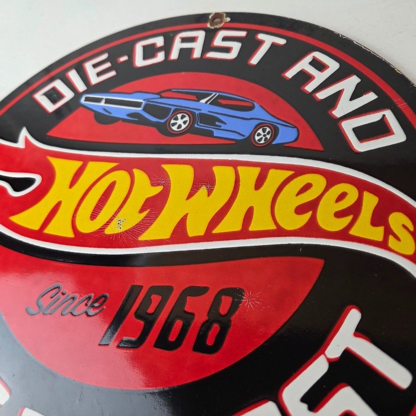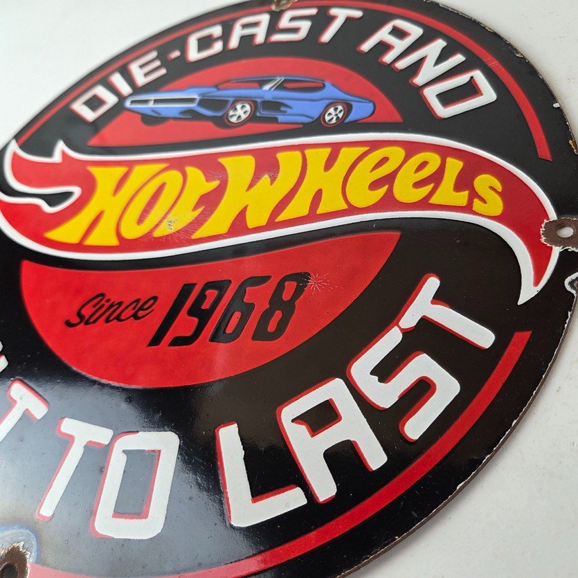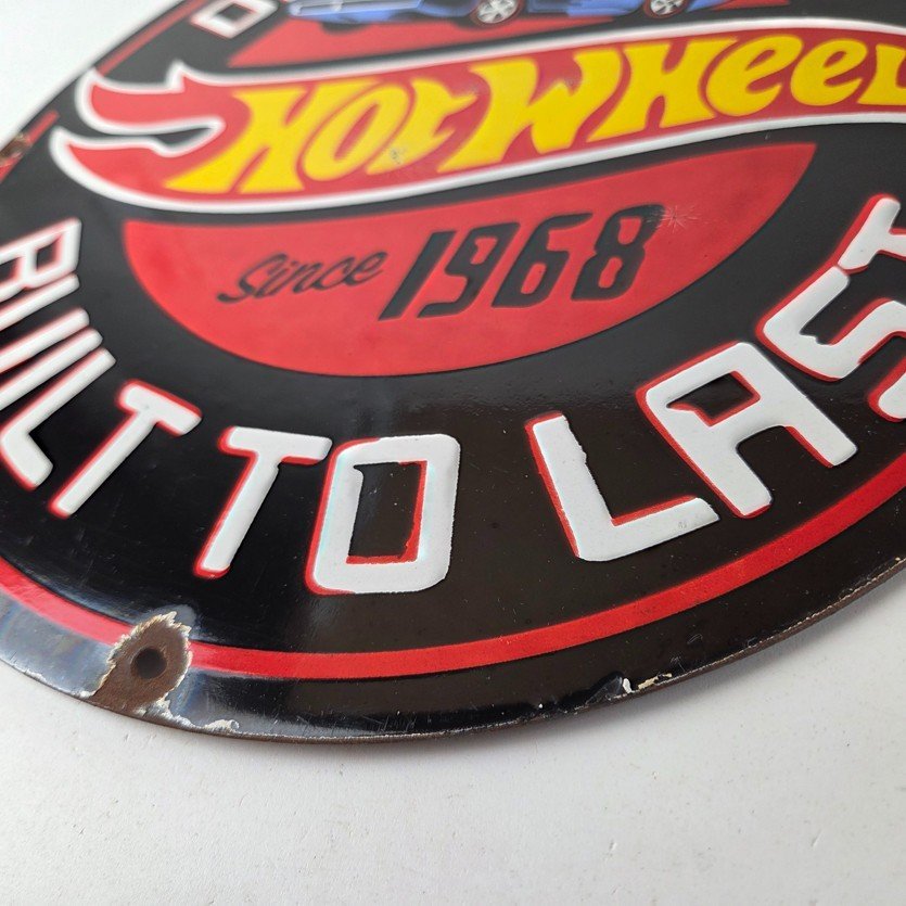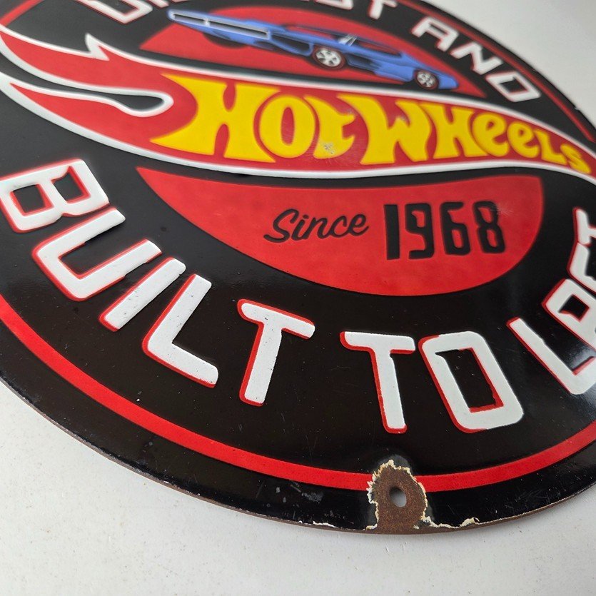 Measuring 12 inches, this sign features bold Hot Wheels red colors & yellow with the iconic Hot Wheels lettering. This sign is perfect for any car enthusiast or collector of die cast toys. Whether you’re a fan of classic automobiles or just love the aesthetic of vintage signage, this Hot Wheels sign is sure to be a conversation starter.