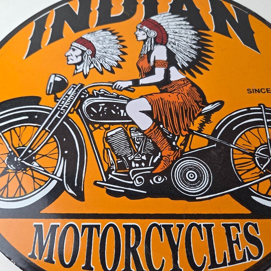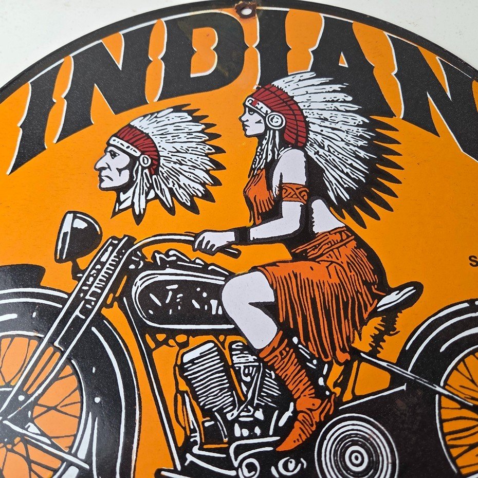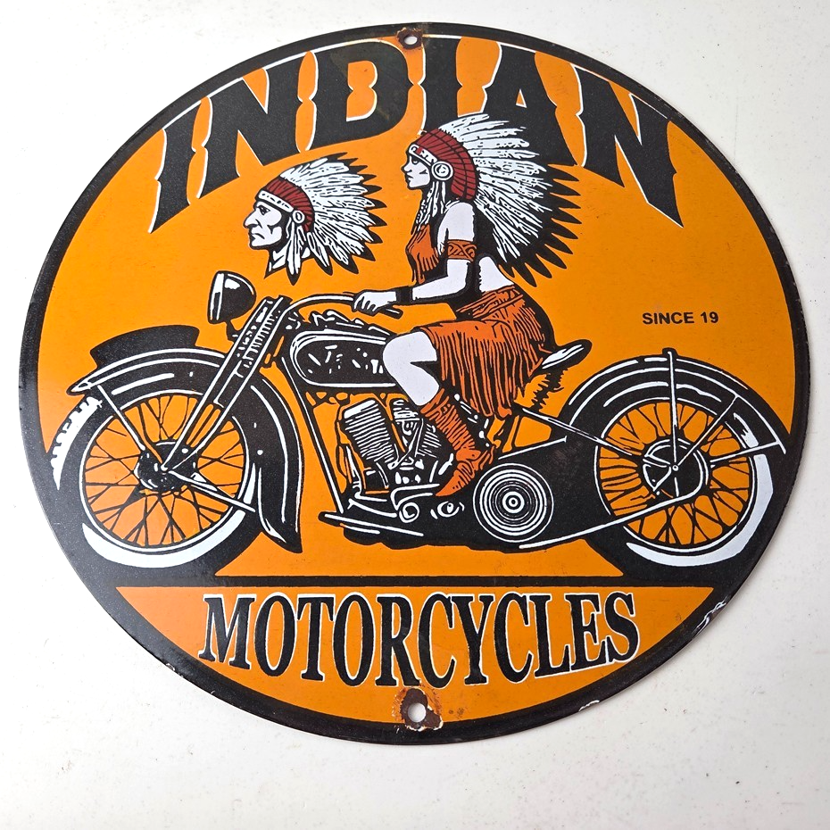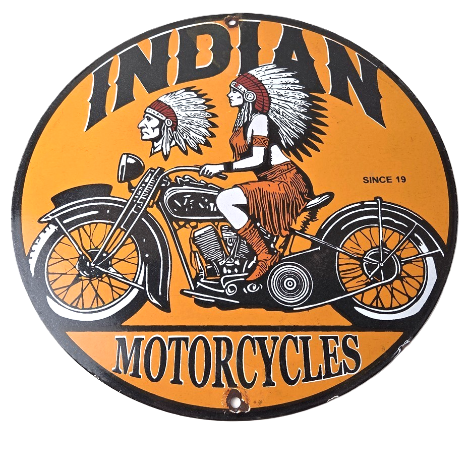 • Vintage Indian Motorcycles porcelain sign.