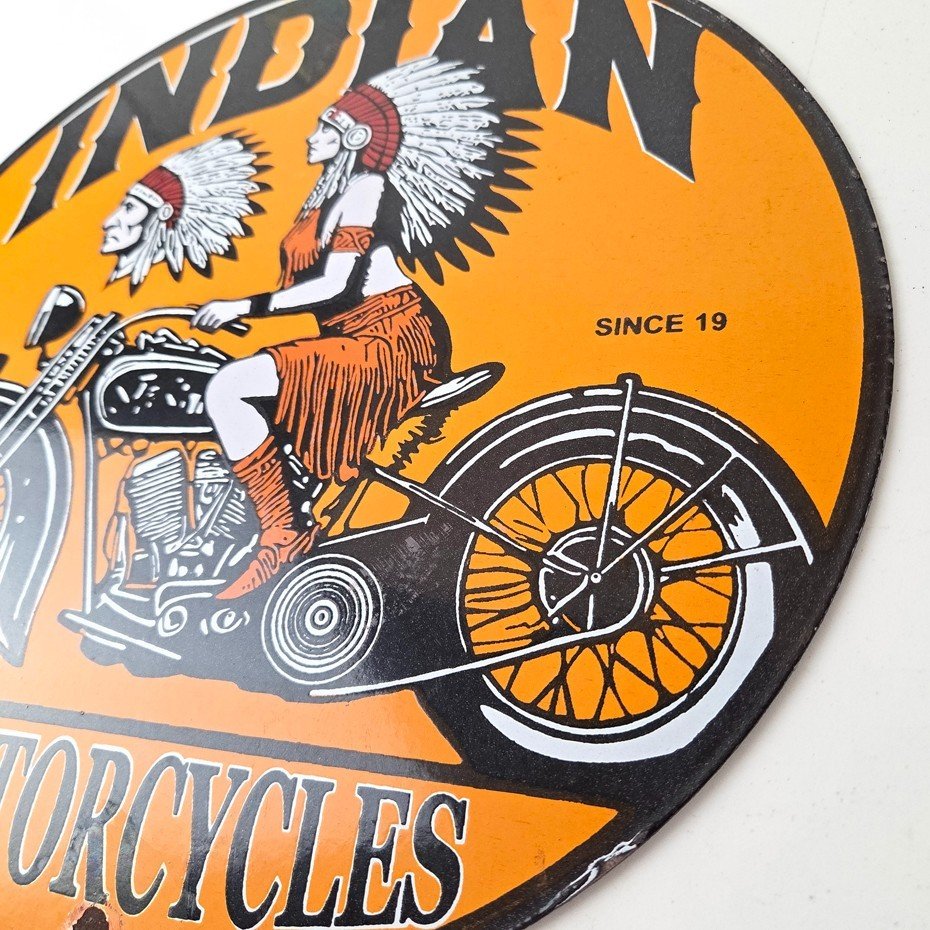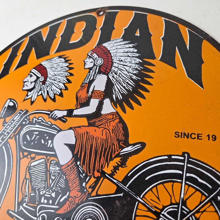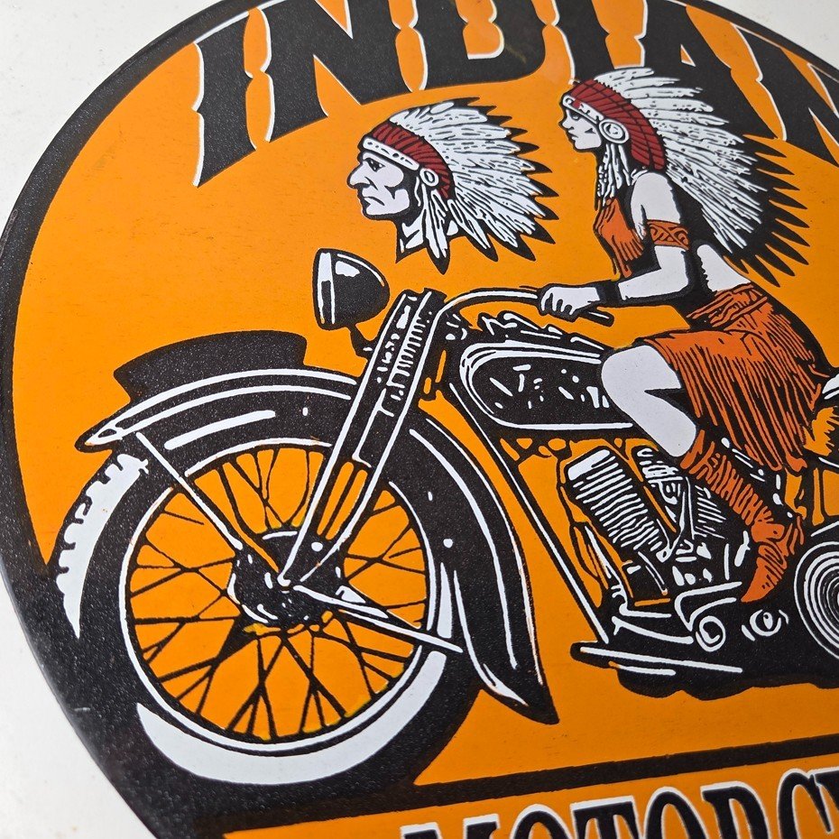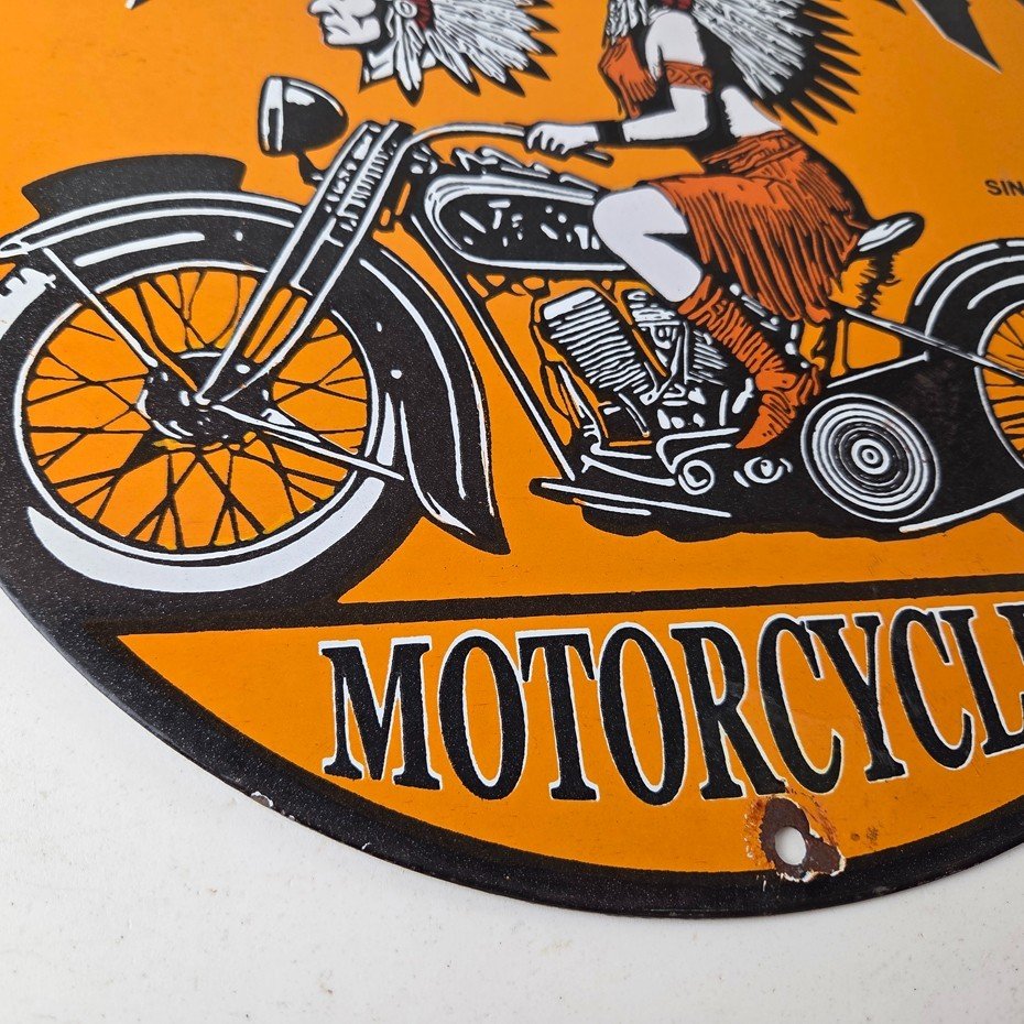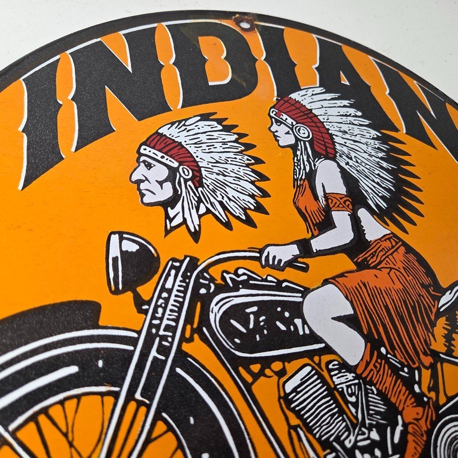 • Vintage Indian Motorcycles porcelain sign.