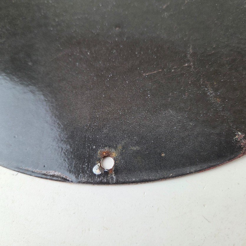 This vintage Indian Motorcycles porcelain sign features Indian Motorcycles logo at the top. The sign measures 12″ in size and has porcelain on both sides.