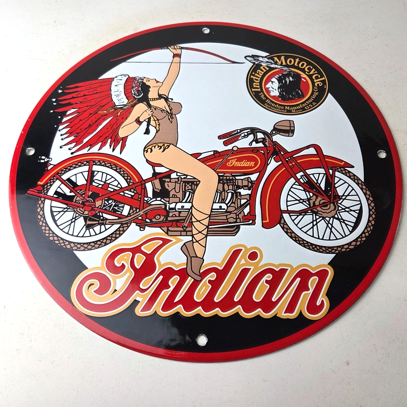 Vintage Indian Motorcycles Sign – Porcelain Gas Pump Service Station Sign