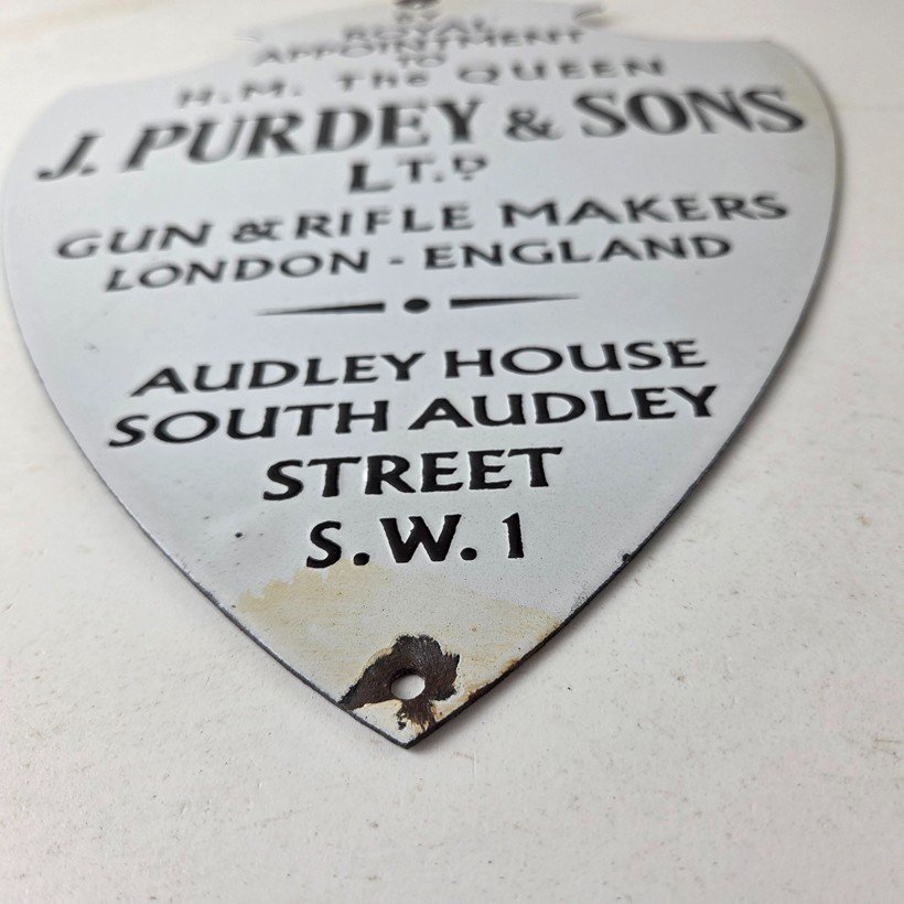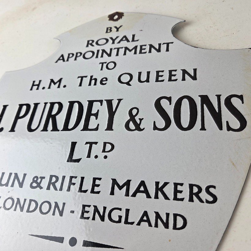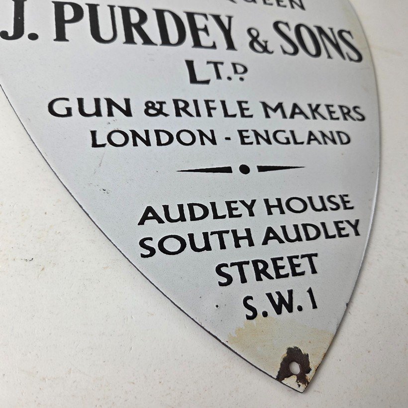 Vintage James Purdey Sign – Gun Firearm Makers Hunters Gas Porcelain Sign