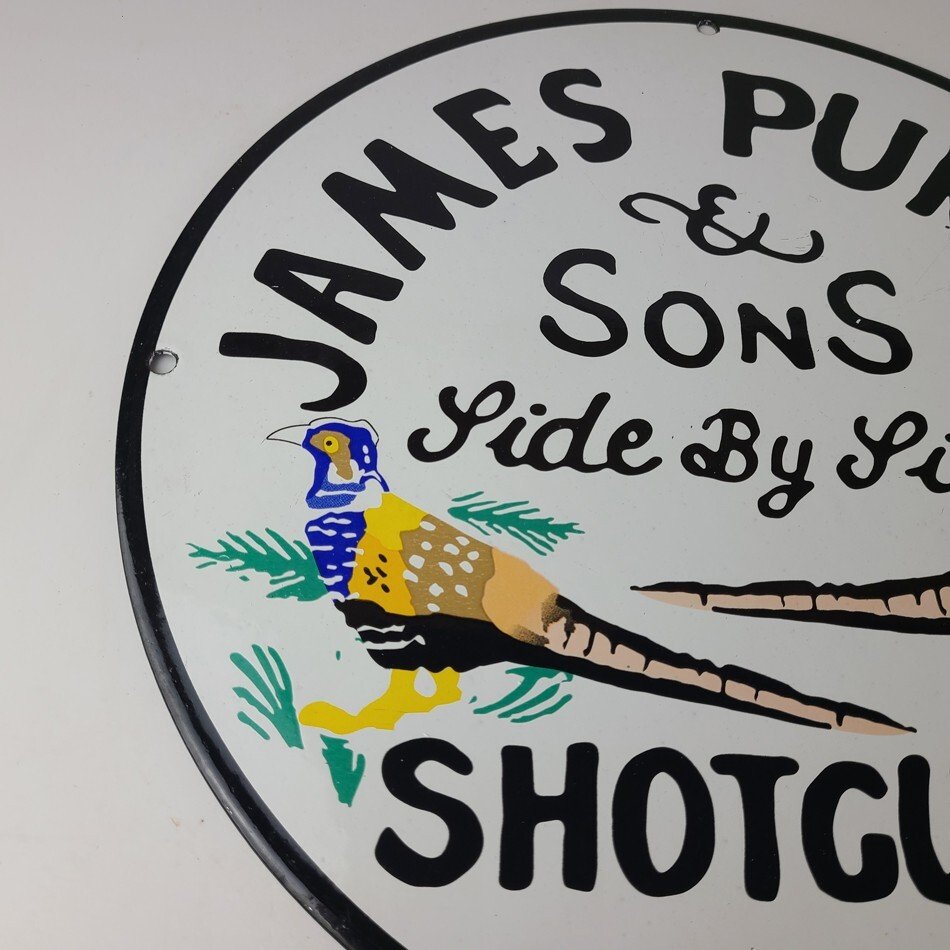 This vintage James Purdey & Sons porcelain sign features the iconic shotgun firearm brand and is perfect for collectors of hunting and outdoor sports memorabilia. Measuring 11 3/4″, this sign is sure to catch the eye of any hunting, gas and oil enthusiast. Don’t miss out on the chance to own a piece of stunning Purdey advertising.