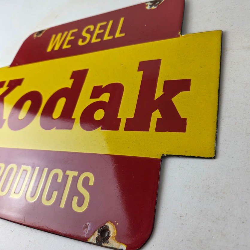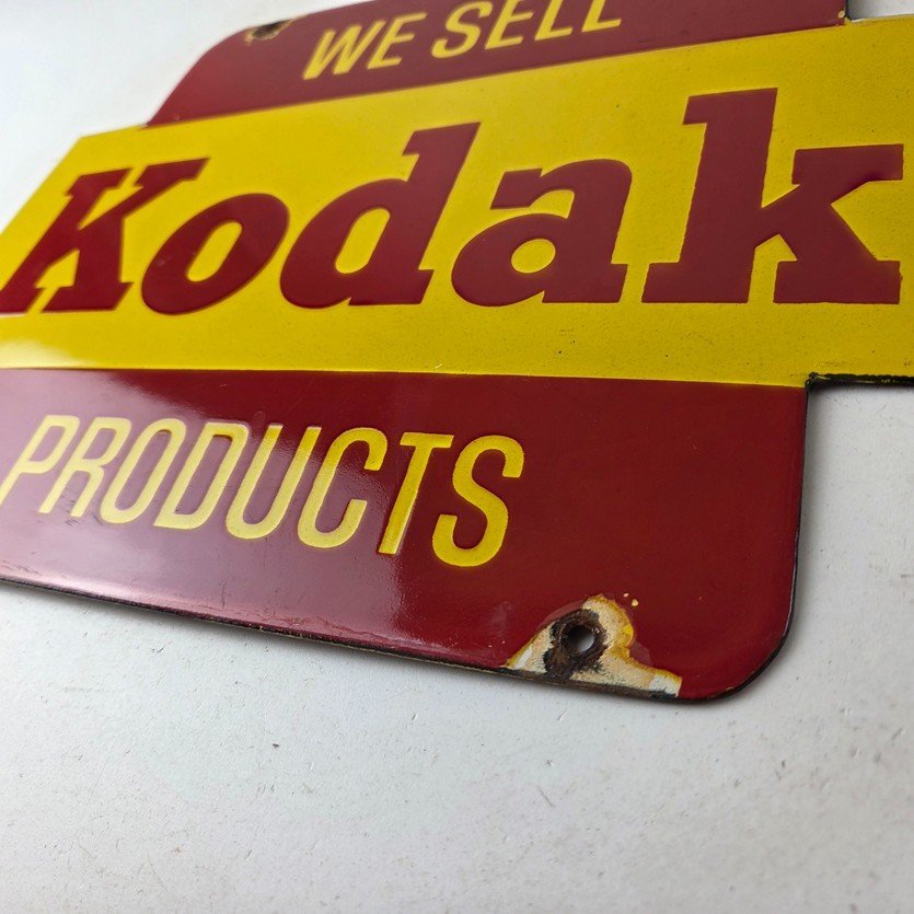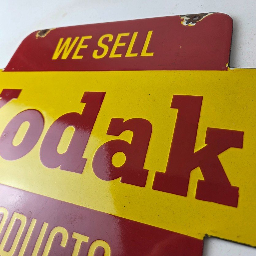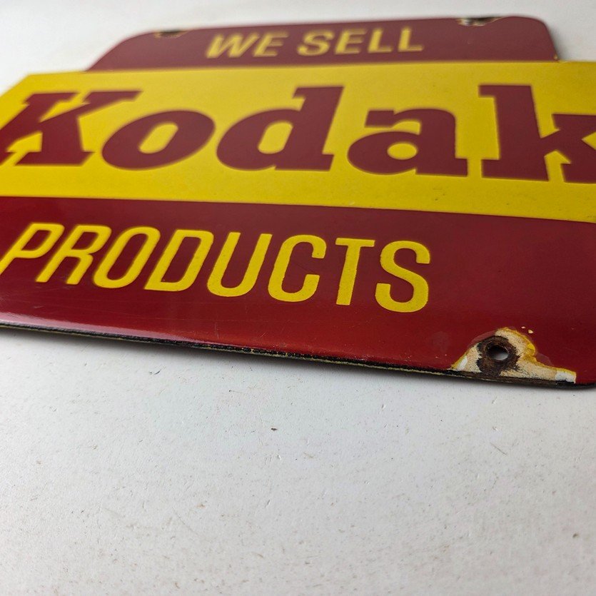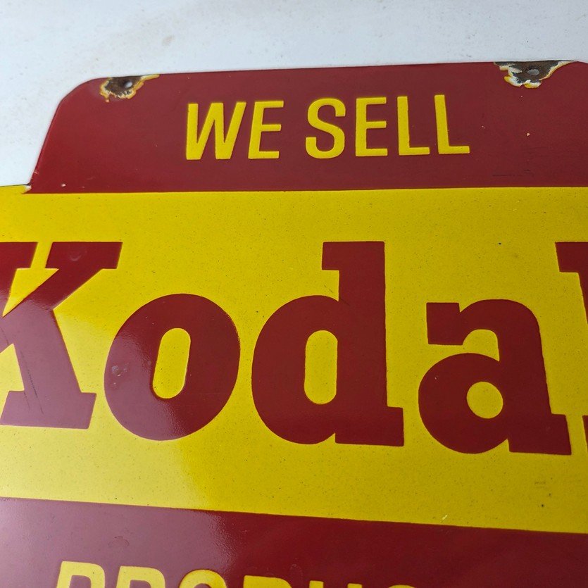 This vintage Kodak porcelain sign is a must-have for any collector of photography, gas and oil memorabilia.