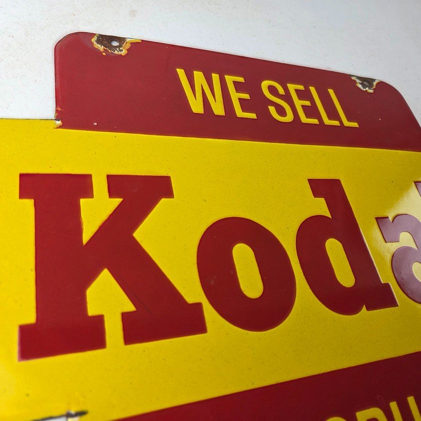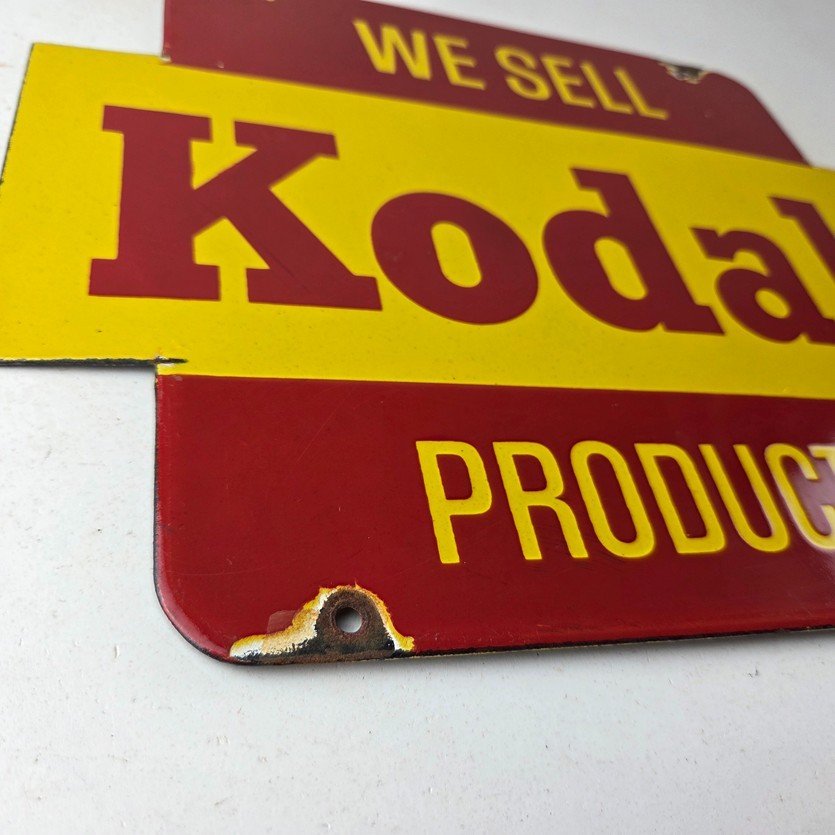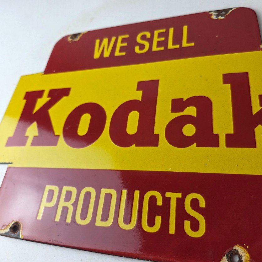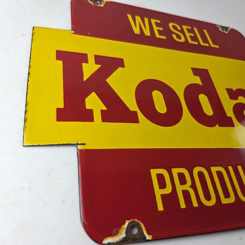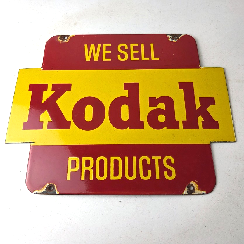 This vintage Kodak porcelain sign is a must-have for any collector of photography, gas and oil memorabilia.