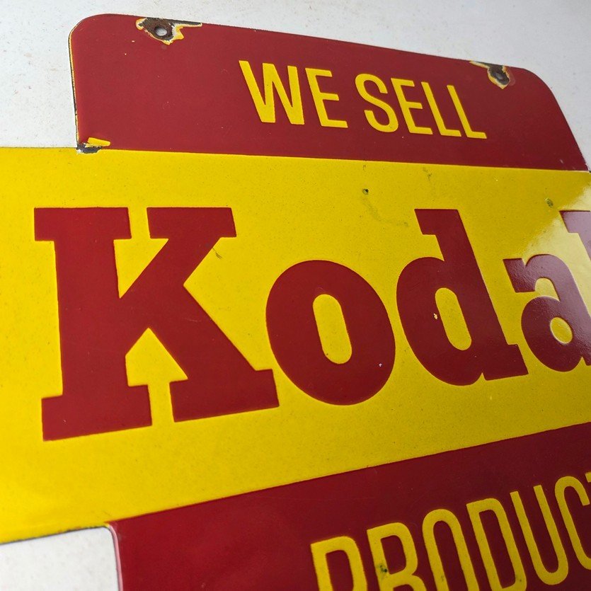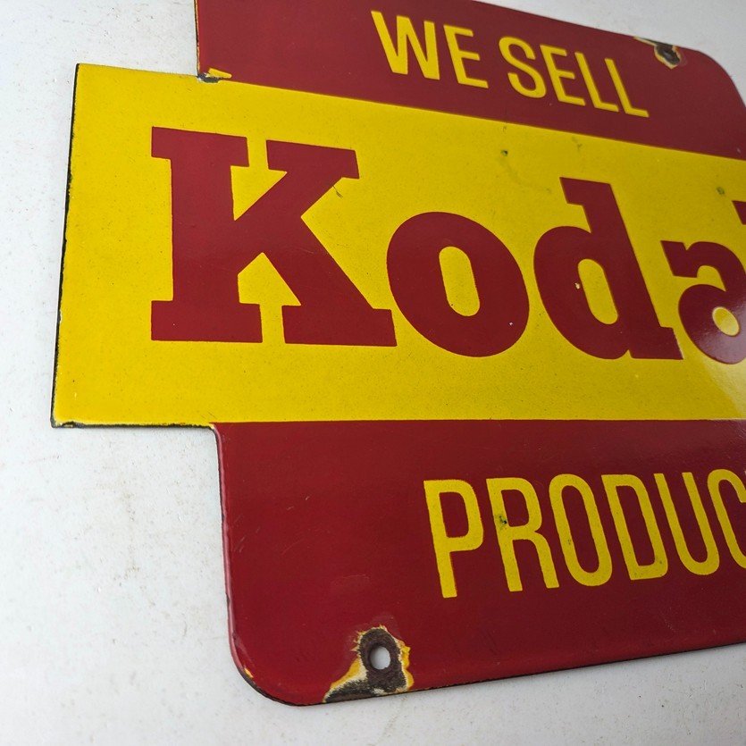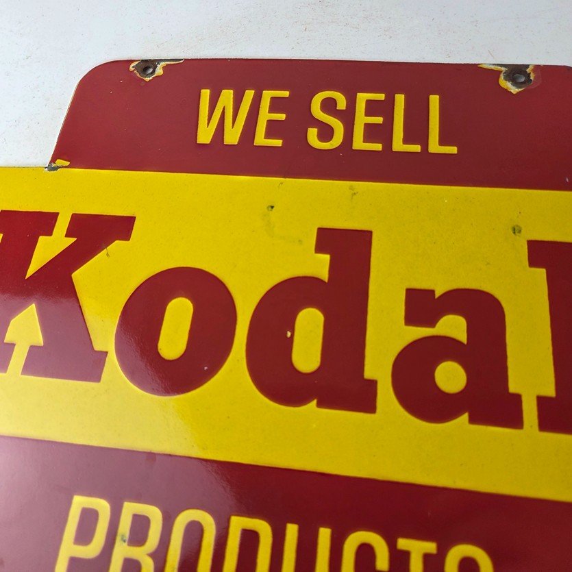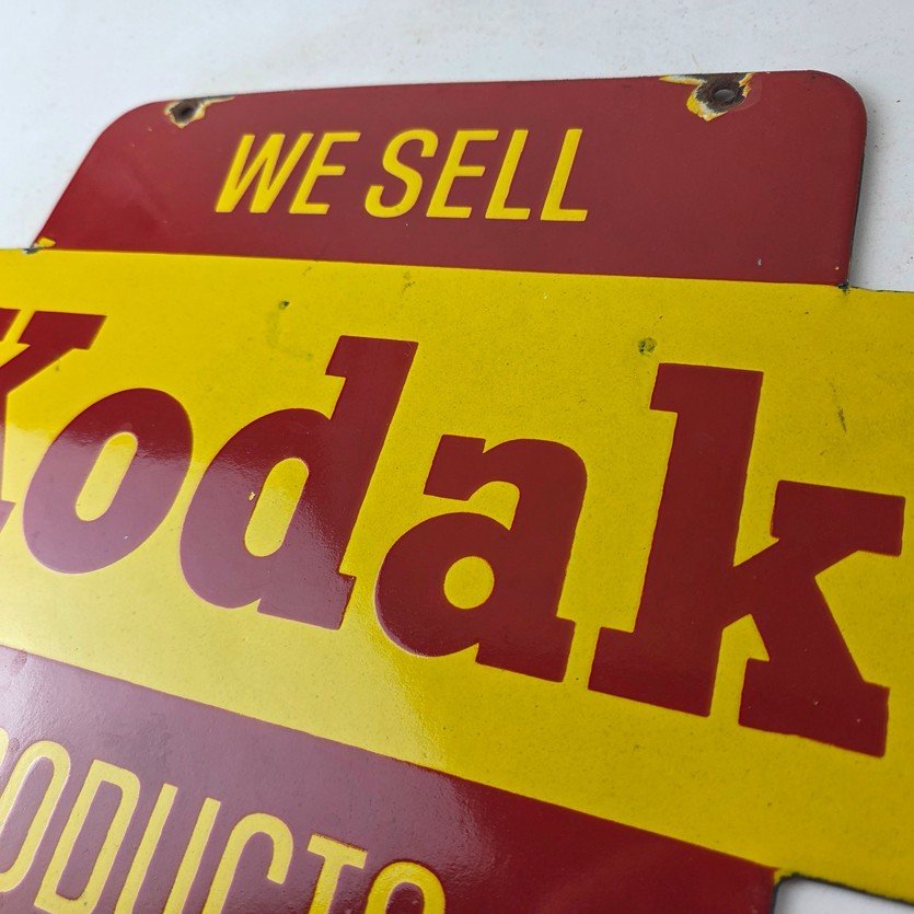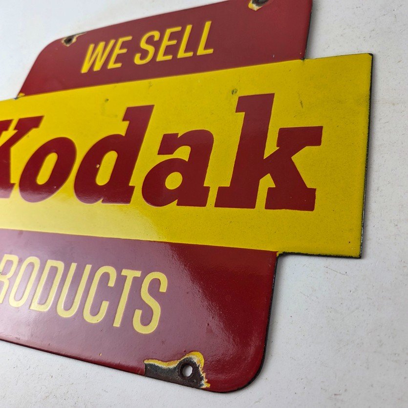 This vintage Kodak porcelain sign is a must-have for any collector of photography, gas and oil memorabilia.
