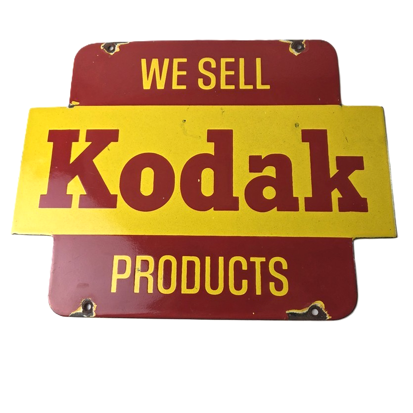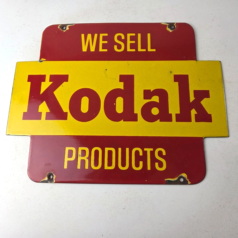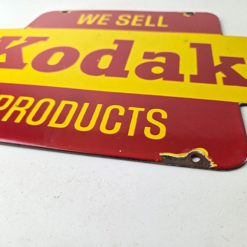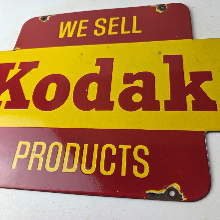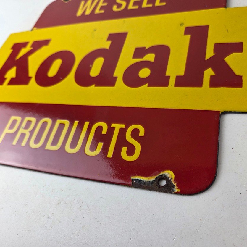 This vintage Kodak porcelain sign is a must-have for any collector of photography, gas and oil memorabilia.