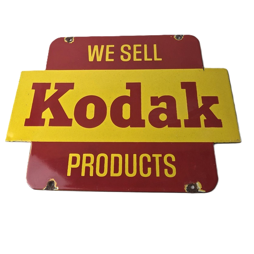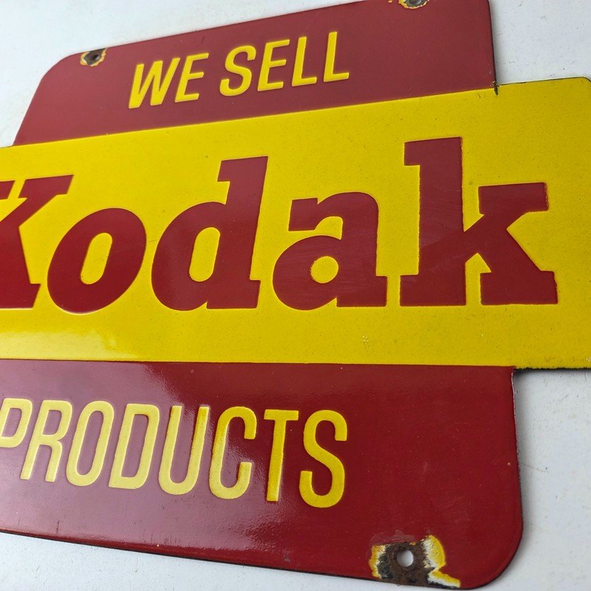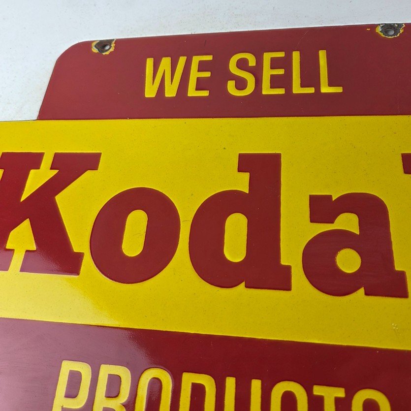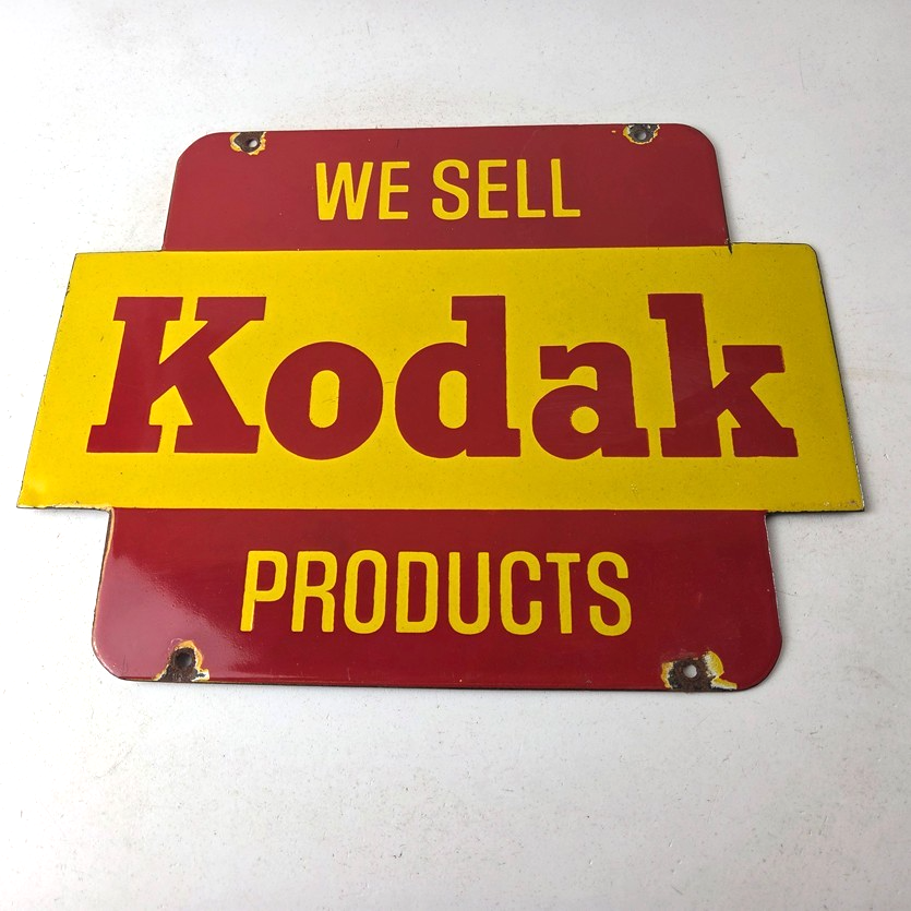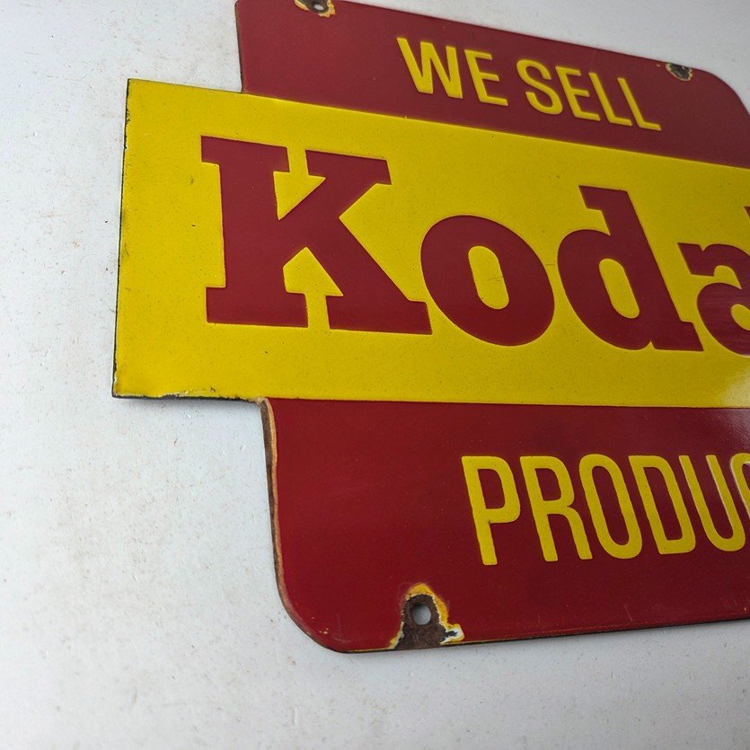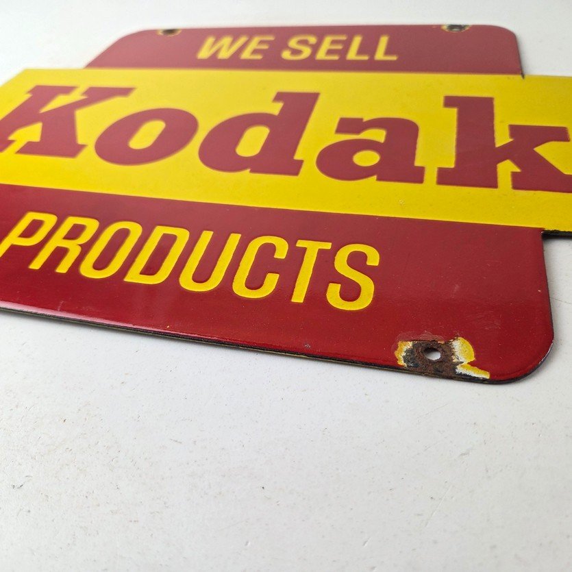This vintage Kodak porcelain sign is a must-have for any collector of photography, gas and oil memorabilia.