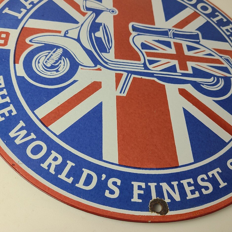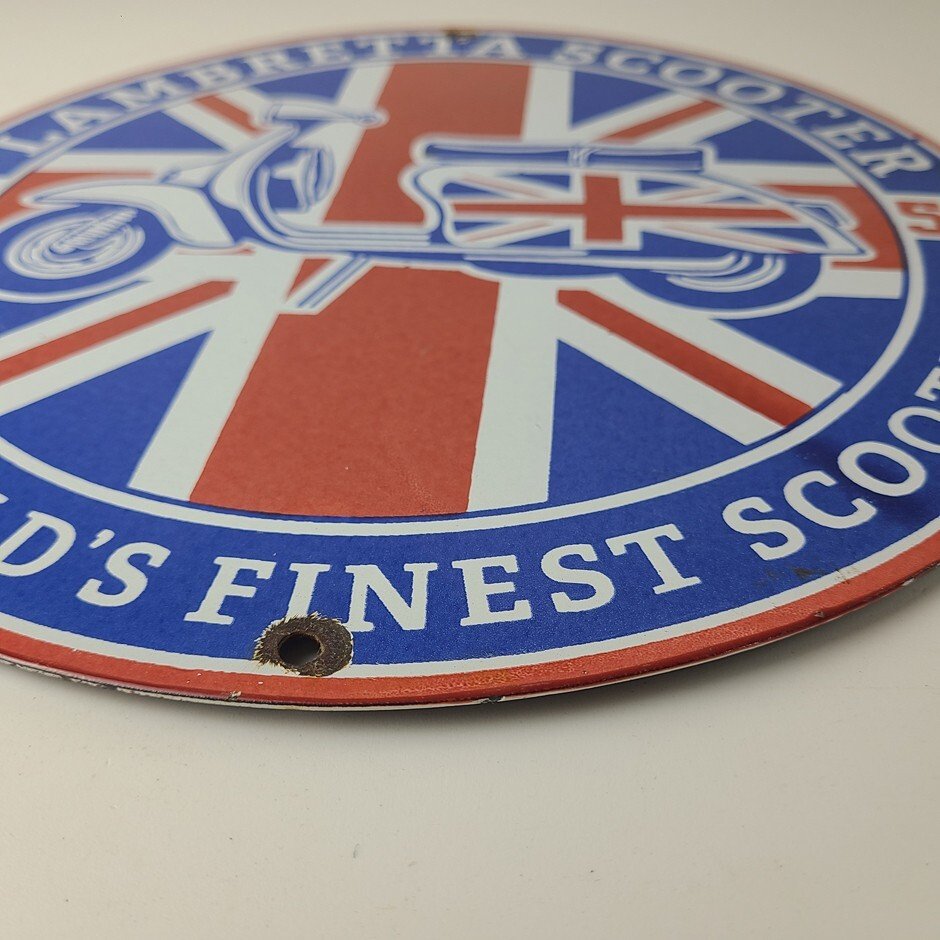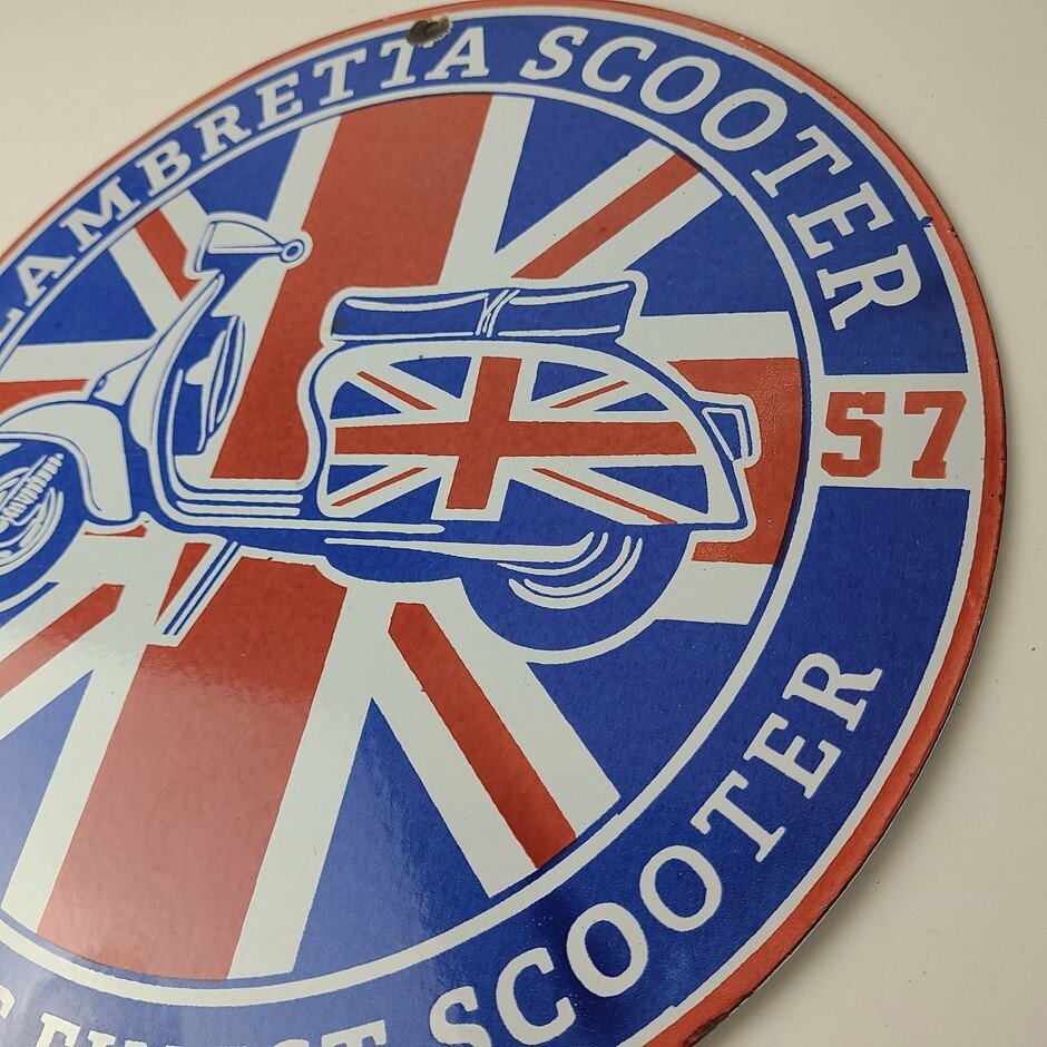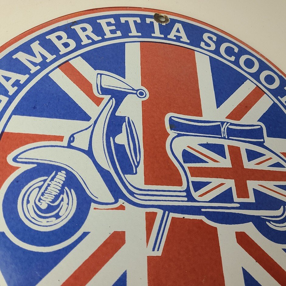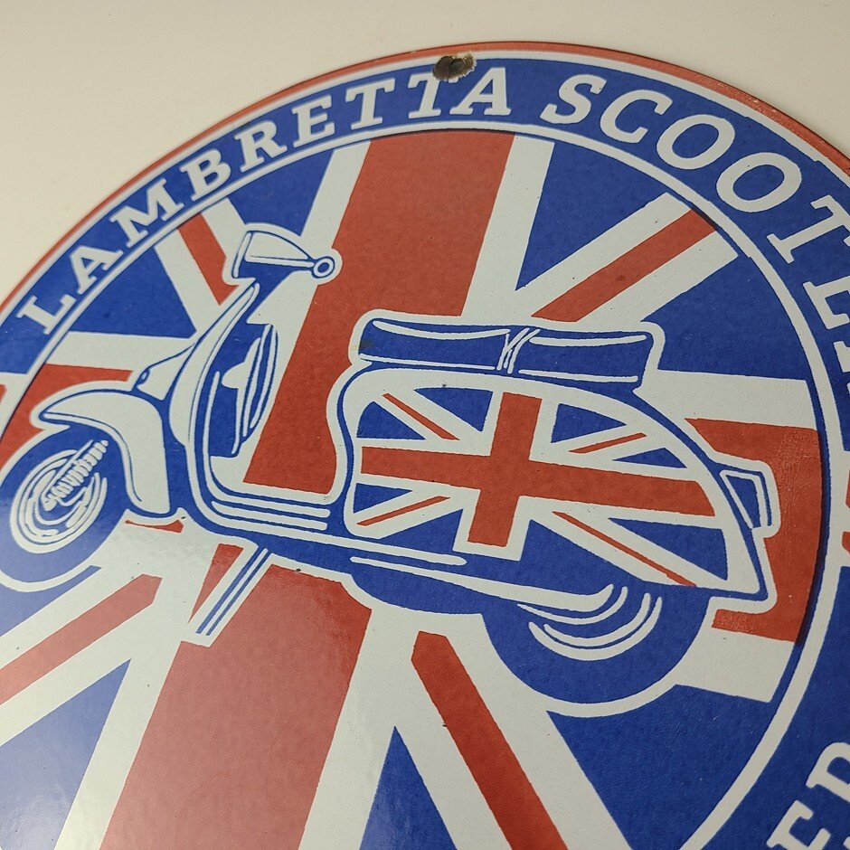 This sign will enhance your mancave, collection, shop, or garage. It is your chance to own a piece of Lambretta advertising.