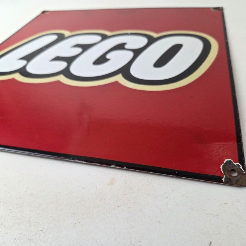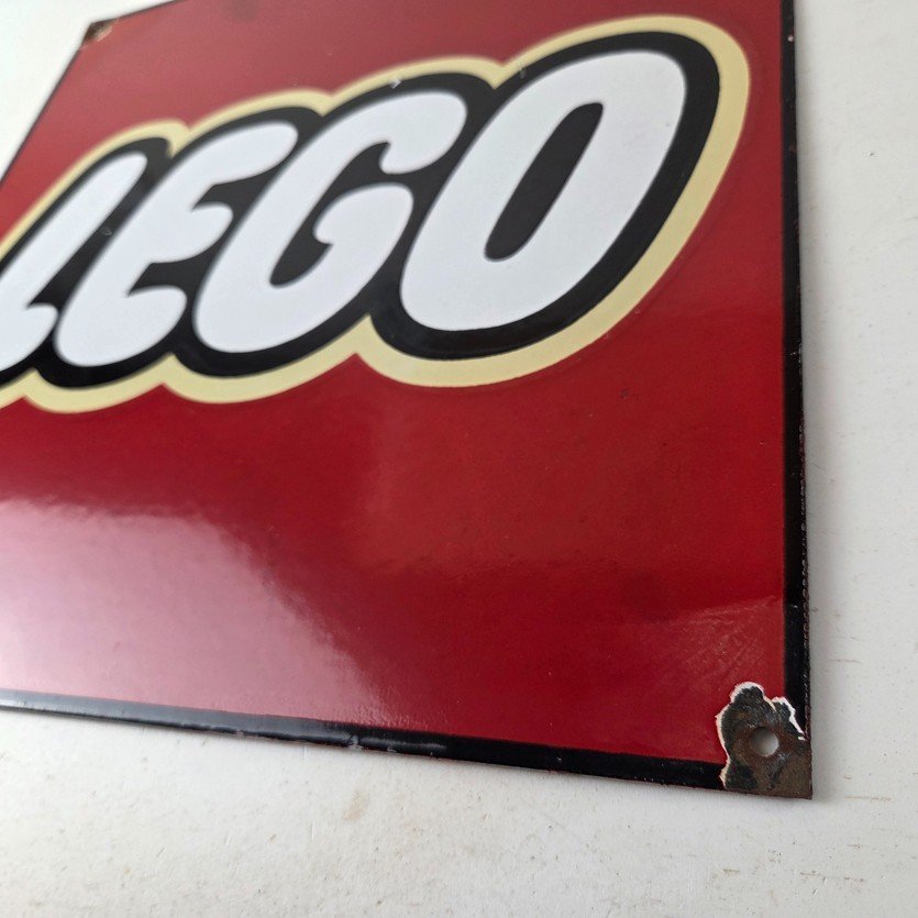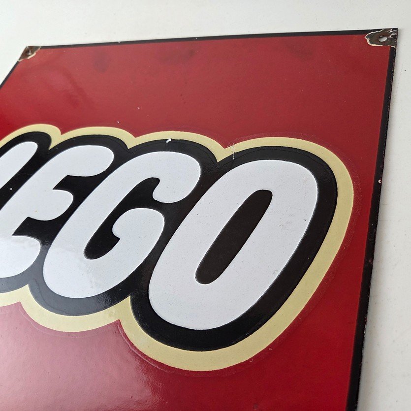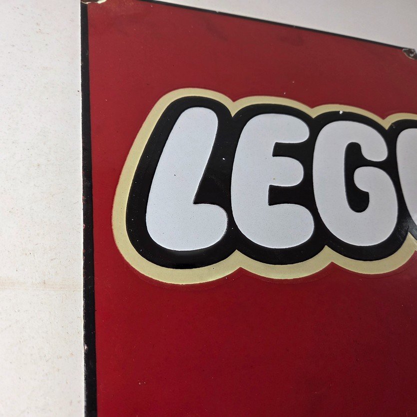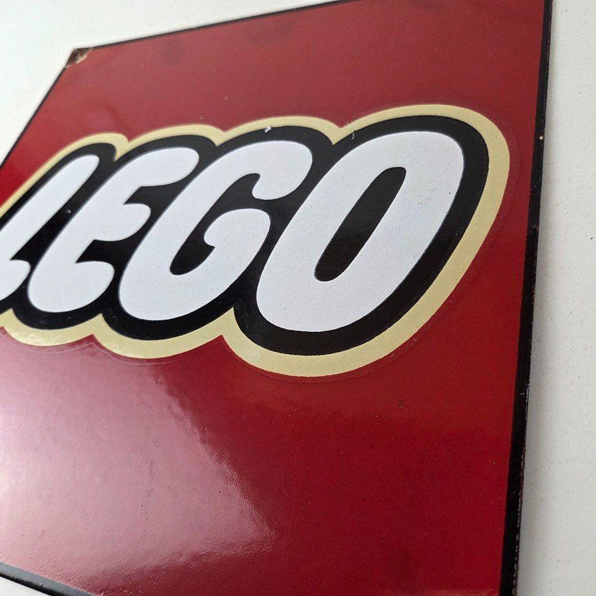 This vintage LEGO sign makes a great addition to a garage, shop display, man cave, toy room, or any LEGO memorabilia collection, vintage toy advertising collection, or retro branding collection.