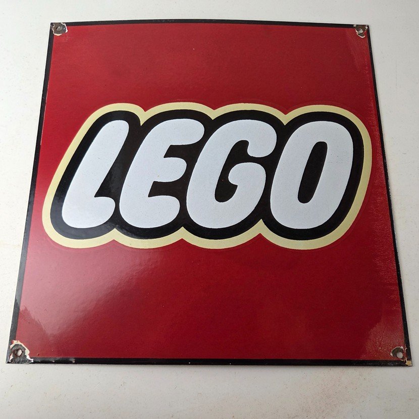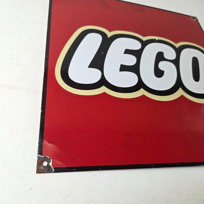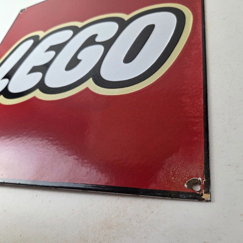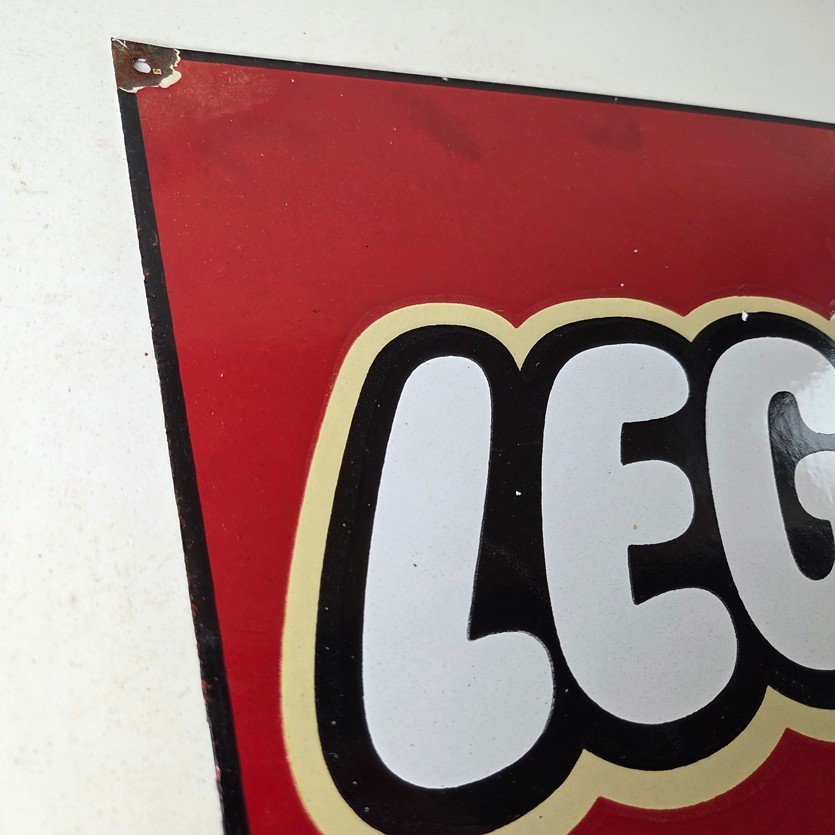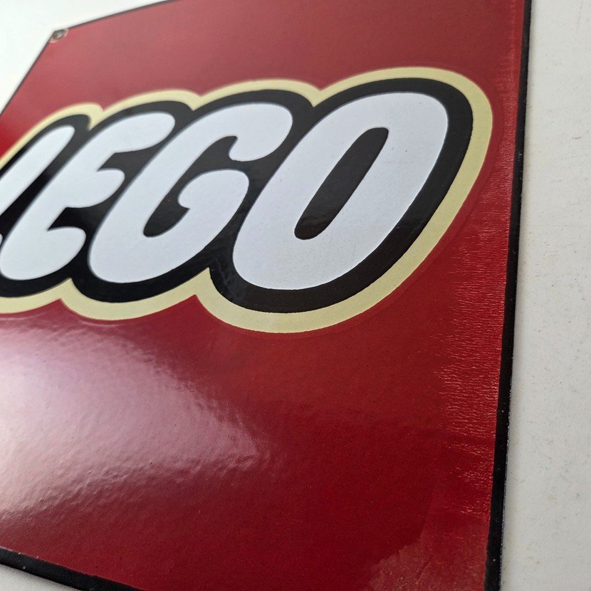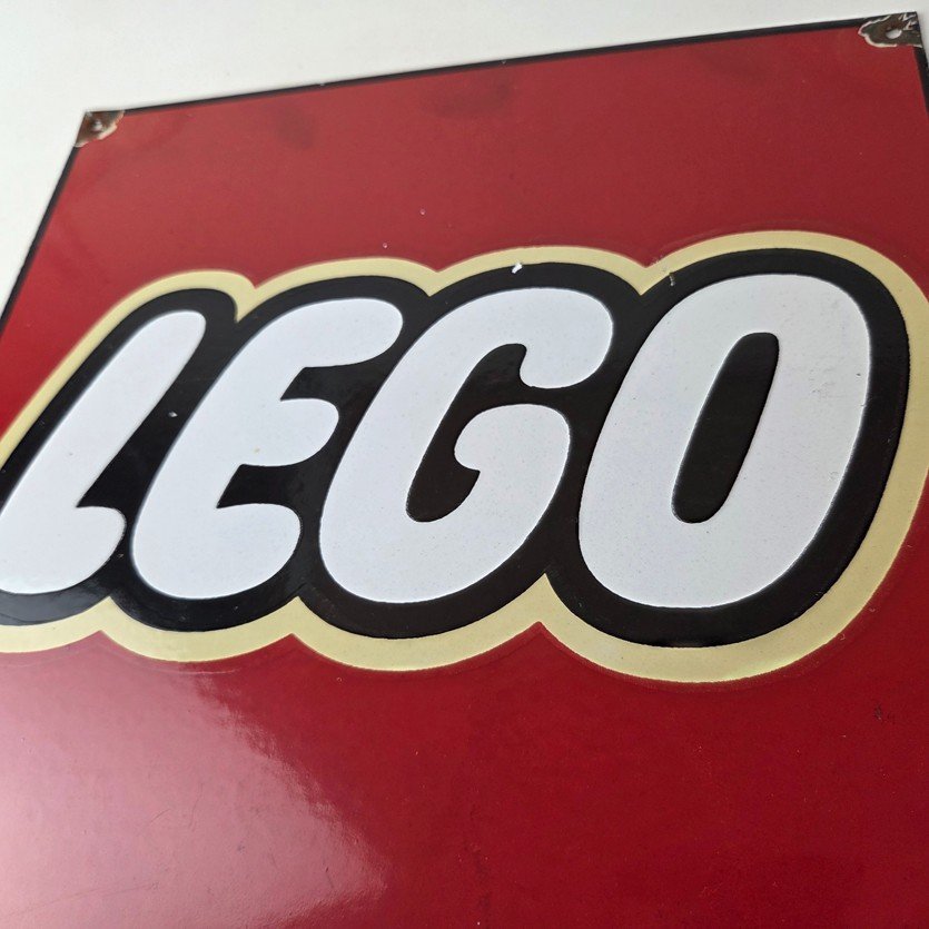 This vintage LEGO sign makes a great addition to a garage, shop display, man cave, toy room, or any LEGO memorabilia collection, vintage toy advertising collection, or retro branding collection.