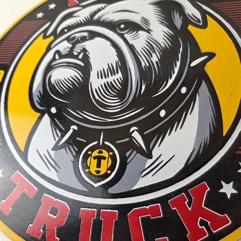 • Bulldog graphic with truck.