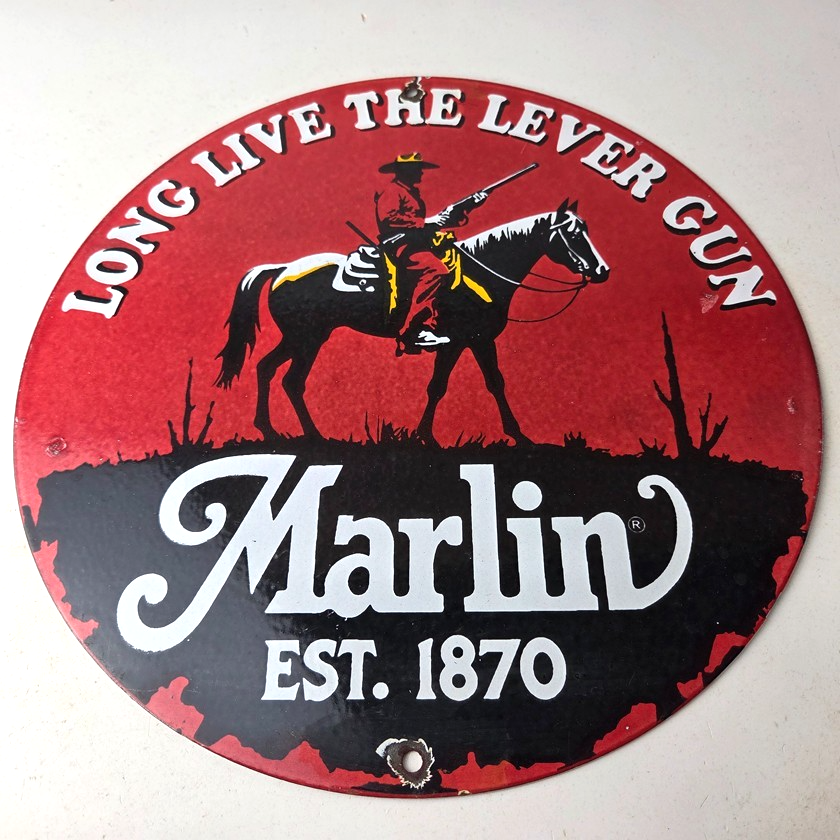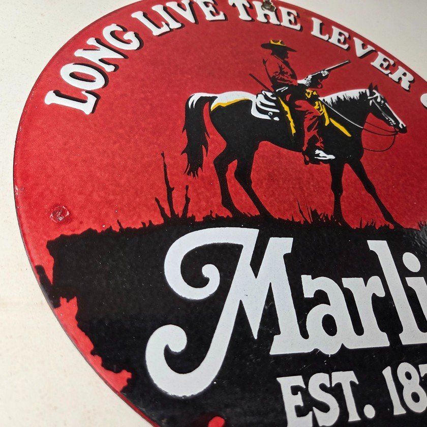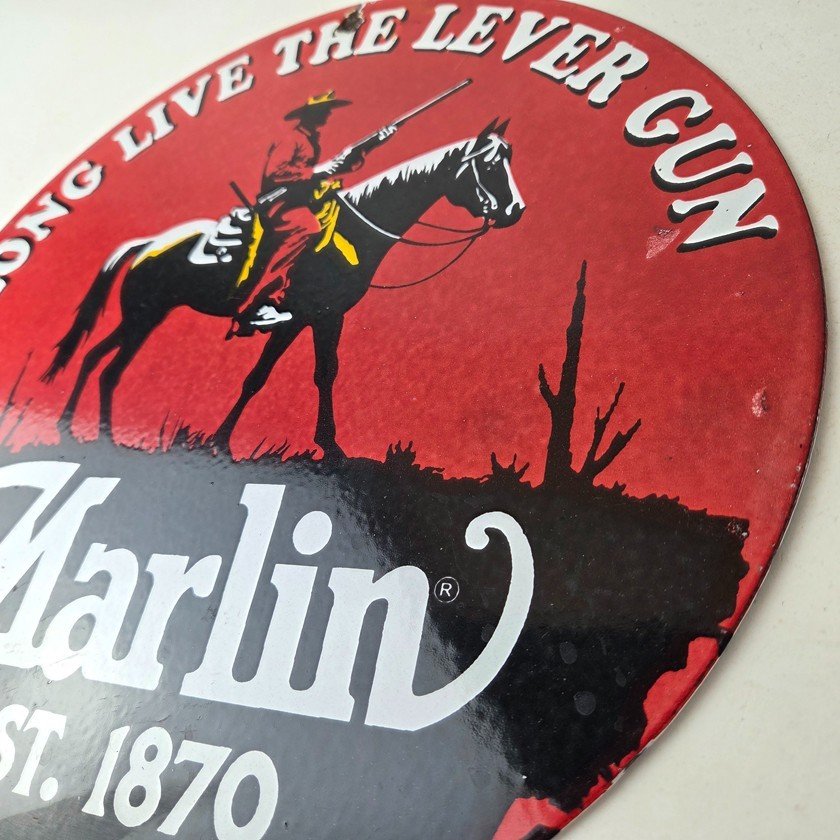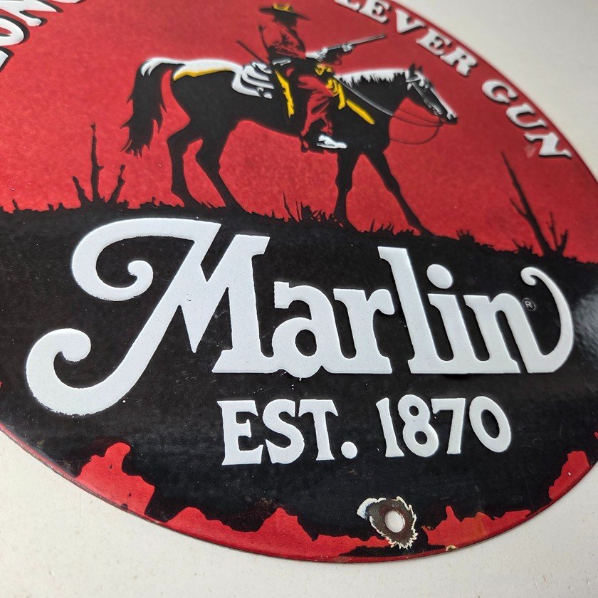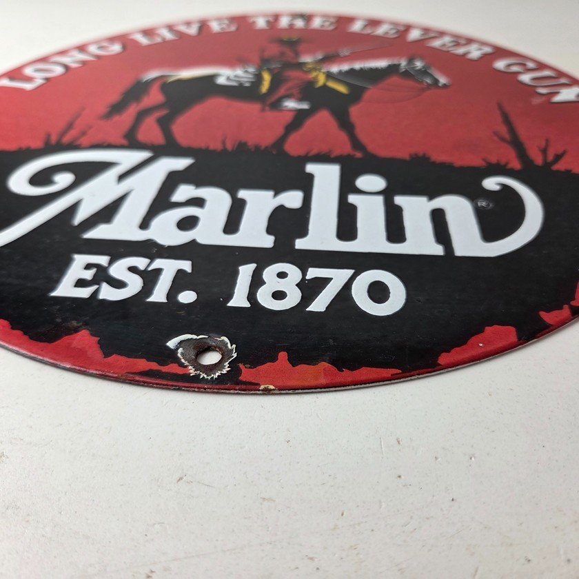 Vintage Marlin Firearms Porcelain Sign.