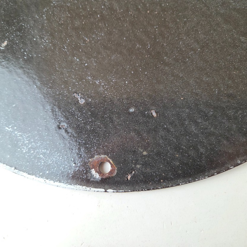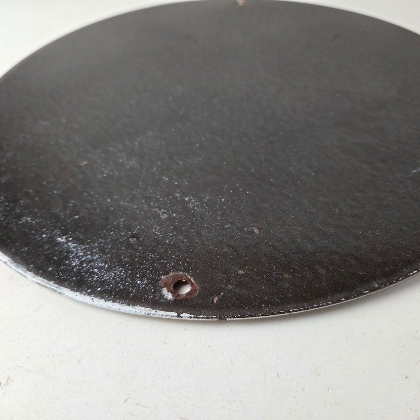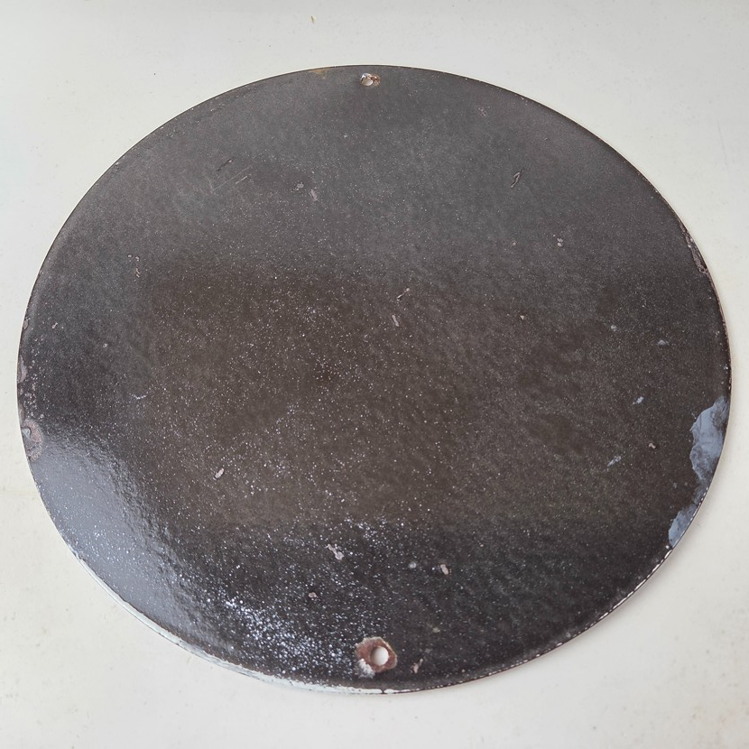 Made of porcelain enamel on steel with patina and wear: rust spotting around the mounting holes, minor edge chips, light surface scratches, and minimal discoloration. This is a porcelain enamel advertising sign in excellent condition, exactly as shown in the photos.