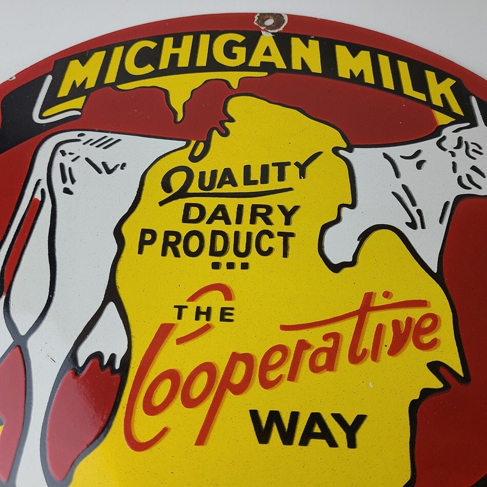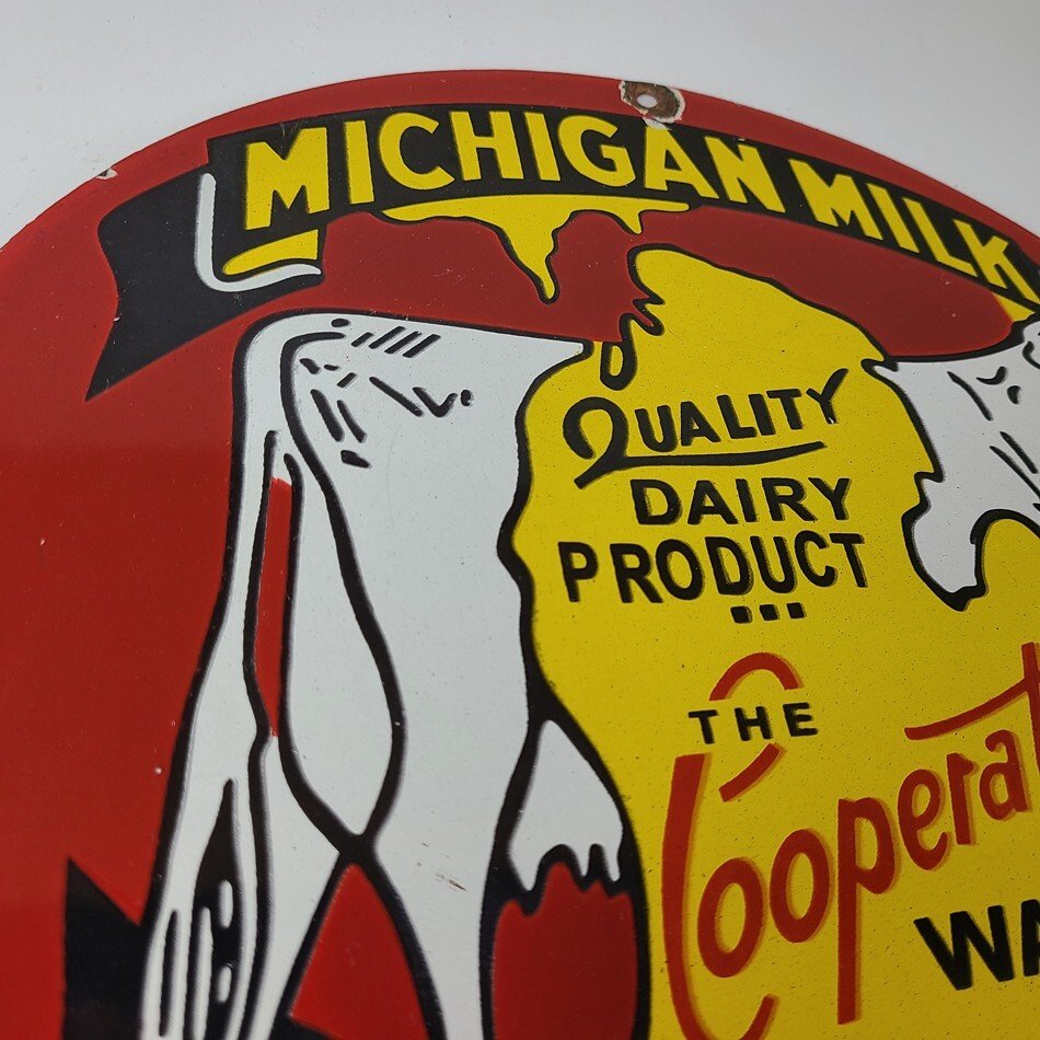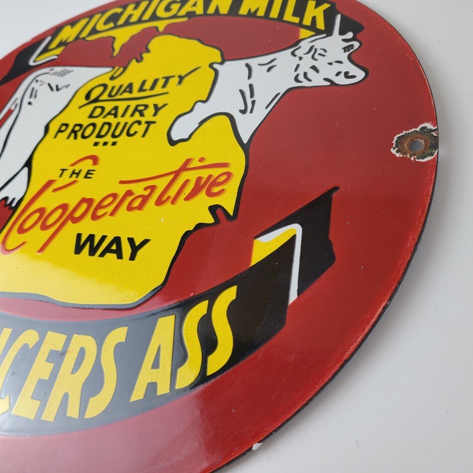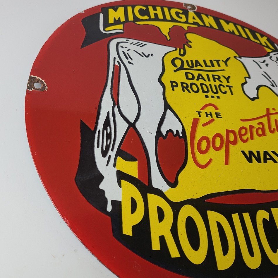 Vintage Michigan Milk Sign – Dairy Cow Porcelain Diner Gas Pump Sign