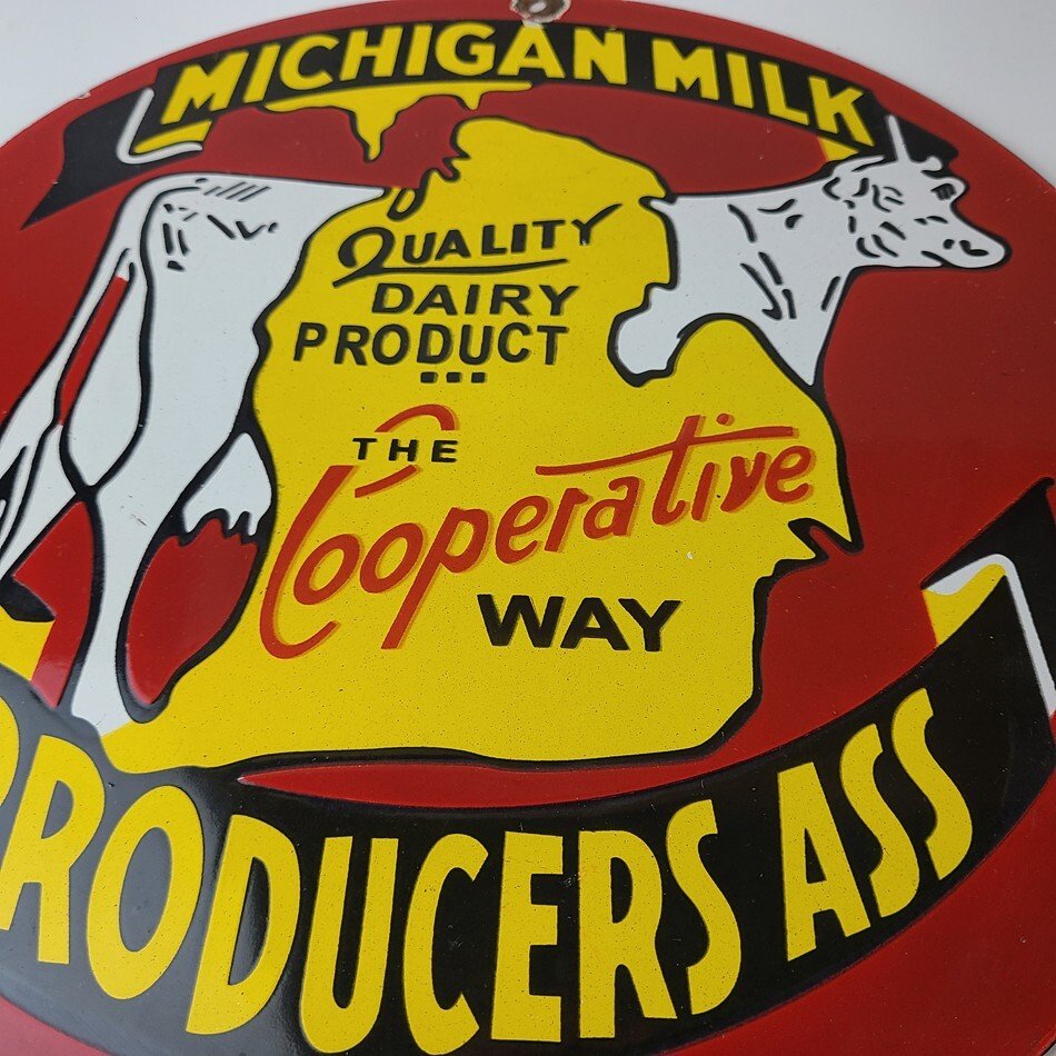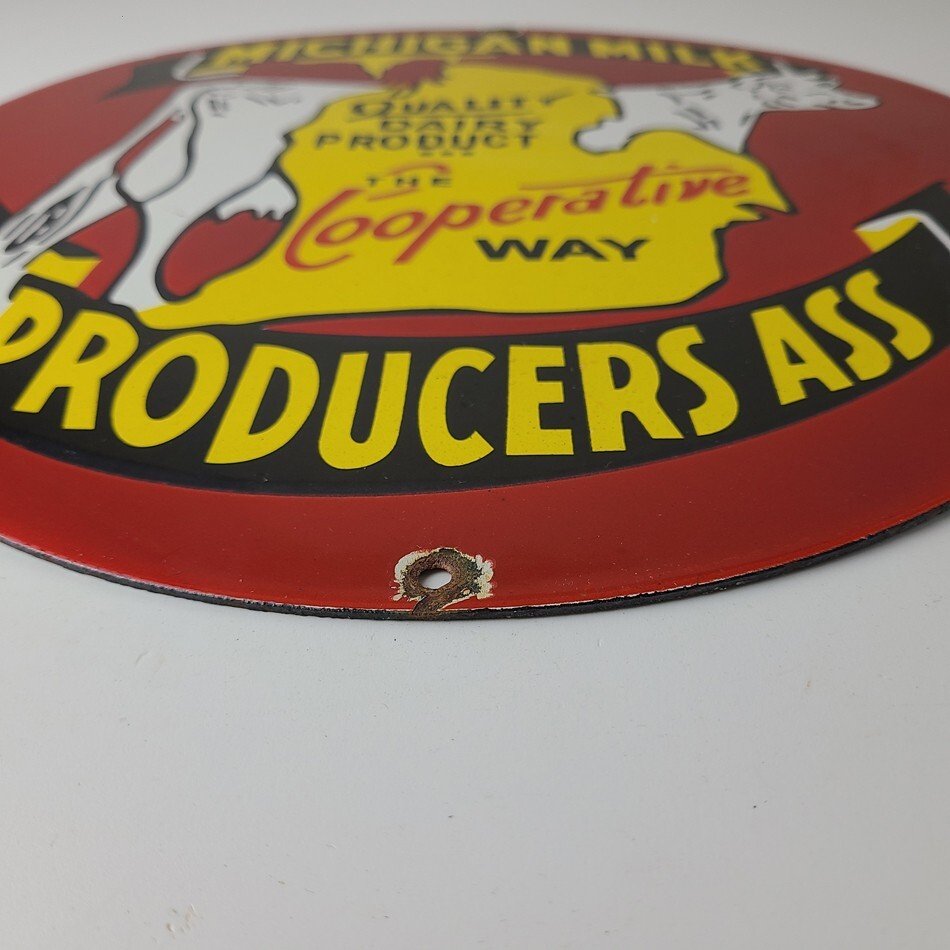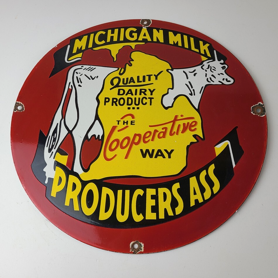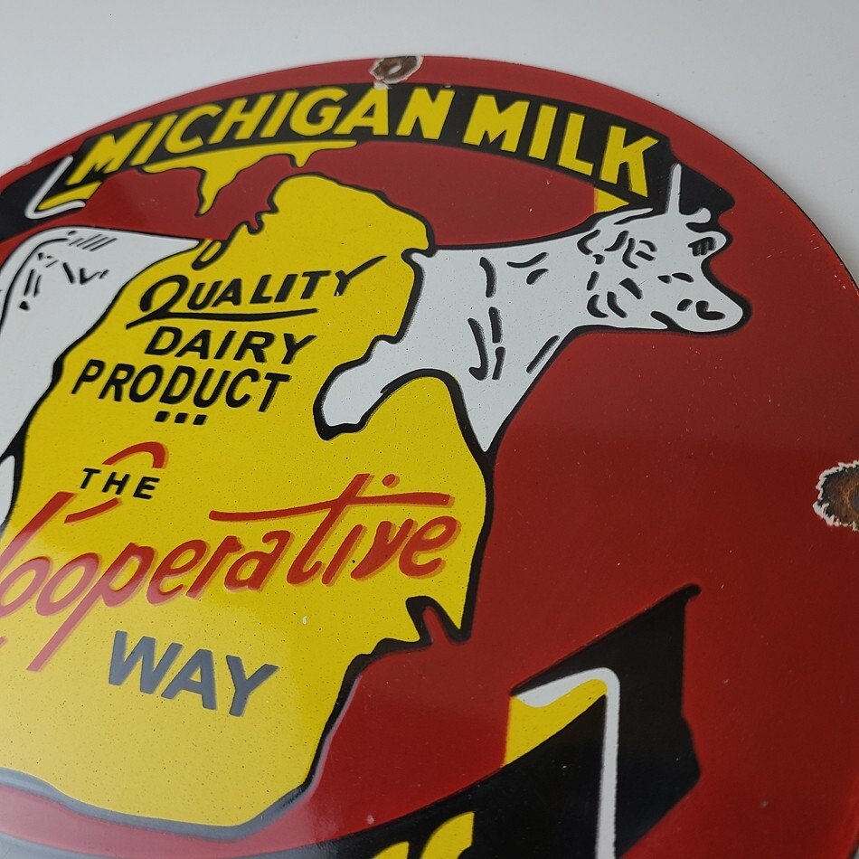 Vintage Michigan Milk Sign – Dairy Cow Porcelain Diner Gas Pump Sign